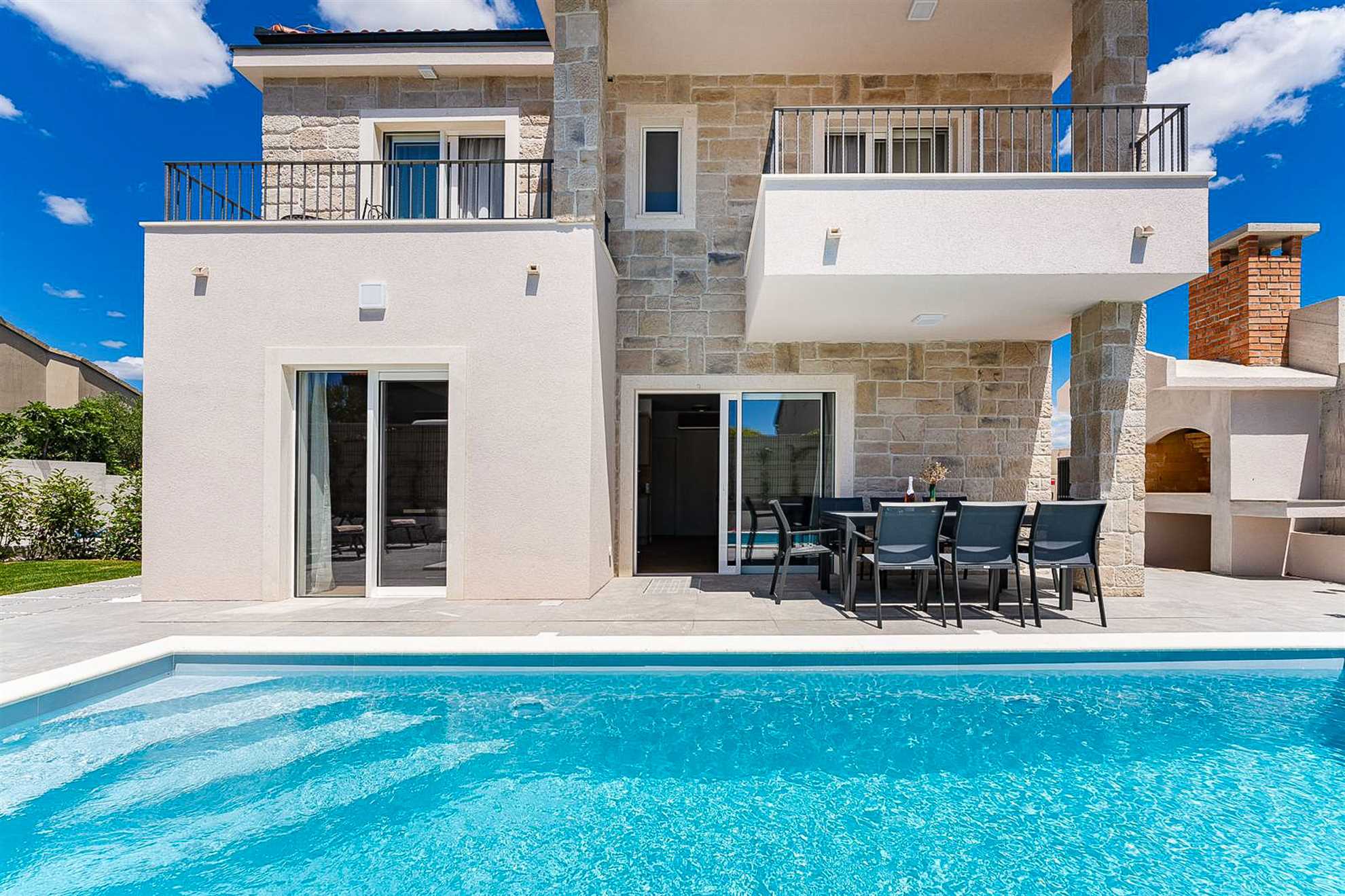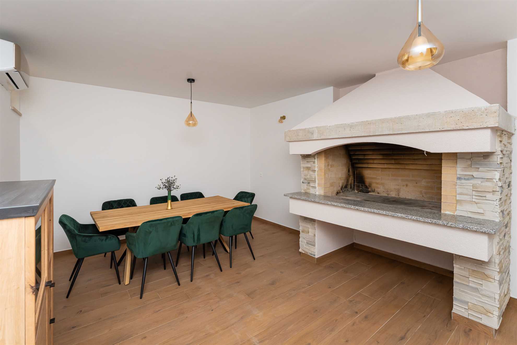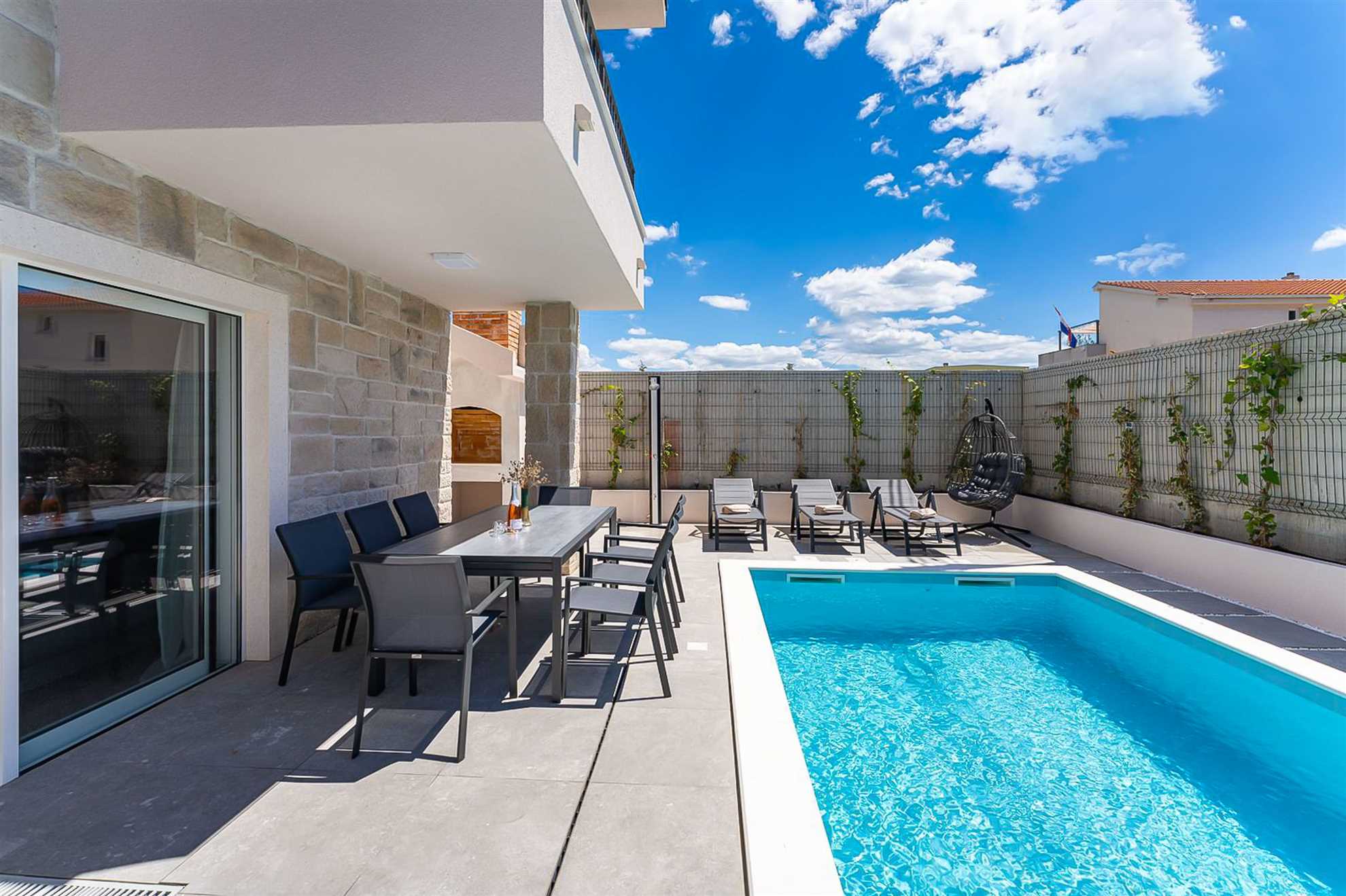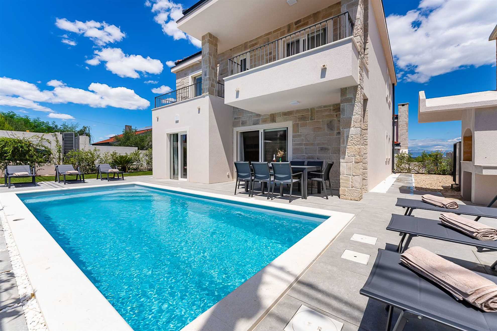 Das Ferienhaus „Casa Coral“ bietet auf 250 m² großzügigen Wohnraum und Platz für bis zu 10 Gäste. Mit 4 Schlafzimmern und 4 Badezimmern bietet es ausreichend Privatsphäre und Komfort für alle Gäste. Die moderne Küche ist komplett ausgestattet mit Waschmaschine, Geschirrspüler, Mikrowelle und allen wichtigen Utensilien. Klimaanlagen in allen Zimmern sorgen für ein angenehmes Raumklima während Ihres gesamten Aufenthalts. Für Ihr Auto steht Ihnen ein privater Parkplatz vor Ort zur Verfügung. Fahrräder können ebenfalls sicher abgestellt werden. Gäste haben exklusiven Zugang zum Garten, der einen ruhigen Rückzugsort zum Entspannen oder Grillen bietet. Das Haus ist besonders fahrradfreundlich und bietet Abstellmöglichkeiten für Fahrräder und einen Balkon mit Bergblick. Der Außenbereich verfügt über einen saisonalen Pool , der an warmen Tagen zu einem erfrischenden Bad einlädt. Eine großzügige Terrasse lädt zum Sonnenbaden oder gemütlichen Mahlzeiten im Freien ein. Das offene Wohnkonzept mit integrierter Küche schafft eine einladende Atmosphäre und ist ideal für Familien. Für Unterhaltung sorgt ein Smart-TV. Alle wichtigen Einkaufsmöglichkeiten befinden sich in unmittelbarer Nähe – der nächste Supermarkt ist ca. 500 Meter entfernt. Der nächste Strand ist ca. 6 km vom Haus entfernt, das Ortszentrum mit Restaurants ca. 7 km. Naturliebhaber werden den nahegelegenen Wanderweg zu schätzen wissen, der nur 150 Meter vom Grundstück entfernt liegt. Genießen Sie einen erholsamen Urlaub in der Stadt Zadar in unserem wunderschönen Ferienhaus „Casa Coral“ .