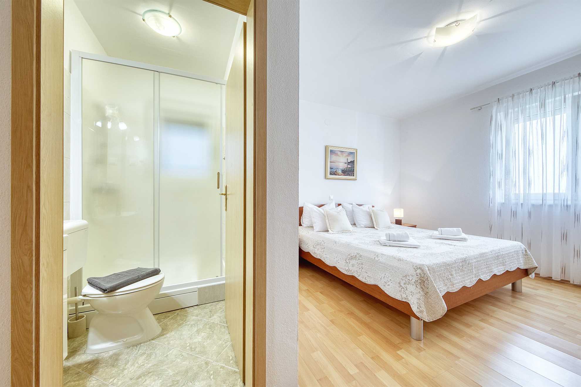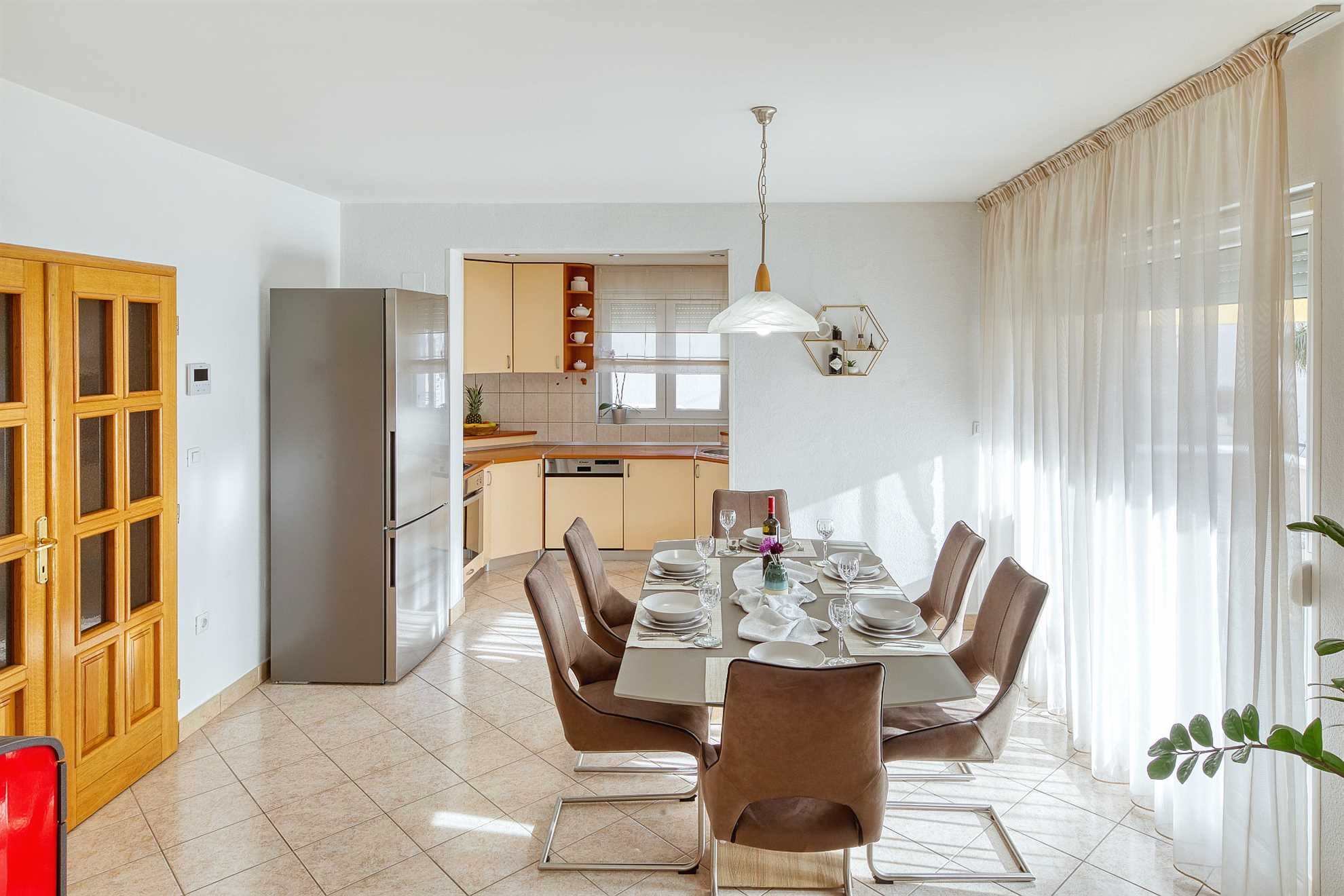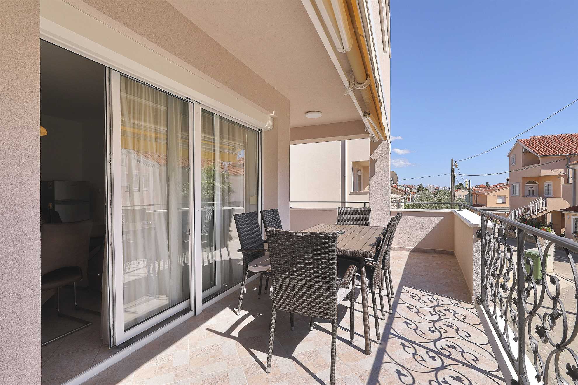 Ferienhaus Keko in Zadar, eignet sich mit seinen 115 qm Wohnfläche für einen Aufenthalt von bis zu 6 Personen.Die komfortable Ferienwohnung liegt auf der ersten Etage und besteht aus drei Doppelbett Schlafzimmern davon eines mit eigenem Duschbad, einem weiteren Duschbad, einen Wohnbereich und einer gut ausgestatteten Küche mit Essbereich. Ebenfalls gibt es einen überdachten mit zusätzlichem Sonnenschutz. In der klimatisierten Ferienwohnung steht Ihnen ... Am besten geeignet für 1 Person. Bietet Platz für maximal 6 Personen. Größe: 115 m² Die Gästev teilen sich den Haupteingang ,haben jedoch eigenen Zugang zur Ferienwohnung. Gerne stehen wir den Gästen zu Verfügung falls gewüscht,wobei wir auch den Gästen ihren Freiraum lassen zum Bäcker: 0.5km zum Supermarkt: 0.5km In der Nähe gibt es Einkaufsmöglichkeiten, Restaurants und Freizeitangebote. Die Ferienunterkunft ist gut ausgestattet und bietet Platz für bis zu 6 Personen. Sie verfügt über 3 Schlafzimmer, eine voll ausgestattete Küche, ein geräumiges Wohnzimmer, ein Badezimmer mit Dusche und WC sowie eine Terrasse mit Gartenmöbeln. Die Ferienunterkunft befindet sich in einer ruhigen Lage, etwa 2 km vom Strand und der Ortsmitte entfernt. Sie ist für verschiedene Zielgruppen geeignet, wie zum Beispiel Familien mit Kindern, Geschäftsreisende, Motorradfahrer, Naturliebhaber des Nationalparks, Radfahrer, Reisegruppen, Senioren, Sport- und Spielbegeisterte, Städtereisende sowie für einen Strand- und Badeurlaub oder zum Wandern und Walken. Die Entfernung zum Strand und zur Ortsmitte beträgt jeweils etwa 2 km. In der Umgebung gibt es Einkaufsmöglichkeiten, Restaurants und Freizeitangebote. Die Ferienunterkunft ist gut ausgestattet und bietet Platz für bis zu 6 Personen. Sie verfügt über 3 Schlafzimmer, eine voll ausgestattete Küche, ein geräumiges Wohnzimmer, ein Badezimmer mit Dusche und WC sowie eine Terrasse mit Gartenmöbeln. zum Flughafen: 12.5km ... kostenfreies W-LAN zur Verfügung.Im Hof steht Ihnen ein Grill mit gemütlicher Sitzecke zur Verfügung. Abstellmöglichkeiten für Fahrräder und ein PKW Stellplatz sind gegeben. Ferienhaus Keko in Zadar, eignet sich mit seinen 115 qm Wohnfläche für einen Aufenthalt von bis zu 6 Personen.Die komfortable Ferienwohnung liegt auf der ersten Etage und besteht aus drei Doppelbett Schlafzimmern davon eines mit eigenem Duschbad, einem weiteren Duschbad, einen Wohnbereich und einer gut ausgestatteten Küche mit Essbereich. Ebenfalls gibt es einen überdachten mit zusätzlichem Sonnenschutz. In der klimatisierten Ferienwohnung steht Ihnen kostenfreies W-LAN zur Verfügung.Im Hof steht Ihnen ein Grill mit gemütlicher Sitzecke zur Verfügung. Abstellmöglichkeiten für Fahrräder und ein PKW Stellplatz sind gegeben. Folgende Sprachen werden gesprochen: kroatisch, tschechisch, englisch, deutsch, slowakisch