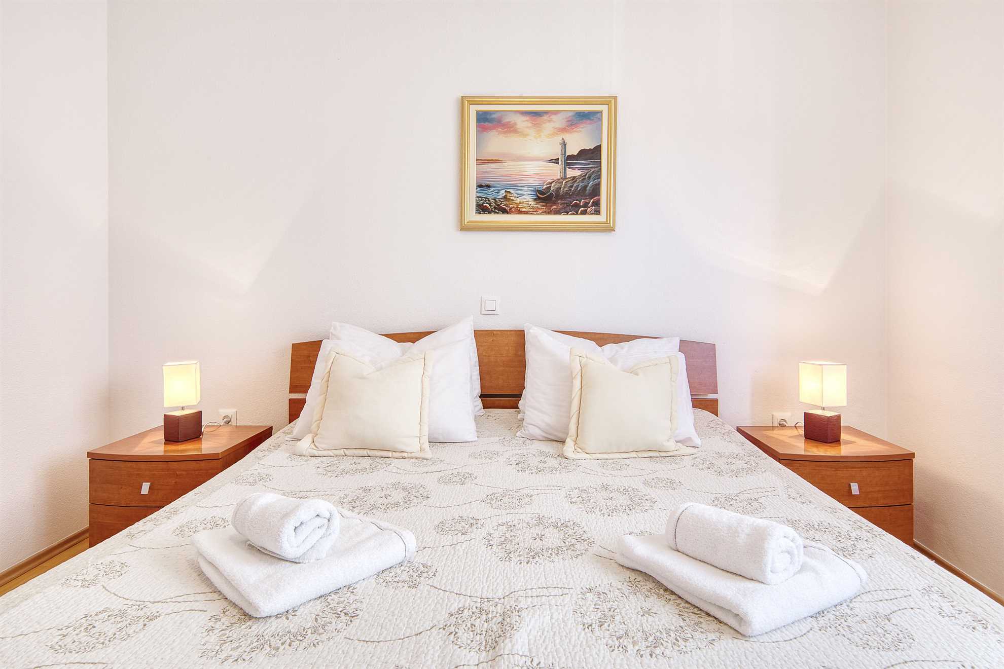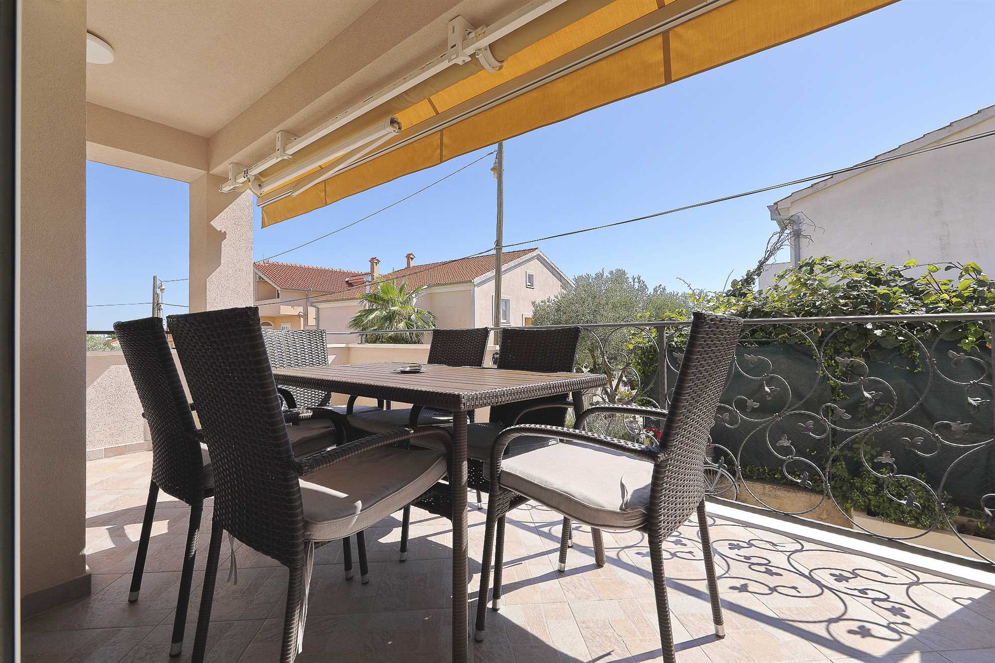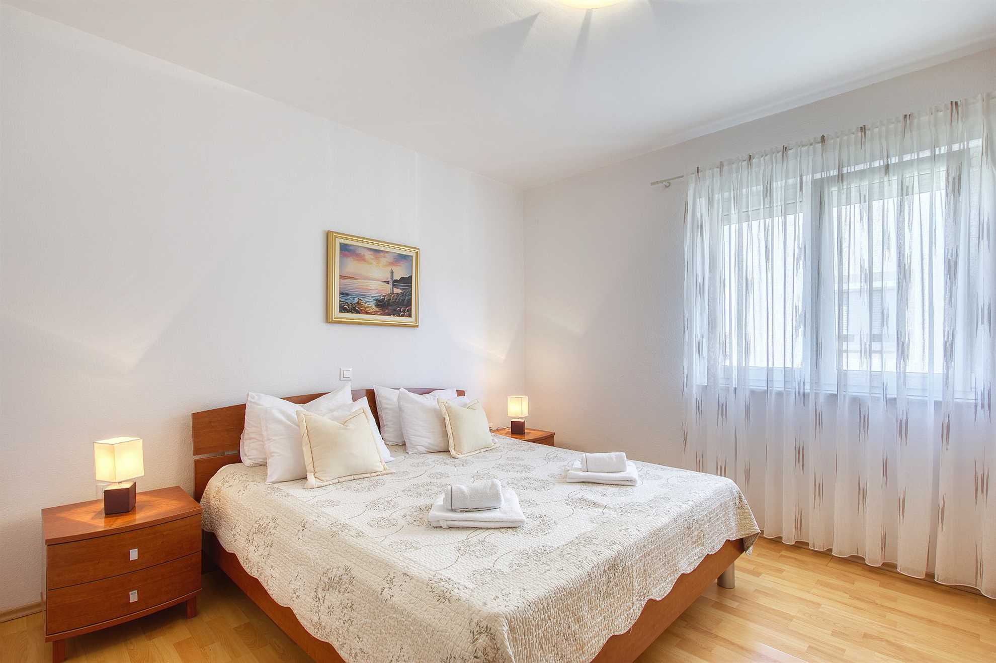 Ferienhaus Keko in Zadar, eignet sich mit seinen 115 qm Wohnfläche für einen Aufenthalt von bis zu 6 Personen.Die komfortable Ferienwohnung liegt auf der ersten Etage und besteht aus drei Doppelbett Schlafzimmern davon eines mit eigenem Duschbad, einem weiteren Duschbad, einen Wohnbereich und einer gut ausgestatteten Küche mit Essbereich. Ebenfalls gibt es einen überdachten mit zusätzlichem Sonnenschutz. In der klimatisierten Ferienwohnung steht Ihnen ... Am besten geeignet für 1 Person. Bietet Platz für maximal 6 Personen. Größe: 115 m² Die Gästev teilen sich den Haupteingang ,haben jedoch eigenen Zugang zur Ferienwohnung. Gerne stehen wir den Gästen zu Verfügung falls gewüscht,wobei wir auch den Gästen ihren Freiraum lassen zum Bäcker: 0.5km zum Supermarkt: 0.5km In der Nähe gibt es Einkaufsmöglichkeiten, Restaurants und Freizeitangebote. Die Ferienunterkunft ist gut ausgestattet und bietet Platz für bis zu 6 Personen. Sie verfügt über 3 Schlafzimmer, eine voll ausgestattete Küche, ein geräumiges Wohnzimmer, ein Badezimmer mit Dusche und WC sowie eine Terrasse mit Gartenmöbeln. Die Ferienunterkunft befindet sich in einer ruhigen Lage, etwa 2 km vom Strand und der Ortsmitte entfernt. Sie ist für verschiedene Zielgruppen geeignet, wie zum Beispiel Familien mit Kindern, Geschäftsreisende, Motorradfahrer, Naturliebhaber des Nationalparks, Radfahrer, Reisegruppen, Senioren, Sport- und Spielbegeisterte, Städtereisende sowie für einen Strand- und Badeurlaub oder zum Wandern und Walken. Die Entfernung zum Strand und zur Ortsmitte beträgt jeweils etwa 2 km. In der Umgebung gibt es Einkaufsmöglichkeiten, Restaurants und Freizeitangebote. Die Ferienunterkunft ist gut ausgestattet und bietet Platz für bis zu 6 Personen. Sie verfügt über 3 Schlafzimmer, eine voll ausgestattete Küche, ein geräumiges Wohnzimmer, ein Badezimmer mit Dusche und WC sowie eine Terrasse mit Gartenmöbeln. zum Flughafen: 12.5km ... kostenfreies W-LAN zur Verfügung.Im Hof steht Ihnen ein Grill mit gemütlicher Sitzecke zur Verfügung. Abstellmöglichkeiten für Fahrräder und ein PKW Stellplatz sind gegeben. Ferienhaus Keko in Zadar, eignet sich mit seinen 115 qm Wohnfläche für einen Aufenthalt von bis zu 6 Personen.Die komfortable Ferienwohnung liegt auf der ersten Etage und besteht aus drei Doppelbett Schlafzimmern davon eines mit eigenem Duschbad, einem weiteren Duschbad, einen Wohnbereich und einer gut ausgestatteten Küche mit Essbereich. Ebenfalls gibt es einen überdachten mit zusätzlichem Sonnenschutz. In der klimatisierten Ferienwohnung steht Ihnen kostenfreies W-LAN zur Verfügung.Im Hof steht Ihnen ein Grill mit gemütlicher Sitzecke zur Verfügung. Abstellmöglichkeiten für Fahrräder und ein PKW Stellplatz sind gegeben. Folgende Sprachen werden gesprochen: kroatisch, tschechisch, englisch, deutsch, slowakisch