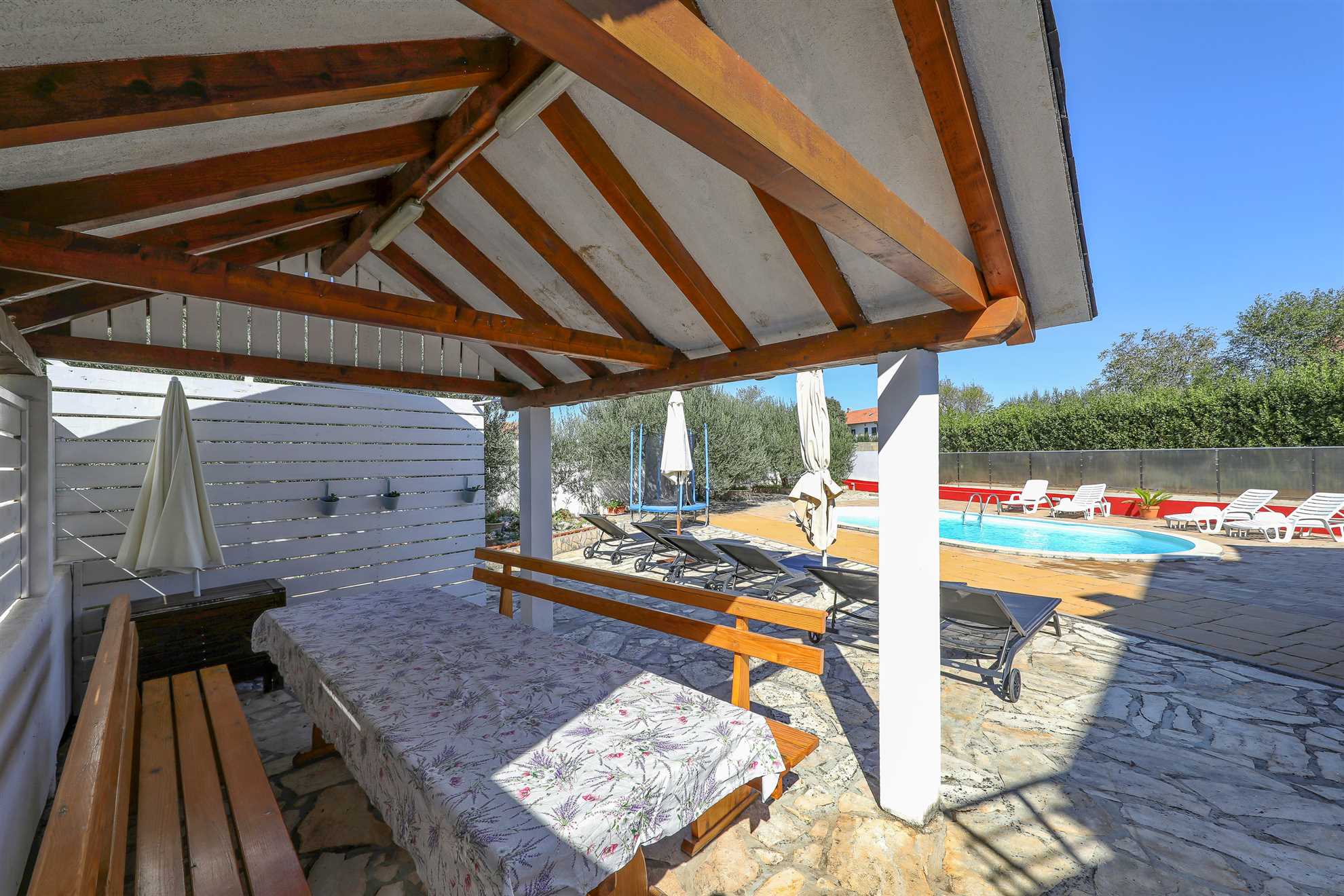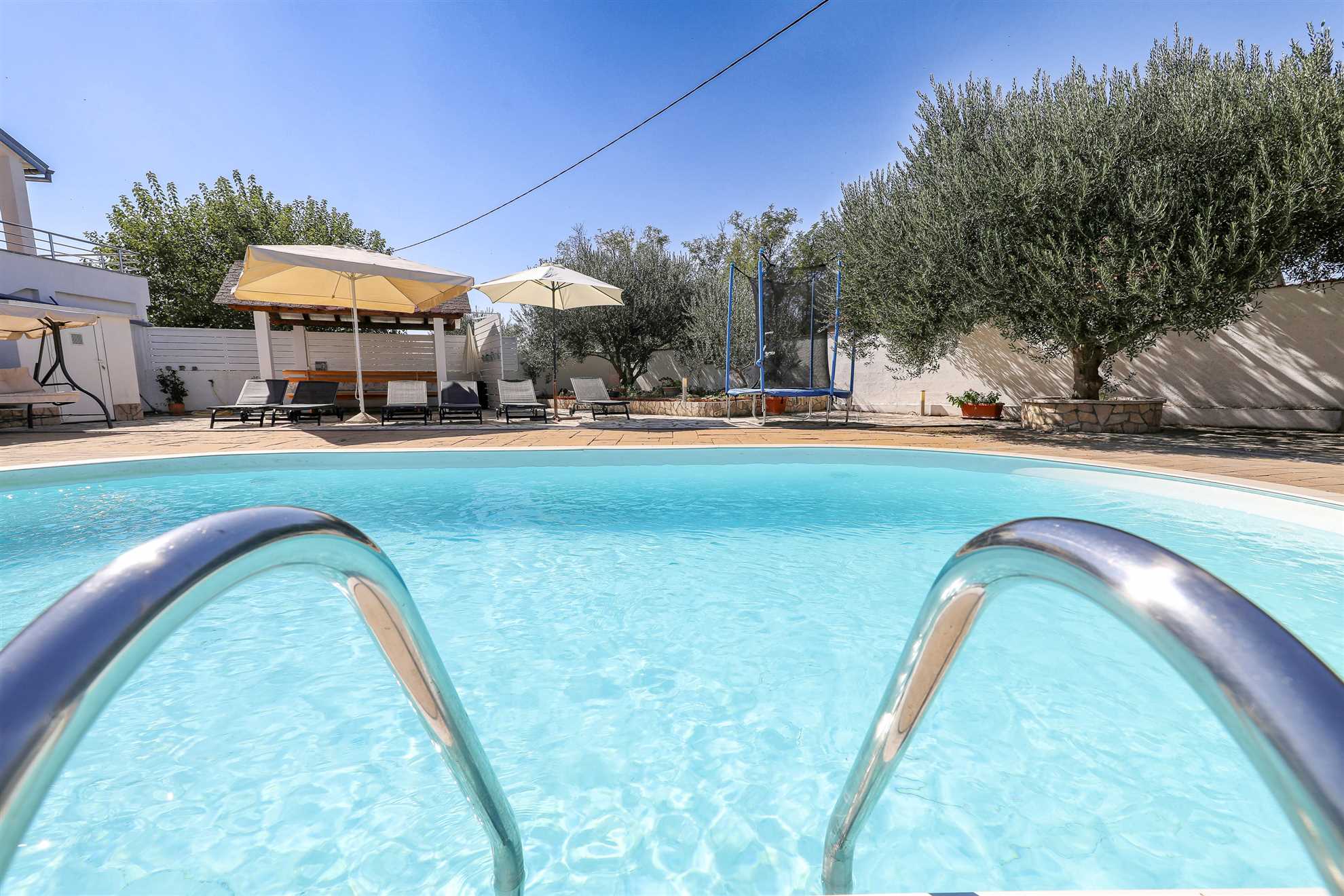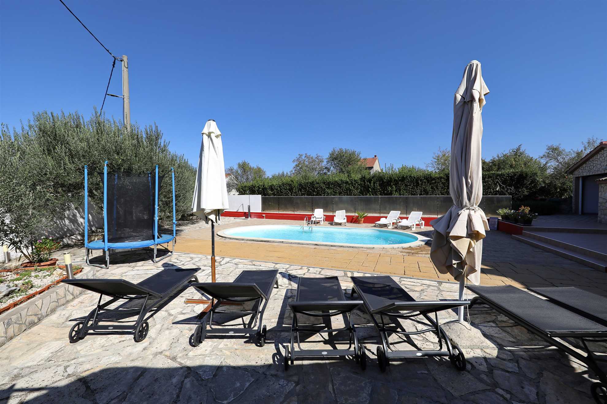 Willkommen im Ferienhaus Polaca!Unser Ferienhaus bietet Platz für bis zu 10 Personen und verfügt über vier gemütliche Schlafzimmer, einen herrlichen Pool und einen großen Balkon. Diese 175 qm große Unterkunft befindet sich im gleichnamigen Urlaubsort Polaca. Egal ob Sie als Familie oder als kleine Gruppe die Umgebung erkunden möchten, unser Ferienhaus ist die ideale Wahl.Polaca ist ein schönes Ferienhaus, umgeben von viel grün mit vielen schattigen Plätzen zum ... Am besten geeignet für 1 Person. Bietet Platz für maximal 10 Personen. Größe: 175 m² zum Wanderweg: 0.01km zum Bäcker: 0.6km zum Supermarkt: 0.6km zum Radweg: 0.01km Unsere Ferienunterkunft befindet sich in einer ruhigen Lage und ist ideal für Familien mit Kindern, Landurlauber, Motorradfahrer, Naturliebhaber, Radfahrer, Reisegruppen, Senioren und alle, die einen Strand- oder Badeurlaub, Urlaub mit Pool oder Wandern/Walking genießen möchten.Die nächste Einkaufsmöglichkeit ist nur ca. 600 m von der Unterkunft entfernt, so dass Sie bequem zu Fuß dorthin gelangen können. Auch die Ortsmitte ist mit einer Entfernung von ca. 2,5 km gut zu erreichen.Für alle, die einen Tag am Strand genießen möchten, ist der Strand nur ca. 9 km entfernt. Hier können Sie im Meer schwimmen, am Strand entspannen oder Wassersportaktivitäten ausüben.Unsere Unterkunft liegt auch in der Nähe eines Nationalparks, der sich hervorragend für Wanderungen und Spaziergänge eignet. Hier können Sie die unberührte Natur und die Tierwelt hautnah erleben.Für Radfahrer gibt es in der Umgebung zahlreiche Radwege, die durch wunderschöne Landschaften führen. Auch für Motorradfahrer gibt es hier viele kurvenreiche Strecken zu erkunden.Unsere Unterkunft ist auch ideal für Reisegruppen, da sie genügend Platz für alle bietet und in einer ruhigen Lage liegt.Für Senioren ist die Umgebung ebenfalls geeignet, da die Unterkunft ebenerdig erreichbar ist und es in der Nähe viele Spazierwege gibt.In unserer Ferienunterkunft können Sie sich auch an heißen Tagen im Pool erfrischen und entspannen. Dies ist besonders für Familien mit Kindern und für alle, die einen Strandurlaub bevorzugen, eine tolle Abwechslung.Insgesamt bietet unsere Unterkunft eine ideale Lage für alle, die Ruhe und Erholung suchen sowie für alle, die Aktivitäten in der Natur genießen möchten. zum Flughafen: 35.0km ... Entspannen. Zwei der insgesamt vier gemütlichen Schlafzimmer sind mit einem Doppelbett ausgestattet und die anderen beiden mit jeweils zwei Einzelbetten. Beide Badezimmer verfügen über eine erfrischende Dusche und schöne Fliesen. Im Erdgeschoss des Ferienhauses finden Sie eine große und gut ausgestattete Wohnküche mit Esstisch, an dem jeder für eine gemütliche Runde platz findet.Im Außenbereich erwartet Sie ein großer Pool mit Sonnenliegen und einer Sitzecke die zum verweilen einlädt. Bereiten Sie am Steingrill dalmatinische Spezialitäten zu und genießen diese zusammen am überdachten Esstisch. Entspannen Sie auf der Hollywoodschaukel und lesen Sie ein gutes Buch.Für Ihren Komfort sind beide Etagen mit einer Klimaanlage ausgestattet. Eine kostenfreie Doppelgarage gehört zu dem Ferienhaus.Haustiere sind hier auf Anfrage gestattet.Zusammenfassend bietet das Ferienhaus Polaca eine perfekte Unterkunft für einen ruhigen und erholsamen Urlaub.Wir freuen uns darauf, Sie in unserem Ferienhaus willkommen zu heißen und Ihnen einen schönen Aufenthalt zu ermöglichen!Bei Anreise ist eine Kaution von 200 € in bar beim Eigentümer zu hinterlegen. Willkommen im Ferienhaus Polaca!Unser Ferienhaus bietet Platz für bis zu 10 Personen und verfügt über vier gemütliche Schlafzimmer, einen herrlichen Pool und einen großen Balkon. Diese 175 qm große Unterkunft befindet sich im gleichnamigen Urlaubsort Polaca. Egal ob Sie als Familie oder als kleine Gruppe die Umgebung erkunden möchten, unser Ferienhaus ist die ideale Wahl.Polaca ist ein schönes Ferienhaus, umgeben von viel grün mit vielen schattigen Plätzen zum Entspannen. Zwei der insgesamt vier gemütlichen Schlafzimmer sind mit einem Doppelbett ausgestattet und die anderen beiden mit jeweils zwei Einzelbetten. Beide Badezimmer verfügen über eine erfrischende Dusche und schöne Fliesen. Im Erdgeschoss des Ferienhauses finden Sie eine große und gut ausgestattete Wohnküche mit Esstisch, an dem jeder für eine gemütliche Runde platz findet.Im Außenbereich erwartet Sie ein großer Pool mit Sonnenliegen und einer Sitzecke die zum verweilen einlädt. Bereiten Sie am Steingrill dalmatinische Spezialitäten zu und genießen diese zusammen am überdachten Esstisch. Entspannen Sie auf der Hollywoodschaukel und lesen Sie ein gutes Buch.Für Ihren Komfort sind beide Etagen mit einer Klimaanlage ausgestattet. Eine kostenfreie Doppelgarage gehört zu dem Ferienhaus.Haustiere sind hier auf Anfrage gestattet.Zusammenfassend bietet das Ferienhaus Polaca eine perfekte Unterkunft für einen ruhigen und erholsamen Urlaub.Wir freuen uns darauf, Sie in unserem Ferienhaus willkommen zu heißen und Ihnen einen schönen Aufenthalt zu ermöglichen!Bei Anreise ist eine Kaution von 200 Euro in bar beim Eigentümer zu hinterlegen. Folgende Sprachen werden gesprochen: kroatisch, tschechisch, englisch, deutsch, slowakisch