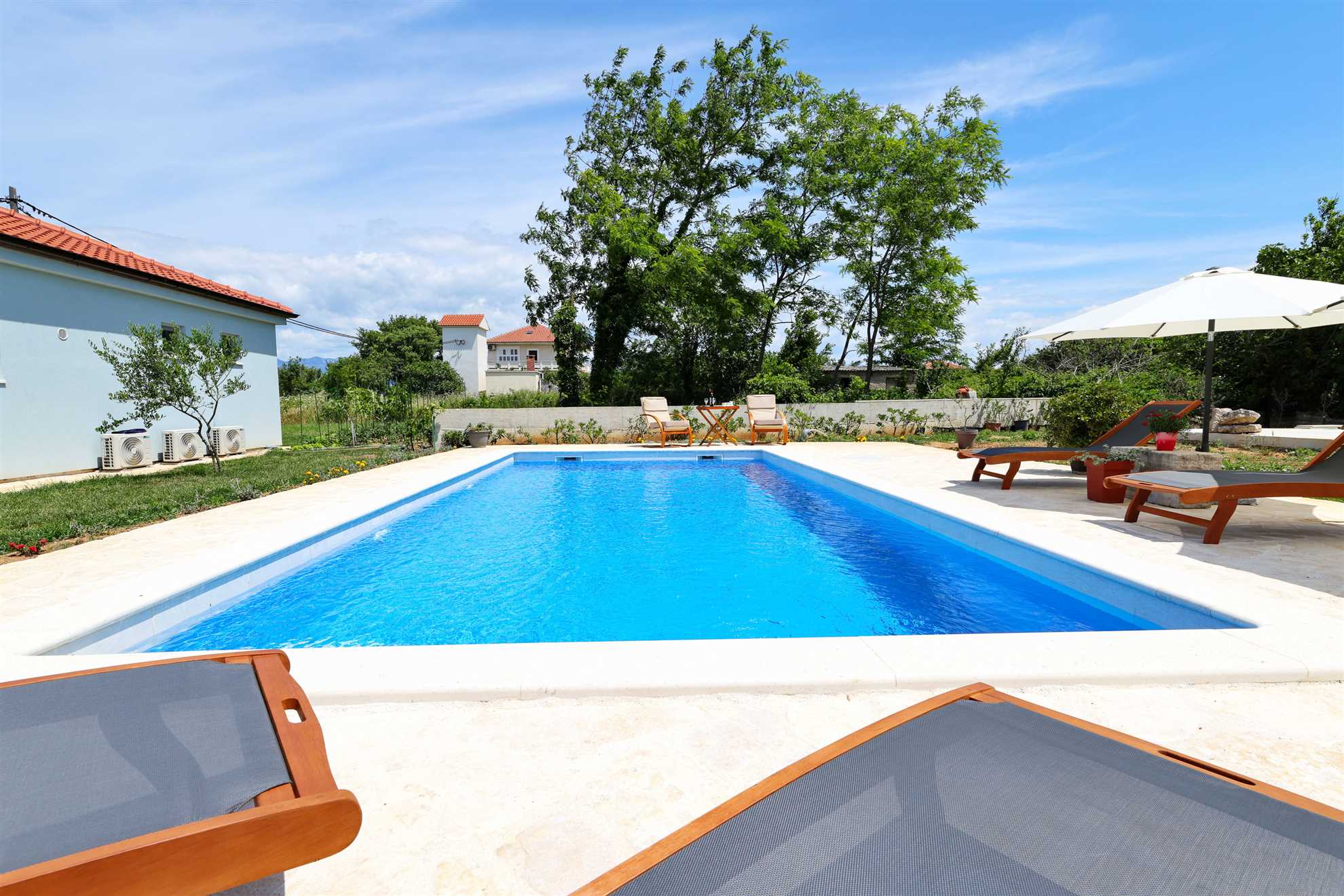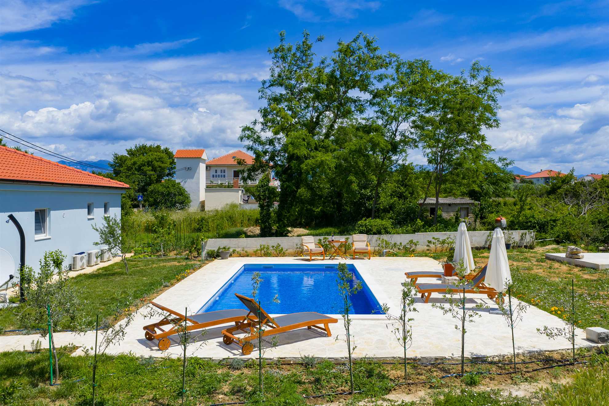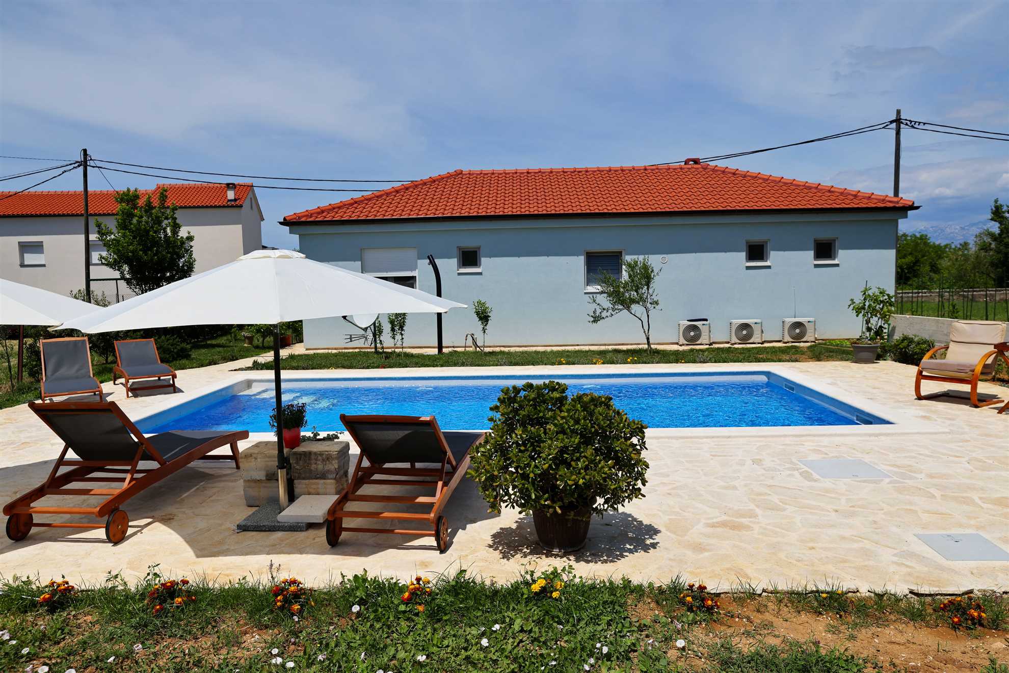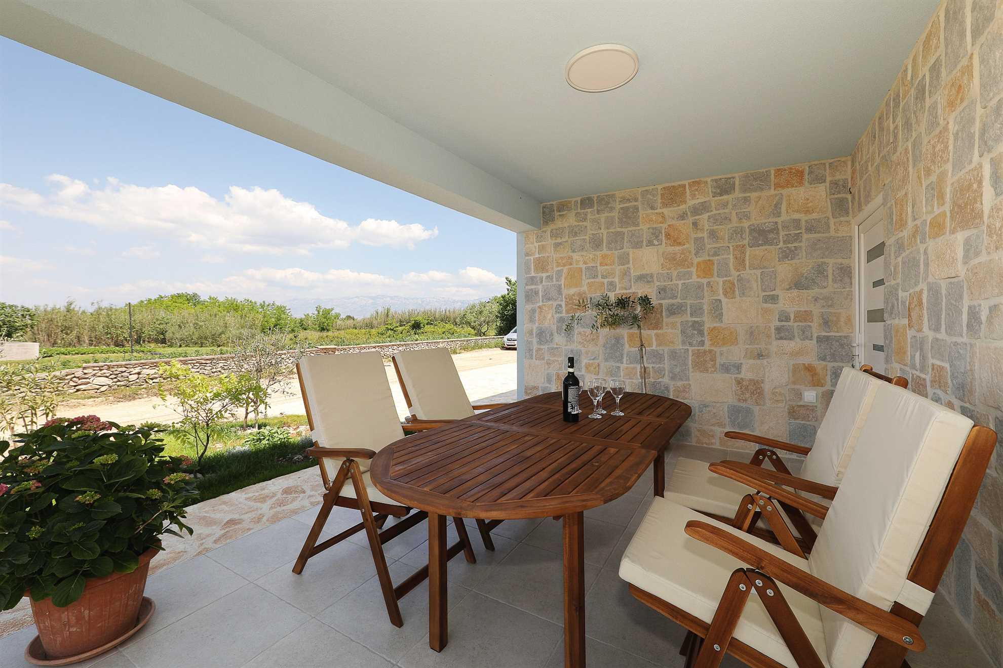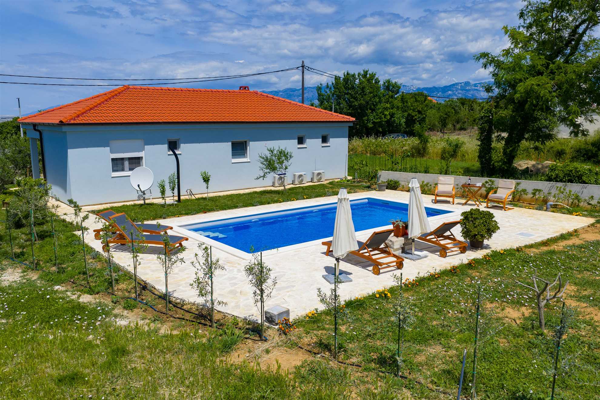 Willkommen im Ferienhaus Pomalo!Unser neuerbautes Ferienhaus bietet Platz für 4 Personen und verfügt über zwei gemütliche Schlafzimmer, einen herrlichen Garten und schönen Blick auf das Velebitgebirge. Diese 80 qm große und komfortable Unterkunft befindet sich auf der gleichnamigen Halbinsel Vrsi und ist nur 150 m vom Zentrum entfernt. Unser Ferienhaus ist die ideale Wahl für einen familienfreundlichen Urlaub.Pomalo ist eine wunderschöne Ferienwohnung, umgeben ... Am besten geeignet für 1 Person. Bietet Platz für maximal 4 Personen. Größe: 80 m² zum Zentrum: 0.15km zum Bäcker: 0.25km zum Supermarkt: 0.25km Unsere Ferienunterkunft befindet sich in einer ruhigen und zugleich zentralen Lage. Der Strand ist ca. 1,5 km entfernt, während die Ortsmitte nur ca. 150 m entfernt ist. Diese Entfernungen sind ideal für alle, die eine ruhige Umgebung bevorzugen, aber dennoch in kurzer Zeit das Meer oder das Ortszentrum erreichen möchten.Unsere Unterkunft ist perfekt geeignet für Familien mit Kindern, da sie sich in einer ruhigen Umgebung befindet und dennoch viele Möglichkeiten für Aktivitäten bietet. Auch Langzeitvermieter sind bei uns herzlich willkommen und können sich auf eine angenehme und komfortable Unterkunft freuen.Für Motorradfahrer ist unsere Unterkunft ebenfalls ideal gelegen. Die ruhige Umgebung bietet entspannte Touren durch die schöne Landschaft und auch der Nationalpark in der Nähe lädt zu Erkundungen ein.Radfahrer kommen bei uns voll auf ihre Kosten, denn die Umgebung bietet viele schöne Radwege und auch größere Reisegruppen finden bei uns ausreichend Platz und Komfort.Unsere Unterkunft ist auch perfekt für Senioren geeignet, da sie in einer ruhigen und zentralen Lage liegt und somit kurze Wege zu allen wichtigen Einrichtungen bietet.Für alle, die einen Strand- oder Badeurlaub planen, ist unsere Unterkunft ebenfalls bestens geeignet. Der Strand ist nur ca. 1,5 km entfernt und somit leicht zu Fuß oder mit dem Fahrrad zu erreichen.Auch für Wanderer und Walking-Enthusiasten ist unsere Unterkunft eine gute Wahl. Die ruhige Lage bietet die Möglichkeit, die Natur in vollen Zügen zu genießen und die umliegenden Wanderwege zu erkunden.Insgesamt bietet unsere Ferienunterkunft eine ideale Lage für alle, die Ruhe und Entspannung suchen, aber dennoch nicht auf die Nähe zu wichtigen Einrichtungen und Aktivitäten verzichten möchten. Wir freuen uns darauf, Sie als unsere Gäste begrüßen zu dürfen. zum Flughafen: 28.0km ... sattem Grün mit vielen schattigen Plätzen zum Entspannen. Beide Schlafzimmer mit en suit Bad, sind mit komfortablen Doppelbetten und geräumigen Kleiderschränken ausgestattet. Die Badezimmer sind modern eingerichtet und verfügen über eine Bodendusche und geschmackvolle Fliesen. Der große Wohnraum mit integrierter Küche erstrahlt mit hellen und stilvollen Möbeln und seiner geschmackvollen Dekoration.Frühstücken Sie, oder genießen Sie Ihr Mittag- [&] Abendessen auf der möblierten und überdachten Terrasse und genießen Sie dabei den Blick zum Meer und auf das Velebitgebirge. Ein Grill lädt dazu ein dalmatinische Spezialitäten zuzubereiten. Zusätzlich steht Ihnen kostenfrei ein Gemüsegarten hinter dem Haus zur Verfügung.Für Ihren Komfort sind Klimaanlagen in beiden Schlafzimmern sowie im Wohnbereich vorhanden. Das Parken ist direkt auf dem Grundstück vor dem Haus möglich.Das Ferienhaus Pomalo bietet eine perfekte Unterkunft für einen ruhigen und erholsamen Urlaub. Freuen Sie sich einen Aufenthalt umgeben von der Natur mit Blick auf das schöne Velebitgebirge, sowie wunderschönen Stränden in Ihrer Nähe die Sie in nur wenigen Autominuten erreichen können.Wir freuen uns darauf, Sie in unserem Ferienhaus willkommen zu heißen und Ihnen einen wundervollen Aufenthalt zu ermöglichen! Willkommen im Ferienhaus Pomalo!Unser neuerbautes Ferienhaus bietet Platz für 4 Personen und verfügt über zwei gemütliche Schlafzimmer, einen herrlichen Garten und schönen Blick auf das Velebitgebirge. Diese 80 qm große und komfortable Unterkunft befindet sich auf der gleichnamigen Halbinsel Vrsi und ist nur 150 m vom Zentrum entfernt. Unser Ferienhaus ist die ideale Wahl für einen familienfreundlichen Urlaub.Pomalo ist eine wunderschöne Ferienwohnung, umgeben sattem Grün mit vielen schattigen Plätzen zum Entspannen. Beide Schlafzimmer mit en suit Bad, sind mit komfortablen Doppelbetten und geräumigen Kleiderschränken ausgestattet. Die Badezimmer sind modern eingerichtet und verfügen über eine Bodendusche und geschmackvolle Fliesen. Der große Wohnraum mit integrierter Küche erstrahlt mit hellen und stilvollen Möbeln und seiner geschmackvollen Dekoration.Frühstücken Sie, oder genießen Sie Ihr Mittag- [&] Abendessen auf der möblierten und überdachten Terrasse und genießen Sie dabei den Blick zum Meer und auf das Velebitgebirge. Ein Grill lädt dazu ein dalmatinische Spezialitäten zuzubereiten. Zusätzlich steht Ihnen kostenfrei ein Gemüsegarten hinter dem Haus zur Verfügung.Für Ihren Komfort sind Klimaanlagen in beiden Schlafzimmern sowie im Wohnbereich vorhanden. Das Parken ist direkt auf dem Grundstück vor dem Haus möglich.Das Ferienhaus Pomalo bietet eine perfekte Unterkunft für einen ruhigen und erholsamen Urlaub. Freuen Sie sich einen Aufenthalt umgeben von der Natur mit Blick auf das schöne Velebitgebirge, sowie wunderschönen Stränden in Ihrer Nähe die Sie in nur wenigen Autominuten erreichen können.Wir freuen uns darauf, Sie in unserem Ferienhaus willkommen zu heißen und Ihnen einen wundervollen Aufenthalt zu ermöglichen! Folgende Sprachen werden gesprochen: kroatisch, tschechisch, englisch, deutsch, slowakisch