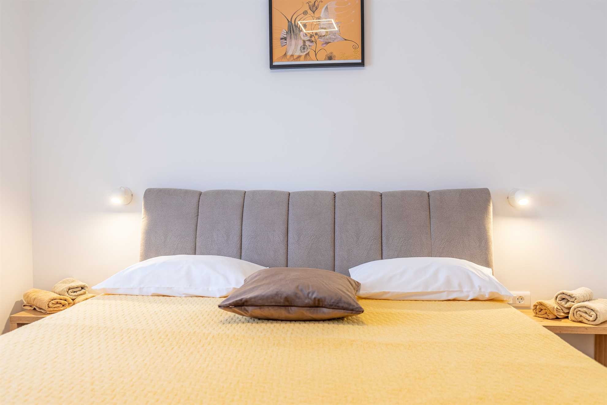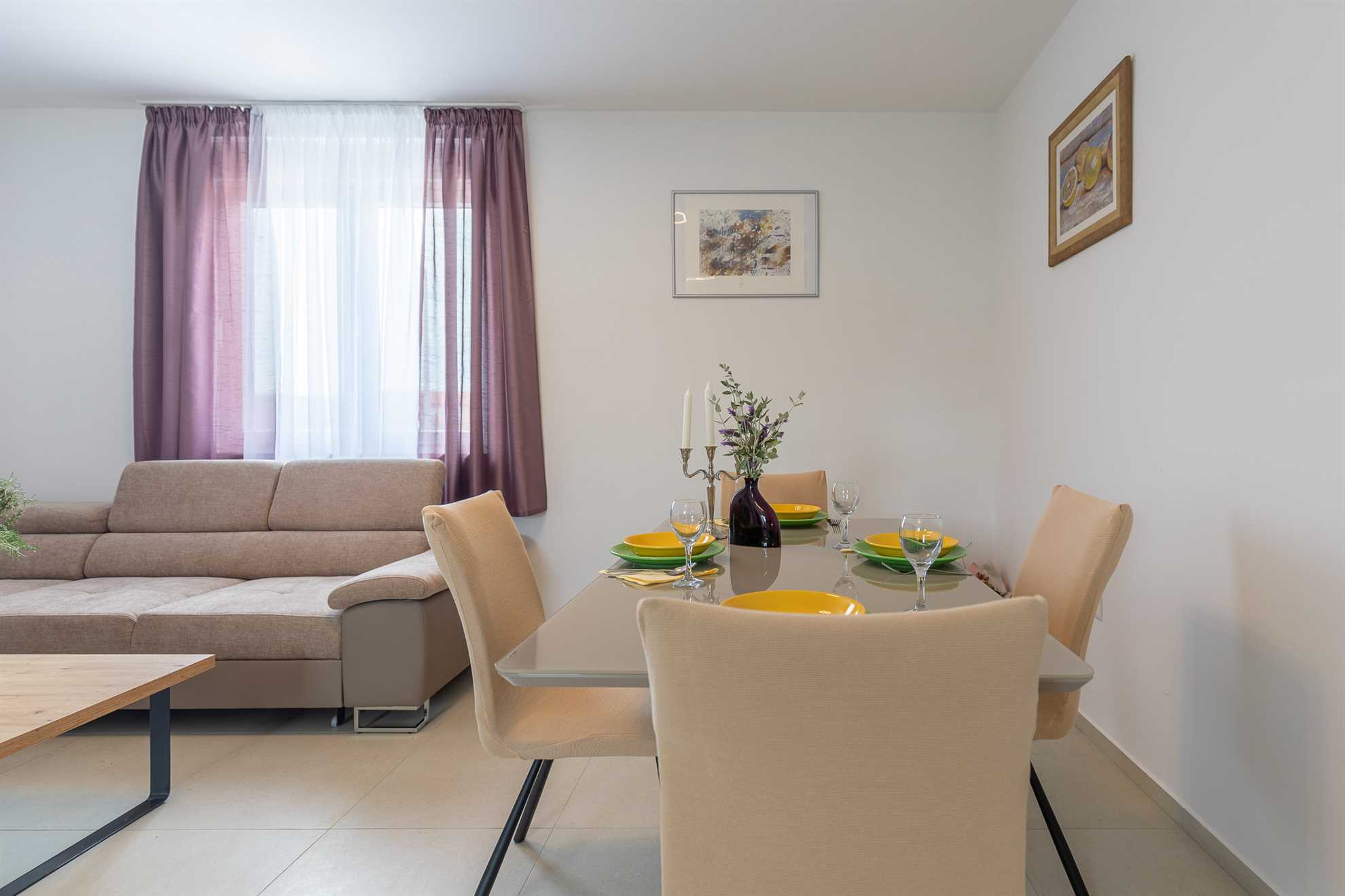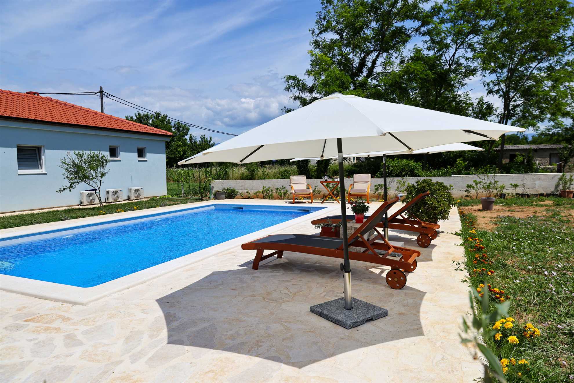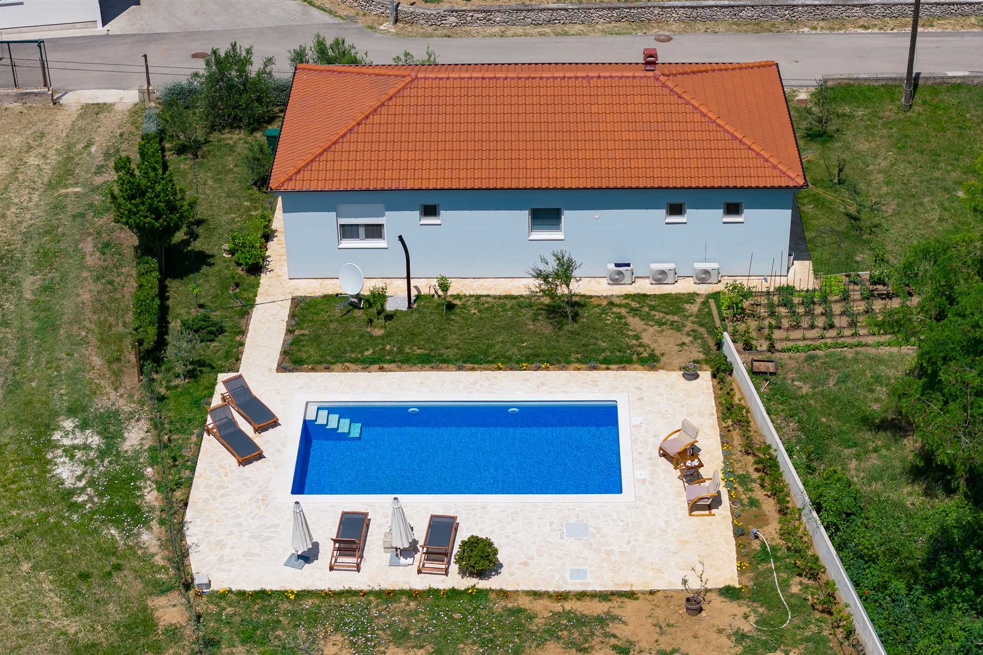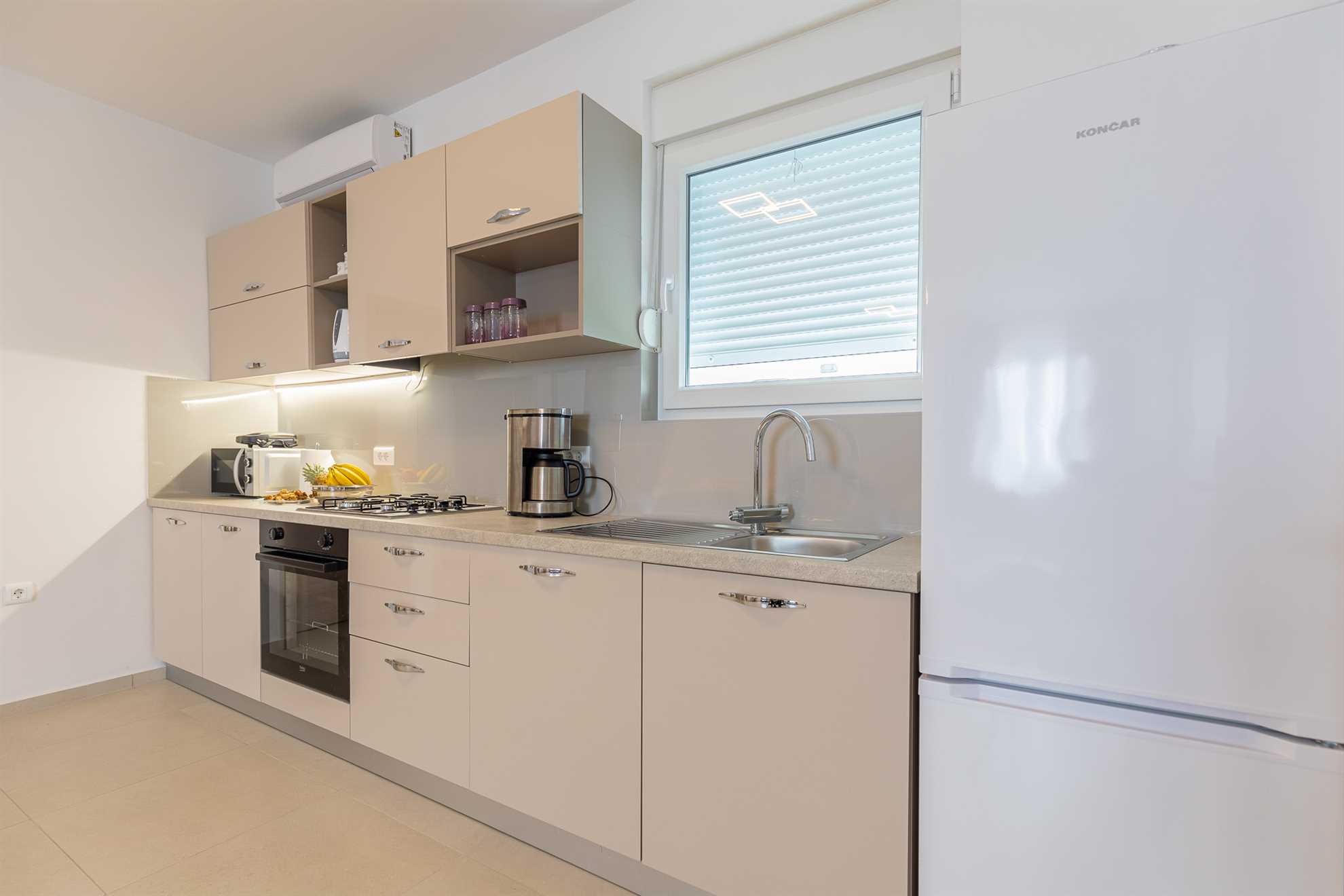Willkommen im Ferienhaus Pomalo!Unser neuerbautes Ferienhaus bietet Platz für 4 Personen und verfügt über zwei gemütliche Schlafzimmer, einen herrlichen Garten und schönen Blick auf das Velebitgebirge. Diese 80 qm große und komfortable Unterkunft befindet sich auf der gleichnamigen Halbinsel Vrsi und ist nur 150 m vom Zentrum entfernt. Unser Ferienhaus ist die ideale Wahl für einen familienfreundlichen Urlaub.Pomalo ist eine wunderschöne Ferienwohnung, umgeben ... Am besten geeignet für 1 Person. Bietet Platz für maximal 4 Personen. Größe: 80 m² zum Zentrum: 0.15km zum Bäcker: 0.25km zum Supermarkt: 0.25km Unsere Ferienunterkunft befindet sich in einer ruhigen und zugleich zentralen Lage. Der Strand ist ca. 1,5 km entfernt, während die Ortsmitte nur ca. 150 m entfernt ist. Diese Entfernungen sind ideal für alle, die eine ruhige Umgebung bevorzugen, aber dennoch in kurzer Zeit das Meer oder das Ortszentrum erreichen möchten.Unsere Unterkunft ist perfekt geeignet für Familien mit Kindern, da sie sich in einer ruhigen Umgebung befindet und dennoch viele Möglichkeiten für Aktivitäten bietet. Auch Langzeitvermieter sind bei uns herzlich willkommen und können sich auf eine angenehme und komfortable Unterkunft freuen.Für Motorradfahrer ist unsere Unterkunft ebenfalls ideal gelegen. Die ruhige Umgebung bietet entspannte Touren durch die schöne Landschaft und auch der Nationalpark in der Nähe lädt zu Erkundungen ein.Radfahrer kommen bei uns voll auf ihre Kosten, denn die Umgebung bietet viele schöne Radwege und auch größere Reisegruppen finden bei uns ausreichend Platz und Komfort.Unsere Unterkunft ist auch perfekt für Senioren geeignet, da sie in einer ruhigen und zentralen Lage liegt und somit kurze Wege zu allen wichtigen Einrichtungen bietet.Für alle, die einen Strand- oder Badeurlaub planen, ist unsere Unterkunft ebenfalls bestens geeignet. Der Strand ist nur ca. 1,5 km entfernt und somit leicht zu Fuß oder mit dem Fahrrad zu erreichen.Auch für Wanderer und Walking-Enthusiasten ist unsere Unterkunft eine gute Wahl. Die ruhige Lage bietet die Möglichkeit, die Natur in vollen Zügen zu genießen und die umliegenden Wanderwege zu erkunden.Insgesamt bietet unsere Ferienunterkunft eine ideale Lage für alle, die Ruhe und Entspannung suchen, aber dennoch nicht auf die Nähe zu wichtigen Einrichtungen und Aktivitäten verzichten möchten. Wir freuen uns darauf, Sie als unsere Gäste begrüßen zu dürfen. zum Flughafen: 28.0km ... sattem Grün mit vielen schattigen Plätzen zum Entspannen. Beide Schlafzimmer mit en suit Bad, sind mit komfortablen Doppelbetten und geräumigen Kleiderschränken ausgestattet. Die Badezimmer sind modern eingerichtet und verfügen über eine Bodendusche und geschmackvolle Fliesen. Der große Wohnraum mit integrierter Küche erstrahlt mit hellen und stilvollen Möbeln und seiner geschmackvollen Dekoration.Frühstücken Sie, oder genießen Sie Ihr Mittag- [&] Abendessen auf der möblierten und überdachten Terrasse und genießen Sie dabei den Blick zum Meer und auf das Velebitgebirge. Ein Grill lädt dazu ein dalmatinische Spezialitäten zuzubereiten. Zusätzlich steht Ihnen kostenfrei ein Gemüsegarten hinter dem Haus zur Verfügung.Für Ihren Komfort sind Klimaanlagen in beiden Schlafzimmern sowie im Wohnbereich vorhanden. Das Parken ist direkt auf dem Grundstück vor dem Haus möglich.Das Ferienhaus Pomalo bietet eine perfekte Unterkunft für einen ruhigen und erholsamen Urlaub. Freuen Sie sich einen Aufenthalt umgeben von der Natur mit Blick auf das schöne Velebitgebirge, sowie wunderschönen Stränden in Ihrer Nähe die Sie in nur wenigen Autominuten erreichen können.Wir freuen uns darauf, Sie in unserem Ferienhaus willkommen zu heißen und Ihnen einen wundervollen Aufenthalt zu ermöglichen! Willkommen im Ferienhaus Pomalo!Unser neuerbautes Ferienhaus bietet Platz für 4 Personen und verfügt über zwei gemütliche Schlafzimmer, einen herrlichen Garten und schönen Blick auf das Velebitgebirge. Diese 80 qm große und komfortable Unterkunft befindet sich auf der gleichnamigen Halbinsel Vrsi und ist nur 150 m vom Zentrum entfernt. Unser Ferienhaus ist die ideale Wahl für einen familienfreundlichen Urlaub.Pomalo ist eine wunderschöne Ferienwohnung, umgeben sattem Grün mit vielen schattigen Plätzen zum Entspannen. Beide Schlafzimmer mit en suit Bad, sind mit komfortablen Doppelbetten und geräumigen Kleiderschränken ausgestattet. Die Badezimmer sind modern eingerichtet und verfügen über eine Bodendusche und geschmackvolle Fliesen. Der große Wohnraum mit integrierter Küche erstrahlt mit hellen und stilvollen Möbeln und seiner geschmackvollen Dekoration.Frühstücken Sie, oder genießen Sie Ihr Mittag- [&] Abendessen auf der möblierten und überdachten Terrasse und genießen Sie dabei den Blick zum Meer und auf das Velebitgebirge. Ein Grill lädt dazu ein dalmatinische Spezialitäten zuzubereiten. Zusätzlich steht Ihnen kostenfrei ein Gemüsegarten hinter dem Haus zur Verfügung.Für Ihren Komfort sind Klimaanlagen in beiden Schlafzimmern sowie im Wohnbereich vorhanden. Das Parken ist direkt auf dem Grundstück vor dem Haus möglich.Das Ferienhaus Pomalo bietet eine perfekte Unterkunft für einen ruhigen und erholsamen Urlaub. Freuen Sie sich einen Aufenthalt umgeben von der Natur mit Blick auf das schöne Velebitgebirge, sowie wunderschönen Stränden in Ihrer Nähe die Sie in nur wenigen Autominuten erreichen können.Wir freuen uns darauf, Sie in unserem Ferienhaus willkommen zu heißen und Ihnen einen wundervollen Aufenthalt zu ermöglichen! Folgende Sprachen werden gesprochen: kroatisch, tschechisch, englisch, deutsch, slowakisch