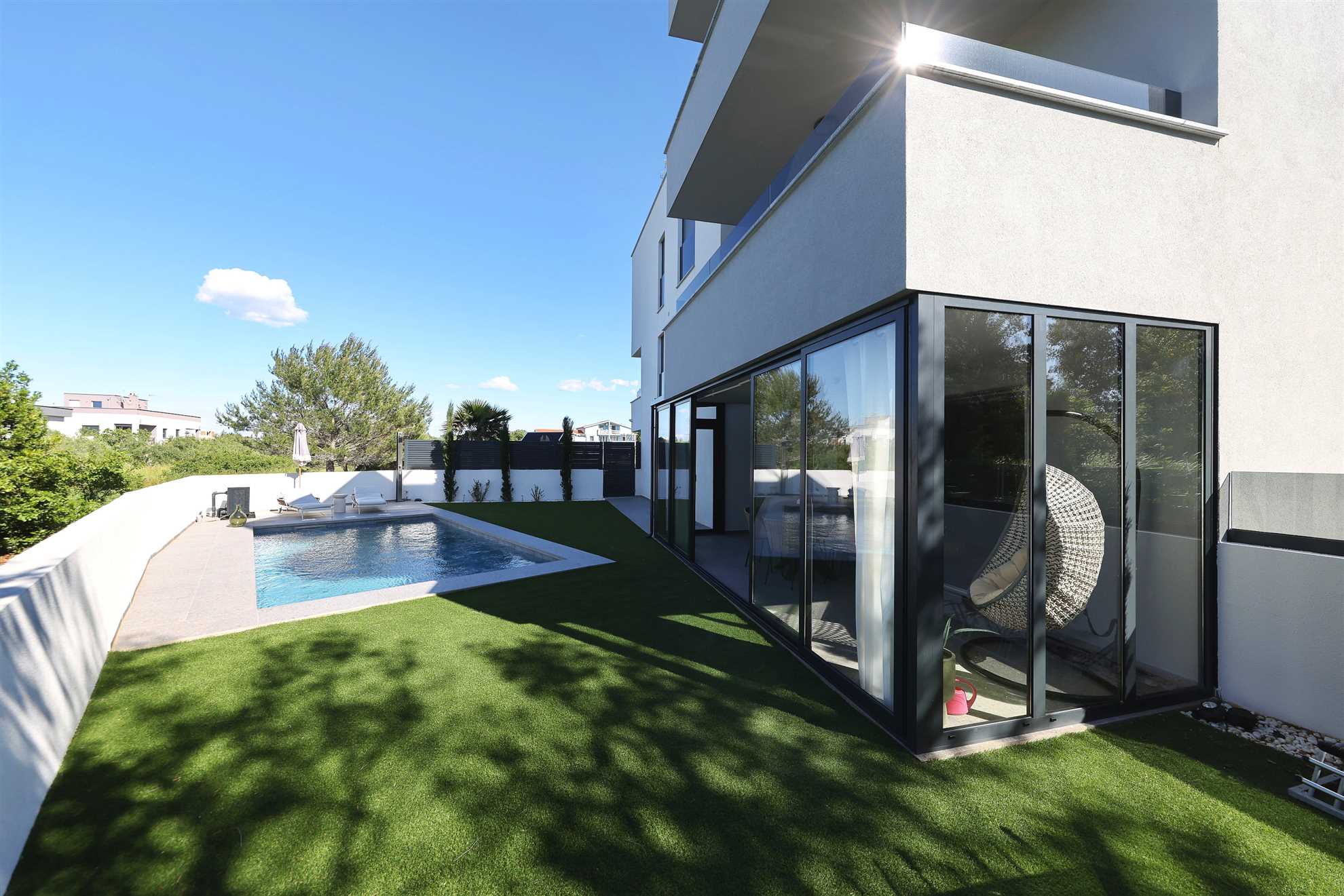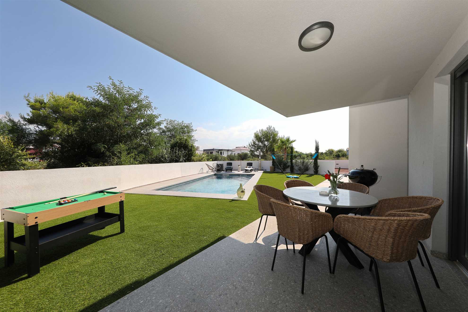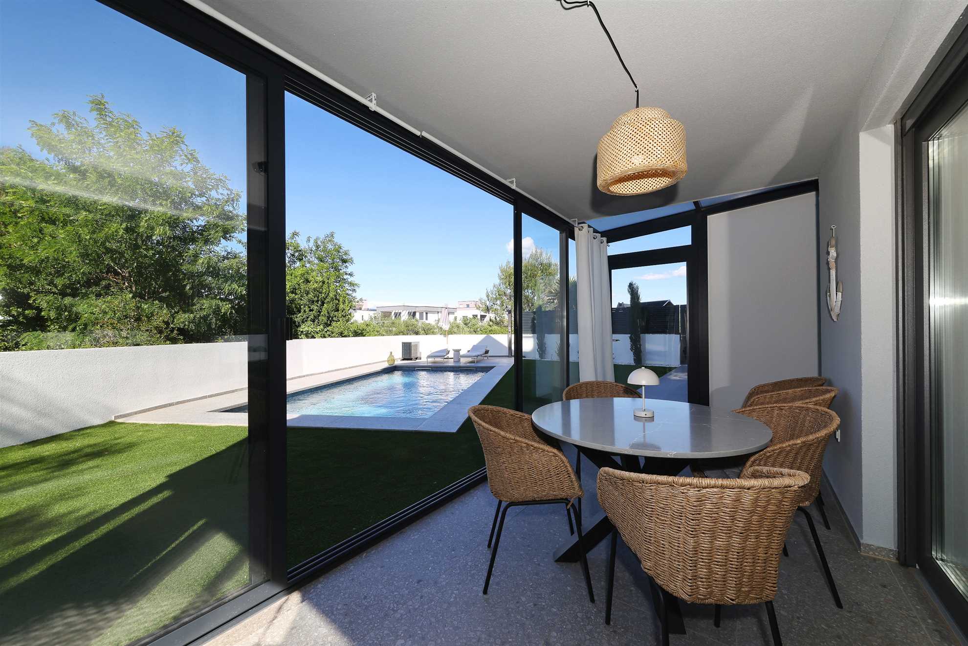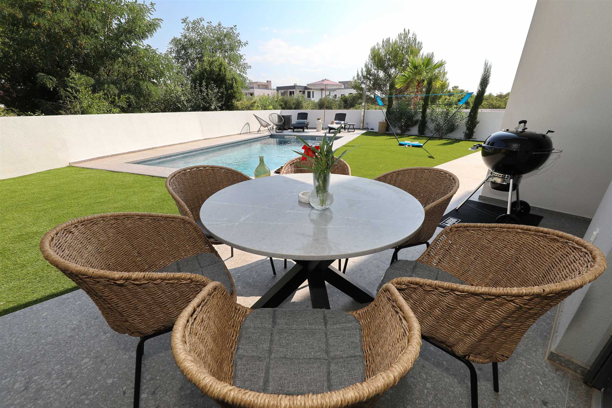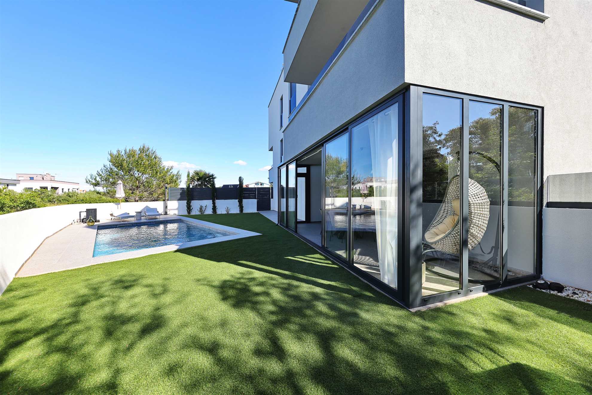 Das Apartment RoBell in Zaton ist eine geräumige Ferienunterkunft mit 73 m² zuzüglich 143 qm Garten, die Platz für bis zu 6 Personen bietet. Es verfügt über 2 Schlafzimmer und 1 Badezimmer und ist somit ideal für Familien oder Gruppen geeignet.Die Ausstattung des Apartments umfasst alles, was man für einen angenehmen Aufenthalt benötigt. Dazu gehören Internet und WLAN, eine Waschmaschine, ein Geschirrspüler, eine Mikrowelle und drei Klimaanlagen. Für Gäste, die mit dem Auto ... Am besten geeignet für 1 Person. Bietet Platz für maximal 6 Personen. Größe: 75 m² zum Strand: 0.12km zur Badestelle/Gewässer: 0.12km zum Bäcker: 0.8km zum Supermarkt: 0.8km zum Restaurant: 0.5km Unsere Ferienunterkunft befindet sich in einer ruhigen Lage, nur ca. 120 m vom Strand entfernt. Für Einkäufe steht eine Möglichkeit in ca. 800 m Entfernung zur Verfügung und die Ortsmitte ist ca. 1,2 km entfernt. Ein Restaurant ist in nur 500 m zu erreichen.Unser Objekt ist ideal für Familien mit Kindern, da der Strand in unmittelbarer Nähe ist und somit für Badeurlaub und Spiele am Strand geeignet ist. Auch für Geschäftsreisende bietet unsere Lage eine gute Möglichkeit, um nach einem langen Arbeitstag am Strand zu entspannen.Für Gourmet- und Genießerreisen ist unsere Ferienunterkunft ebenfalls ideal gelegen, da ein Restaurant in der Nähe ist und die Möglichkeit besteht, frische regionale Produkte in den nahegelegenen Einkaufsmöglichkeiten zu kaufen. Motorradfahrer können unsere Lage nutzen, um Ausflüge in die umliegenden Nationalparks zu unternehmen.Naturliebhaber kommen aufgrund der Nähe zum Nationalpark auf ihre Kosten und können die Umgebung beim Radfahren, Reiten oder Wandern/Walking erkunden. Senioren können die ruhige Lage und die Möglichkeit zum Strandspaziergang genießen.Unser Objekt bietet auch für Sportbegeisterte vielfältige Möglichkeiten wie Wassersport, Radfahren oder Wandern/Walking. Für einen erholsamen Urlaub mit beheizbarem Pool und intergriertem Whirlpool ist unsere Ferienunterkunft ebenfalls geeignet.Weinliebhaber können die umliegenden Weinberge erkunden und den Urlaub mit Weinproben verbinden. Insgesamt bietet unsere Ferienunterkunft eine ruhige Lage, die strandnah ist und diverse Aktivitäten für jeden Geschmack bietet. zum Flughafen: 35.0km ... anreisen, stehen zwei Parkplatz zur Verfügung. Auch Fahrradfahrer sind hier willkommen und können ihre Räder sicher in einem abschließbaren Fahrradraum unterstellen.In dem großzügigen Garten können sich die Gäste entspannen und die Sonne genießen. Eine Grillmöglichkeit steht ebenfalls zur Verfügung. Das Apartment ist auch für Radfahrer geeignet und bietet ihnen die Möglichkeit, ihre Räder sicher abzustellen. Für eine Abkühlung an heißen Tagen sorgt der Pool ( 24,5 qm ) mit integriertem Whirlpool , welcher auch beheizt ist für die kalte Jahreszeit.In der offenen Wohnküche können Gäste gemeinsam kochen und essen. Auch eine Pad-/Kapsel-Kaffeemaschine steht bereit. Der Check-in erfolgt eigenständig und unkompliziert. Für Unterhaltung sorgt ein Smart-TV.Das Apartment befindet sich in einer ruhigen Lage, ca. 800 m von der nächsten Einkaufsmöglichkeit entfernt. Der Strand ist nur 120 m entfernt und die Ortsmitte von Zaton ist in 1,2 km bequem zu Fuß zu erreichen. In der Nähe (ca. 500 m) gibt es auch ein Restaurant, in dem man lokale Spezialitäten genießen kann.Besonders hervorzuheben ist, dass auch Hunde in diesem Apartment erlaubt sind, sodass auch die vierbeinigen Familienmitglieder mitkommen können. Für einen entspannten und unbeschwerten Urlaub ist das Apartment RoBell somit die ideale Wahl. Folgende Sprachen werden gesprochen: kroatisch, tschechisch, englisch, deutsch, slowakisch