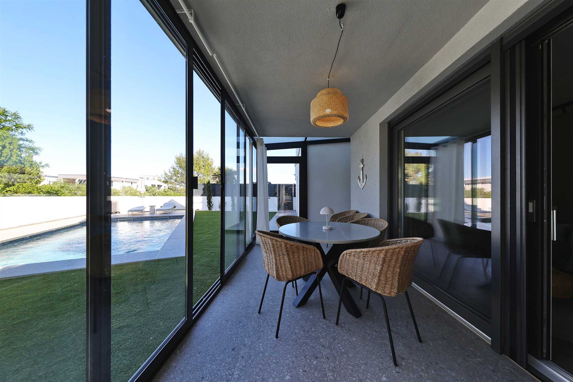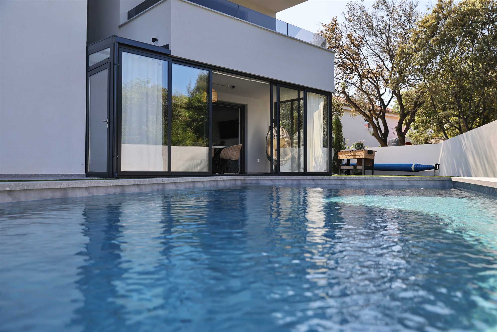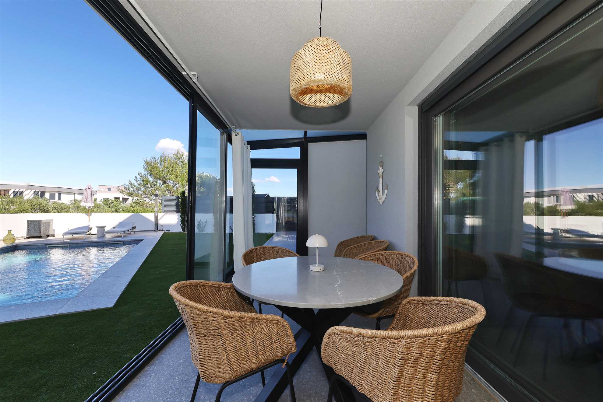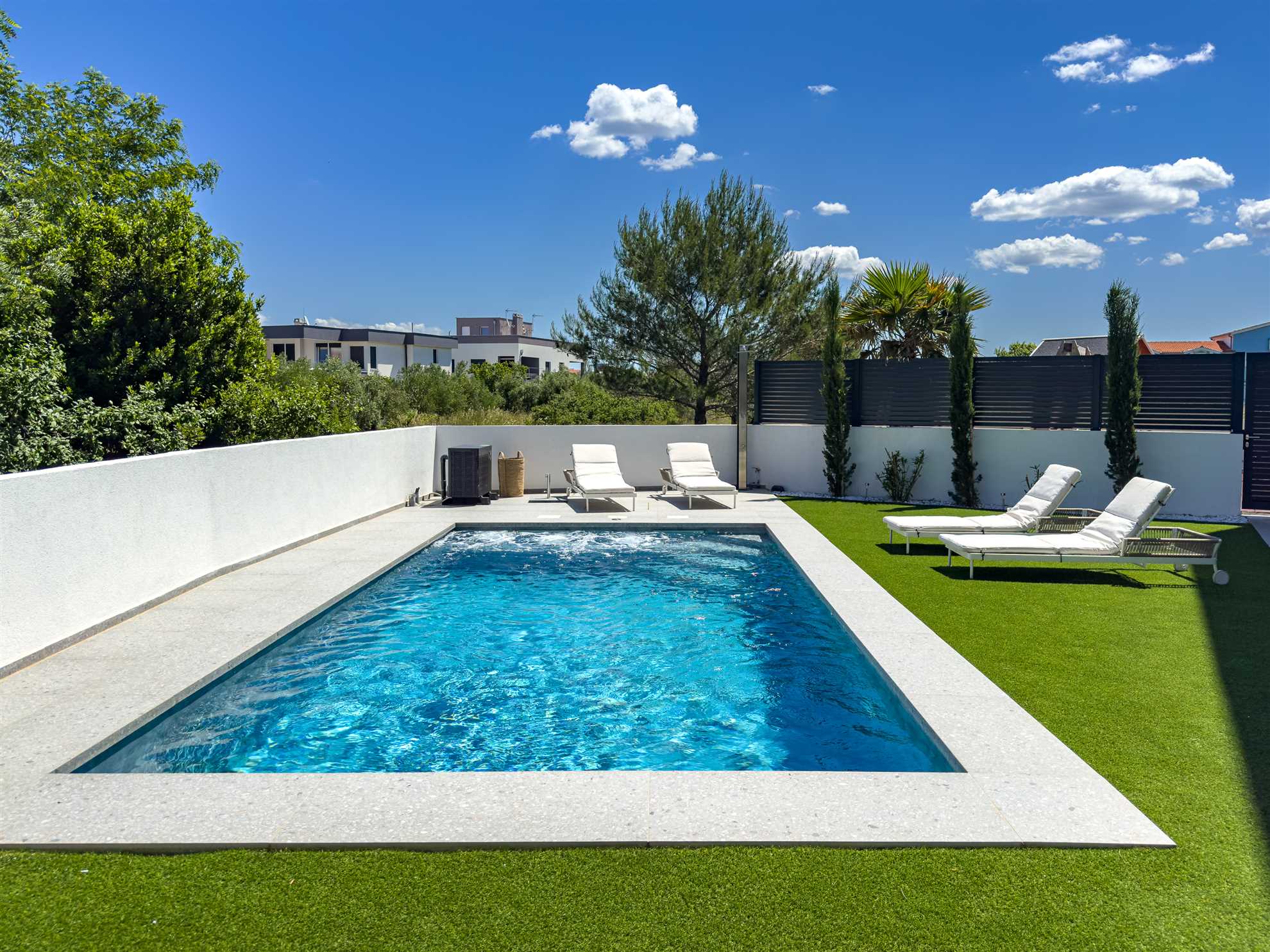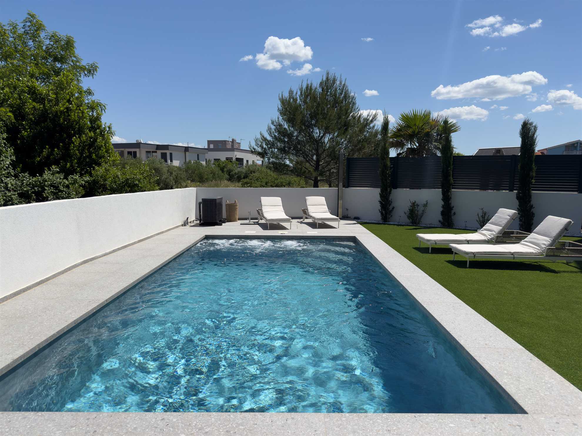 Das Apartment RoBell in Zaton ist eine geräumige Ferienunterkunft mit 73 m² zuzüglich 143 qm Garten, die Platz für bis zu 6 Personen bietet. Es verfügt über 2 Schlafzimmer und 1 Badezimmer und ist somit ideal für Familien oder Gruppen geeignet.Die Ausstattung des Apartments umfasst alles, was man für einen angenehmen Aufenthalt benötigt. Dazu gehören Internet und WLAN, eine Waschmaschine, ein Geschirrspüler, eine Mikrowelle und drei Klimaanlagen. Für Gäste, die mit dem Auto ... Am besten geeignet für 1 Person. Bietet Platz für maximal 6 Personen. Größe: 75 m² zum Strand: 0.12km zur Badestelle/Gewässer: 0.12km zum Bäcker: 0.8km zum Supermarkt: 0.8km zum Restaurant: 0.5km Unsere Ferienunterkunft befindet sich in einer ruhigen Lage, nur ca. 120 m vom Strand entfernt. Für Einkäufe steht eine Möglichkeit in ca. 800 m Entfernung zur Verfügung und die Ortsmitte ist ca. 1,2 km entfernt. Ein Restaurant ist in nur 500 m zu erreichen.Unser Objekt ist ideal für Familien mit Kindern, da der Strand in unmittelbarer Nähe ist und somit für Badeurlaub und Spiele am Strand geeignet ist. Auch für Geschäftsreisende bietet unsere Lage eine gute Möglichkeit, um nach einem langen Arbeitstag am Strand zu entspannen.Für Gourmet- und Genießerreisen ist unsere Ferienunterkunft ebenfalls ideal gelegen, da ein Restaurant in der Nähe ist und die Möglichkeit besteht, frische regionale Produkte in den nahegelegenen Einkaufsmöglichkeiten zu kaufen. Motorradfahrer können unsere Lage nutzen, um Ausflüge in die umliegenden Nationalparks zu unternehmen.Naturliebhaber kommen aufgrund der Nähe zum Nationalpark auf ihre Kosten und können die Umgebung beim Radfahren, Reiten oder Wandern/Walking erkunden. Senioren können die ruhige Lage und die Möglichkeit zum Strandspaziergang genießen.Unser Objekt bietet auch für Sportbegeisterte vielfältige Möglichkeiten wie Wassersport, Radfahren oder Wandern/Walking. Für einen erholsamen Urlaub mit beheizbarem Pool und intergriertem Whirlpool ist unsere Ferienunterkunft ebenfalls geeignet.Weinliebhaber können die umliegenden Weinberge erkunden und den Urlaub mit Weinproben verbinden. Insgesamt bietet unsere Ferienunterkunft eine ruhige Lage, die strandnah ist und diverse Aktivitäten für jeden Geschmack bietet. zum Flughafen: 35.0km ... anreisen, stehen zwei Parkplatz zur Verfügung. Auch Fahrradfahrer sind hier willkommen und können ihre Räder sicher in einem abschließbaren Fahrradraum unterstellen.In dem großzügigen Garten können sich die Gäste entspannen und die Sonne genießen. Eine Grillmöglichkeit steht ebenfalls zur Verfügung. Das Apartment ist auch für Radfahrer geeignet und bietet ihnen die Möglichkeit, ihre Räder sicher abzustellen. Für eine Abkühlung an heißen Tagen sorgt der Pool ( 24,5 qm ) mit integriertem Whirlpool , welcher auch beheizt ist für die kalte Jahreszeit.In der offenen Wohnküche können Gäste gemeinsam kochen und essen. Auch eine Pad-/Kapsel-Kaffeemaschine steht bereit. Der Check-in erfolgt eigenständig und unkompliziert. Für Unterhaltung sorgt ein Smart-TV.Das Apartment befindet sich in einer ruhigen Lage, ca. 800 m von der nächsten Einkaufsmöglichkeit entfernt. Der Strand ist nur 120 m entfernt und die Ortsmitte von Zaton ist in 1,2 km bequem zu Fuß zu erreichen. In der Nähe (ca. 500 m) gibt es auch ein Restaurant, in dem man lokale Spezialitäten genießen kann.Besonders hervorzuheben ist, dass auch Hunde in diesem Apartment erlaubt sind, sodass auch die vierbeinigen Familienmitglieder mitkommen können. Für einen entspannten und unbeschwerten Urlaub ist das Apartment RoBell somit die ideale Wahl. Folgende Sprachen werden gesprochen: kroatisch, tschechisch, englisch, deutsch, slowakisch