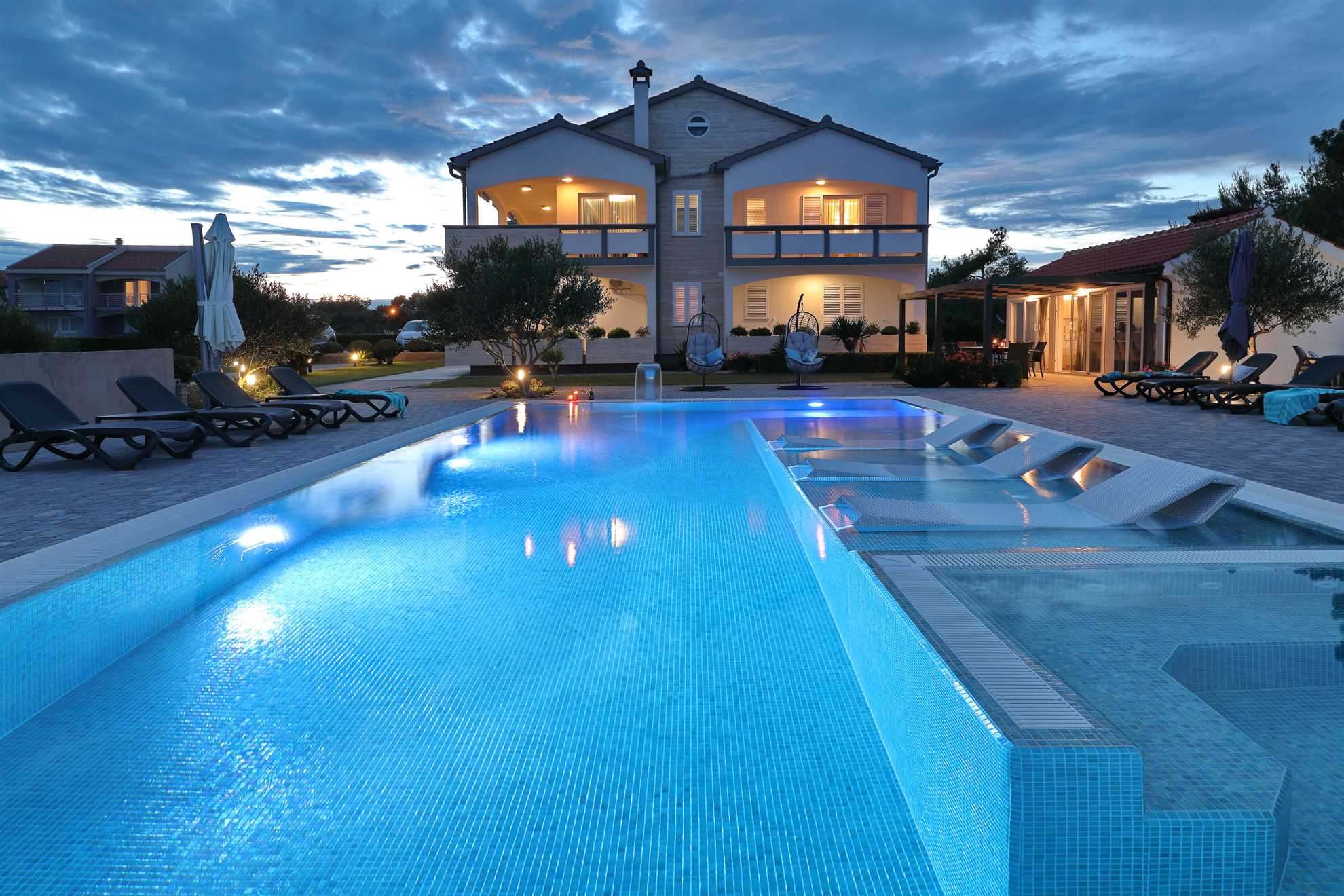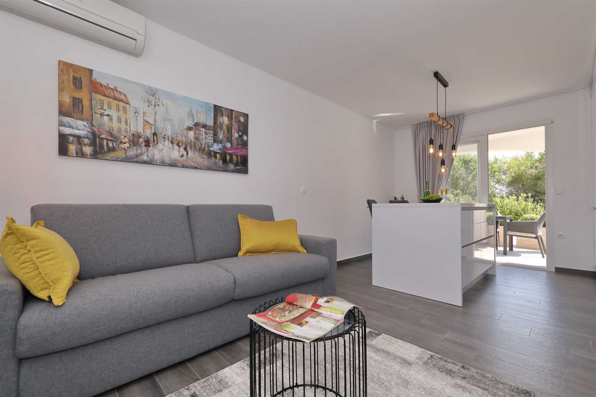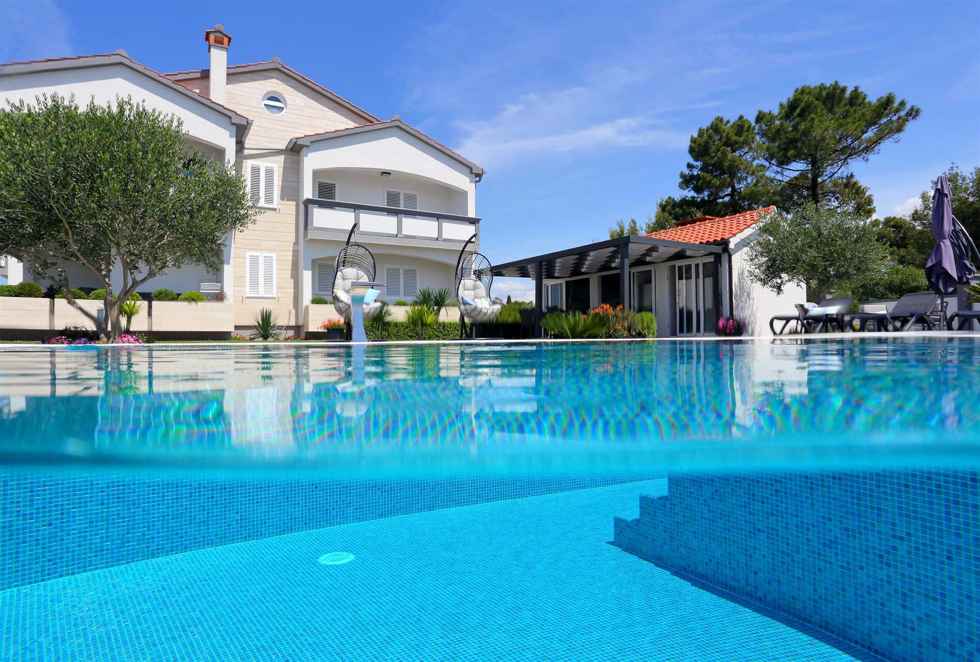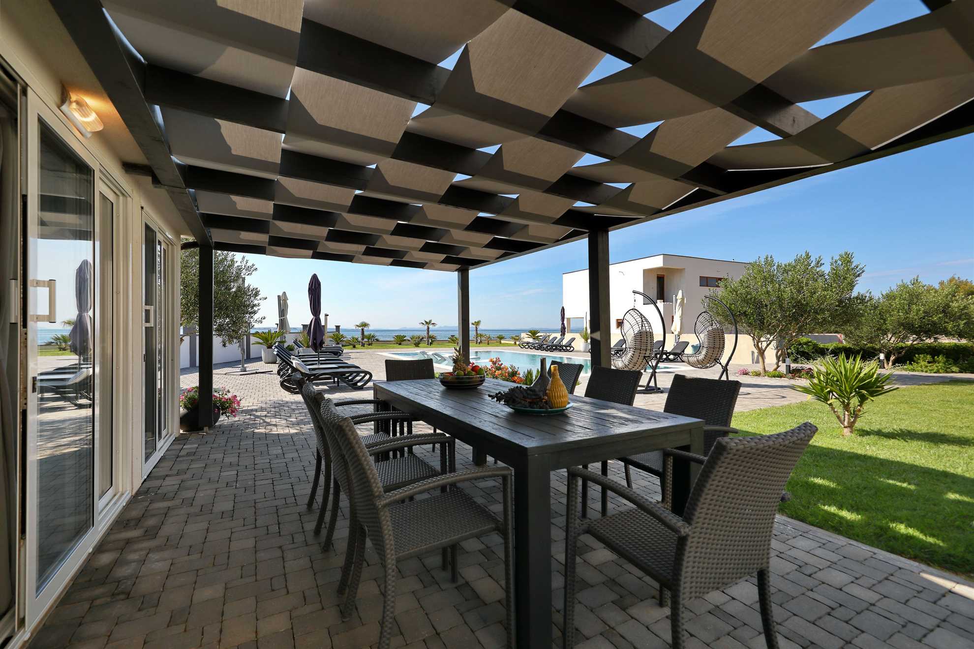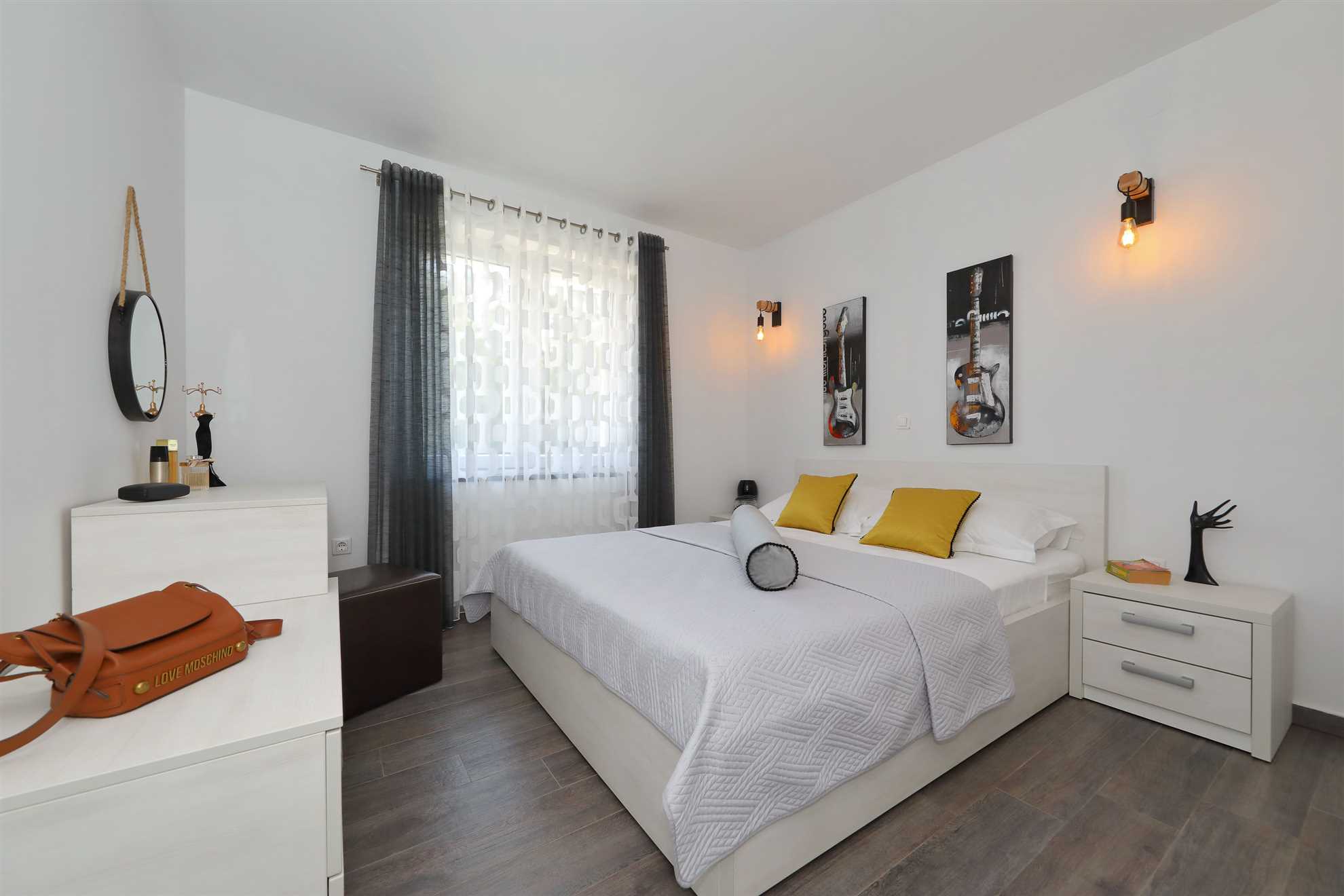 Unser modern eingerichtetes Apartment befindet sich in einer 4-Sterne-Villa direkt am Strand/an der Küste der Insel Vir. Es verfügt über einen 75 m² großen Infinity-Pool mit Whirlpool-Ecke und einen herrlichen Blick auf das Meer, die Bucht und die umliegenden Inseln. Das Apartment ist modern eingerichtet, luftig und hell. Es besteht aus einer Küche, einem Wohnzimmer, einem Schlafzimmer, einem Badezimmer und einer Terrasse. Die Küche ist komplett ausgestattet (Töpfe, Pfannen, Geschirr, Besteck, Mikrowelle, Toaster, Wasserkocher, Kaffeemaschine, Kühlschrank). Gegenüber der Küche befindet sich der Essbereich mit einem Tisch und Stühlen für vier Personen. Küche und Essbereich öffnen sich zum Wohnzimmer mit einem ausziehbaren Schlafsofa, einem Schaukelstuhl, einem Flachbildfernseher mit Satellitenempfang und einer Klimaanlage. Das Schlafzimmer ist mit einem Doppelbett, Nachttischen und einem Einbauschrank ausgestattet. Direkt neben dem Schlafzimmer befindet sich das Badezimmer mit Dusche. Die Terrasse ist durch die Küche zugänglich und mit einem Tisch und Stühlen möbliert. Den Gästen steht die Umgebung des Hauses zur Verfügung, darunter der Garten/Grillhaus (mit Küchenzeile), der Infinity-Pool mit Whirlpool-Ecke und Liegestühlen, ein Parkplatz und eine Garage. In der Garage können die Gäste unter anderem Motorräder, Fahrräder und aufblasbare Wassersportgeräte (Matratzen, Boote usw.) unterstellen. Die Gäste haben ihre Privatsphäre, aber einer von uns steht ihnen jederzeit zur Verfügung, falls sie etwas benötigen. In der Nähe befinden sich zahlreiche Parks und Orte mit unberührter Natur. Nationalparks mit reicher Flora und Fauna sowie Flüsse mit kristallklarem Wasser, wie zum Beispiel der Fluss Zrmanja, der sich ideal zum Rafting eignet, liegen etwa 15 km vom Haus entfernt. Das spektakuläre Velebit-Gebirge, geschützt durch den Nationalpark „Paklenica“ (ca. 60 km), bietet wunderschöne Wander-, Jogging- und Radwege (über 200 km lang) sowie zahlreiche Möglichkeiten zum Klettern und Bungee-Jumping. Dieses relativ kleine Gebiet weist eine Fülle geomorphologischer Phänomene und Formen auf, wie zum Beispiel „Manita peć“ und „Cerovačke pećine“. Sie können auch „in die Fußstapfen“ des Films „Winnetou“ treten, der in Paklenica gedreht wurde. Auf der anderen Seite sind die 89 Karstinseln, Inselchen und Riffe des Nationalparks Kornati, oft als „nautisches Paradies“ bezeichnet, mit einer eintägigen Bootsfahrt von Zadar aus zu erreichen. Die nächste Bushaltestelle befindet sich 1 km entfernt, neben der Inselkirche oder auf dem Platz neben dem Restaurant „Viranka“. Die Buslinie verbindet die Insel mit der nächstgrößeren Stadt, Zadar. Die Linie verkehrt etwa stündlich. Die Insel verfügt auch über einen eigenen Taxiservice. Es gibt auch organisierte Bootsausflüge vom Inselzentrum aus (Buchung im Touristeninformationsbüro). Das Haus liegt in einer ruhigen Gegend am Rande des Stadtzentrums. Das Zentrum ist zu Fuß erreichbar (ca. 5 Minuten) und alles ist ganz in der Nähe, jedoch ohne den üblichen Trubel einer geschäftigen Innenstadt. Der nächste Lebensmittelladen ist ca. 1 km entfernt. Das nächste Restaurant befindet sich im Umkreis von 800 Metern. Der Strand liegt direkt vor dem Haus.