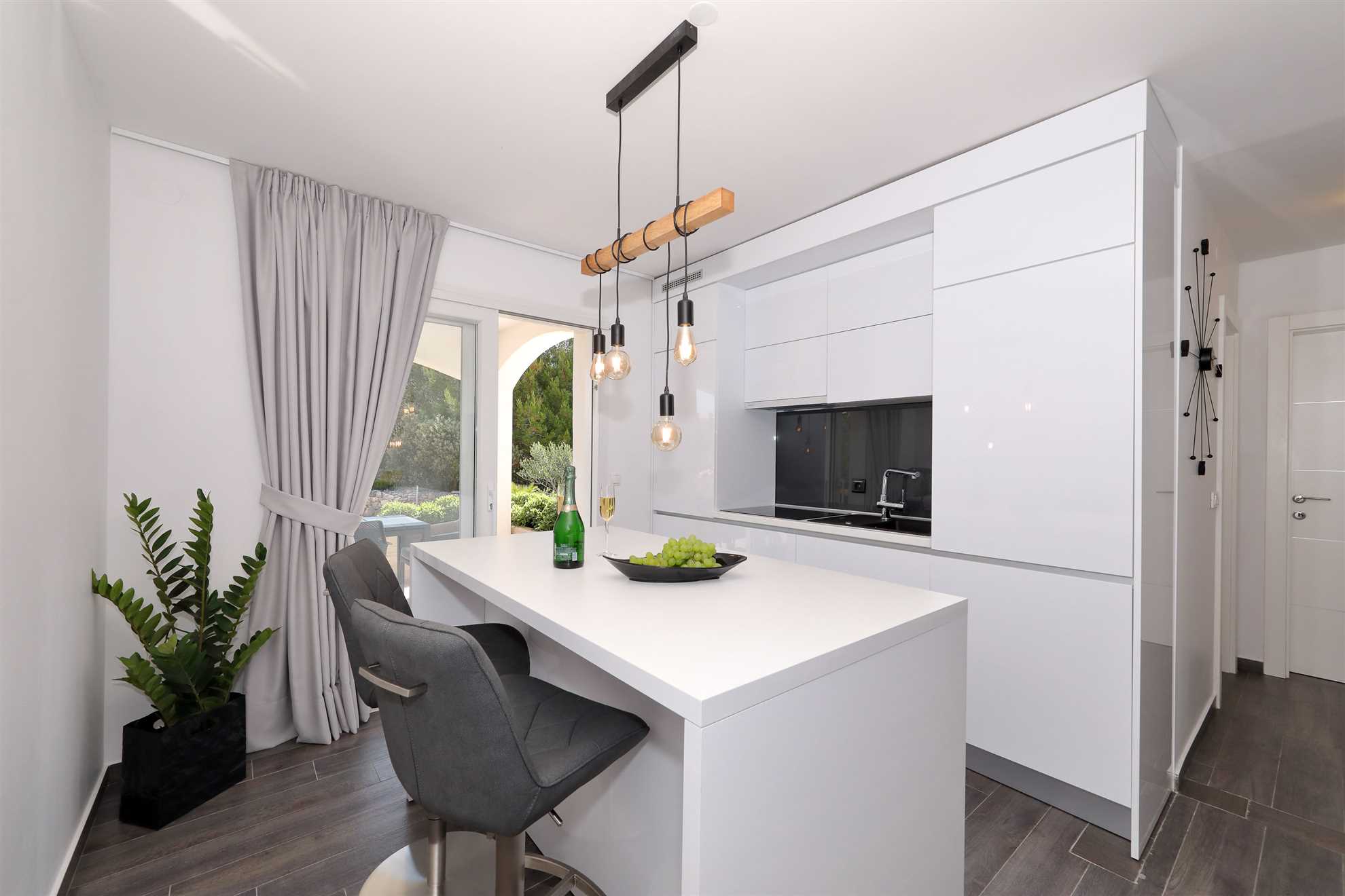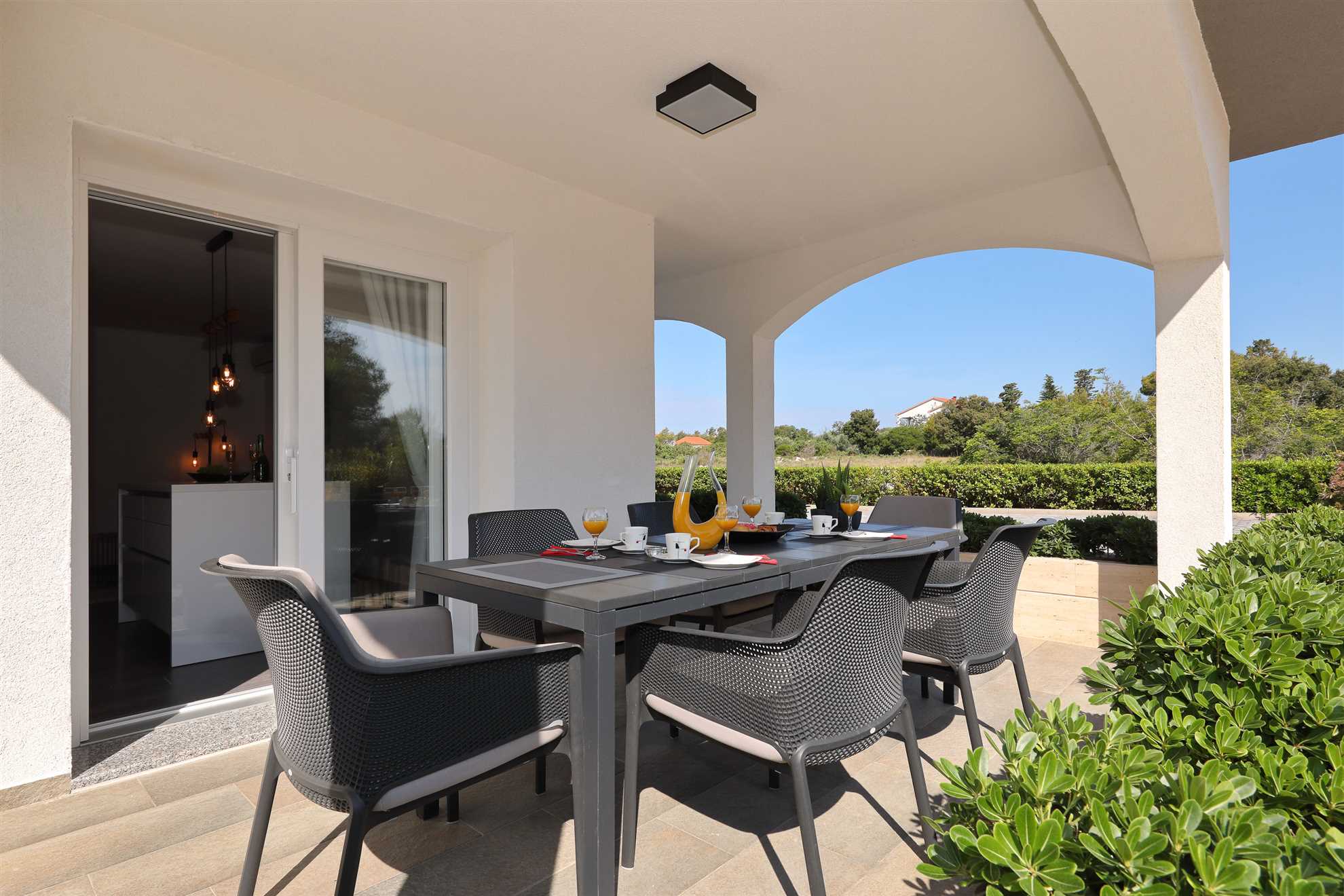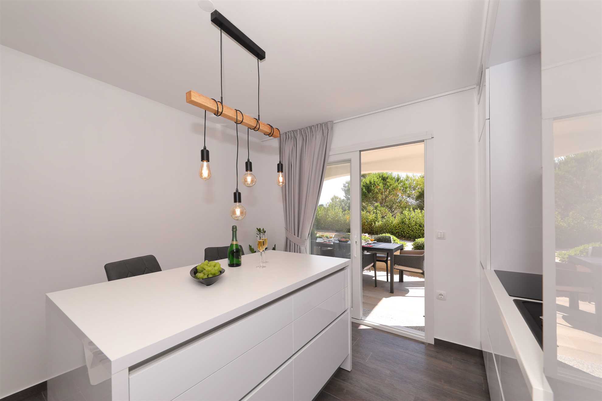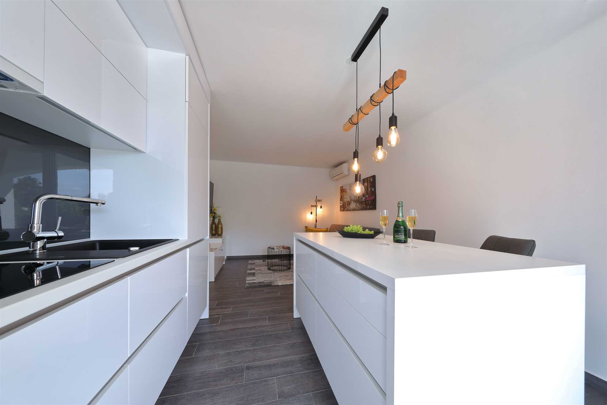 Unser modern eingerichtetes Apartment befindet sich in einer 4-Sterne-Villa direkt am Strand/an der Küste der Insel Vir. Es verfügt über einen 75 m² großen Infinity-Pool mit Whirlpool-Ecke und einen herrlichen Blick auf das Meer, die Bucht und die umliegenden Inseln. Das Apartment ist modern eingerichtet, luftig und hell. Es besteht aus einer Küche, einem Wohnzimmer, einem Schlafzimmer, einem Badezimmer und einer Terrasse. Die Küche ist komplett ausgestattet (Töpfe, Pfannen, Geschirr, Besteck, Mikrowelle, Toaster, Wasserkocher, Kaffeemaschine, Kühlschrank). Gegenüber der Küche befindet sich der Essbereich mit einem Tisch und Stühlen für vier Personen. Küche und Essbereich öffnen sich zum Wohnzimmer mit einem ausziehbaren Schlafsofa, einem Schaukelstuhl, einem Flachbildfernseher mit Satellitenempfang und einer Klimaanlage. Das Schlafzimmer ist mit einem Doppelbett, Nachttischen und einem Einbauschrank ausgestattet. Direkt neben dem Schlafzimmer befindet sich das Badezimmer mit Dusche. Die Terrasse ist durch die Küche zugänglich und mit einem Tisch und Stühlen möbliert. Den Gästen steht die Umgebung des Hauses zur Verfügung, darunter der Garten/Grillhaus (mit Küchenzeile), der Infinity-Pool mit Whirlpool-Ecke und Liegestühlen, ein Parkplatz und eine Garage. In der Garage können die Gäste unter anderem Motorräder, Fahrräder und aufblasbare Wassersportgeräte (Matratzen, Boote usw.) unterstellen. Die Gäste haben ihre Privatsphäre, aber einer von uns steht ihnen jederzeit zur Verfügung, falls sie etwas benötigen. In der Nähe befinden sich zahlreiche Parks und Orte mit unberührter Natur. Nationalparks mit reicher Flora und Fauna sowie Flüsse mit kristallklarem Wasser, wie zum Beispiel der Fluss Zrmanja, der sich ideal zum Rafting eignet, liegen etwa 15 km vom Haus entfernt. Das spektakuläre Velebit-Gebirge, geschützt durch den Nationalpark „Paklenica“ (ca. 60 km), bietet wunderschöne Wander-, Jogging- und Radwege (über 200 km lang) sowie zahlreiche Möglichkeiten zum Klettern und Bungee-Jumping. Dieses relativ kleine Gebiet weist eine Fülle geomorphologischer Phänomene und Formen auf, wie zum Beispiel „Manita peć“ und „Cerovačke pećine“. Sie können auch „in die Fußstapfen“ des Films „Winnetou“ treten, der in Paklenica gedreht wurde. Auf der anderen Seite sind die 89 Karstinseln, Inselchen und Riffe des Nationalparks Kornati, oft als „nautisches Paradies“ bezeichnet, mit einer eintägigen Bootsfahrt von Zadar aus zu erreichen. Die nächste Bushaltestelle befindet sich 1 km entfernt, neben der Inselkirche oder auf dem Platz neben dem Restaurant „Viranka“. Die Buslinie verbindet die Insel mit der nächstgrößeren Stadt, Zadar. Die Linie verkehrt etwa stündlich. Die Insel verfügt auch über einen eigenen Taxiservice. Es gibt auch organisierte Bootsausflüge vom Inselzentrum aus (Buchung im Touristeninformationsbüro). Das Haus liegt in einer ruhigen Gegend am Rande des Stadtzentrums. Das Zentrum ist zu Fuß erreichbar (ca. 5 Minuten) und alles ist ganz in der Nähe, jedoch ohne den üblichen Trubel einer geschäftigen Innenstadt. Der nächste Lebensmittelladen ist ca. 1 km entfernt. Das nächste Restaurant befindet sich im Umkreis von 800 Metern. Der Strand liegt direkt vor dem Haus.