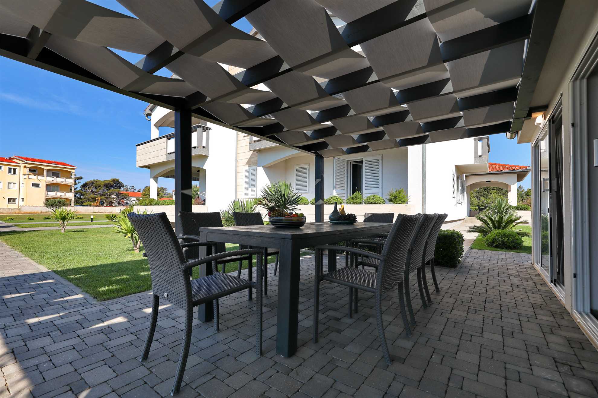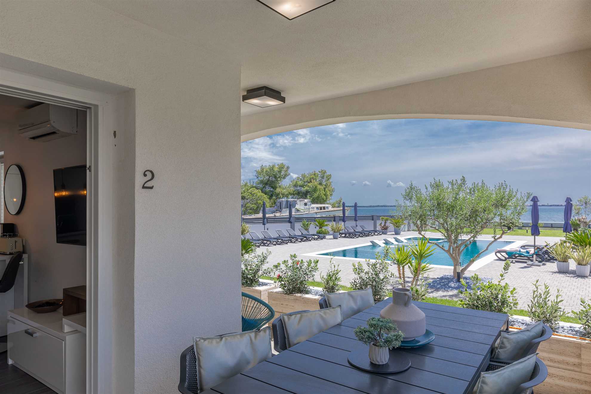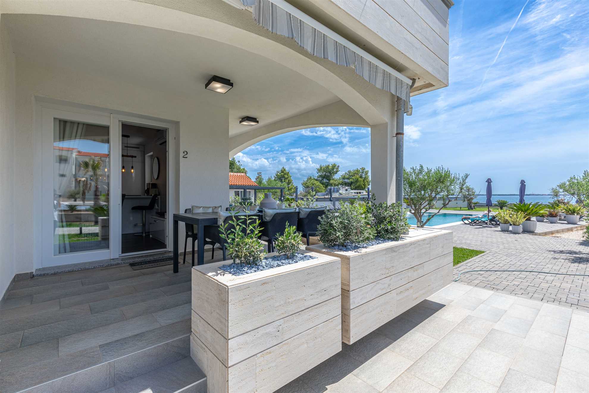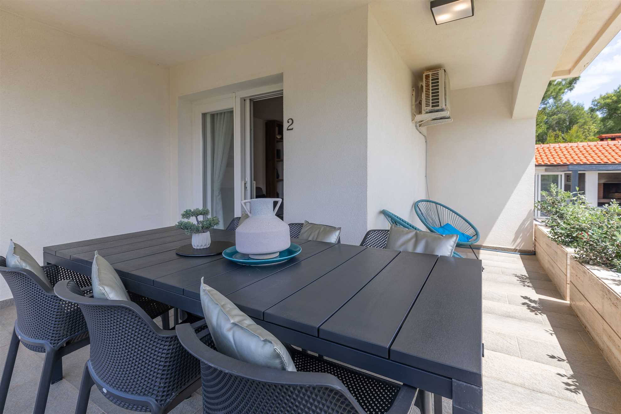 Die Ferienwohnung Suva Punta, No 2 bietet auf 60 m² Platz für maximal 6 Personen und befindet sich im Haus Villa Suva Punta. Die Unterkunft verfügt über 2 Schlafzimmer und 1 Badezimmer.Die Ausstattung umfasst Internet/WLAN, eine Waschmaschine, einen Geschirrspüler, eine Mikrowelle, einen Whirlpool, eine Klimaanlage, eine Kaffeemaschine (Filter), einen Parkplatz, eine Küchenzeile, eine Fahrradabstellmöglichkeit und einen Garten zur Mitnutzung. Eine Grillmöglichkeit ist ebenfalls ... Am besten geeignet für 1 Person. Bietet Platz für maximal 6 Personen. Größe: 60 m² Die Gäste haben eigenen Zugang ins Apartment. Wärend dem Aufenthalt stehen wir den Gästen gerne mit Rat und Tat zu Verfügung falls gewünscht. zum Strand: 0.01km zur Badestelle/Gewässer: 0.01km zum Zentrum: 0.5km zum Wanderweg: 0.2km zum Bäcker: 0.3km zum Supermarkt: 0.3km zum Restaurant: 0.3km Die Ferienunterkunft befindet sich in einer ruhigen und zentralen Lage und ist somit der ideale Ort für einen erholsamen Urlaub. In nur ca. 5 Metern Entfernung erwartet Sie der traumhafte Strand, der zu ausgiebigen Sonnenbädern und erfrischenden Schwimmeinheiten einlädt. Auch der Strand-Zugang befindet sich direkt vor der Tür, sodass Sie sich jederzeit an den glitzernden Meereswellen erfreuen können.Für den täglichen Bedarf liegt eine Einkaufsmöglichkeit nur ca. 300 Meter entfernt, somit können Sie bequem Ihre Einkäufe erledigen. Auch verschiedene Restaurants, die leckere lokale Spezialitäten anbieten, sind in nur ca. 300 Metern zu erreichen. Die Ortsmitte ist ebenfalls nur ca. 500 Meter entfernt, hier können Sie das bunte Treiben der Stadt hautnah erleben.Die Ferienunterkunft bietet für verschiedene Gruppen die perfekte Unterkunft. Familien mit Kindern, Geschäftsreisende, Motorradfahrer, Radfahrer, Reisegruppen, Senioren, Strand- und Badeurlauber, sowie Urlauber mit Interesse an Reiten, Wandern/Walking und Wassersport sind hier herzlich Willkommen. Für alle, die gerne schwimmen möchten, steht ein Pool zur Verfügung.Insgesamt bietet die Umgebung der Ferienunterkunft also eine ideale Mischung aus Entspannung und Aktivitäten. Nutzen Sie die ruhige Lage und genießen Sie die Nähe zum Strand und zur Ortsmitte, um Ihre Ferien unvergesslich zu machen. zum Flughafen: 40.0km ... vorhanden. Von der Wohnung aus kann ein Meerblick genossen werden und sie ist besonders geeignet für Radfahrer. Ein Balkon bietet Platz zum Entspannen und die Unterkunft ist für Nichtraucher geeignet. Ein Panoramablick kann ebenfalls genossen werden. In der Sommersaison steht ein Pool im Freien zur Verfügung. Eine Terrasse, mit direktem Zugang zum Meer, bietet weiteren Komfort. Zusätzlich gibt es eine Waschtrockner-Kombination und eine offene Wohnküche. Zur Unterhaltung steht ein Flachbild-TV zur Verfügung und auch Familien sind herzlich willkommen.Die Ferienwohnung befindet sich in einer Entfernung von ca. 300 m zu Einkaufsmöglichkeiten, ca. 5 m zum Strand, ca. 500 m zur Ortsmitte und ca. 300 m zu einem Restaurant. Bitte beachten Sie, dass keine weiteren Merkmale hinzugefügt werden dürfen. Folgende Sprachen werden gesprochen: kroatisch, tschechisch, englisch, deutsch, slowakisch