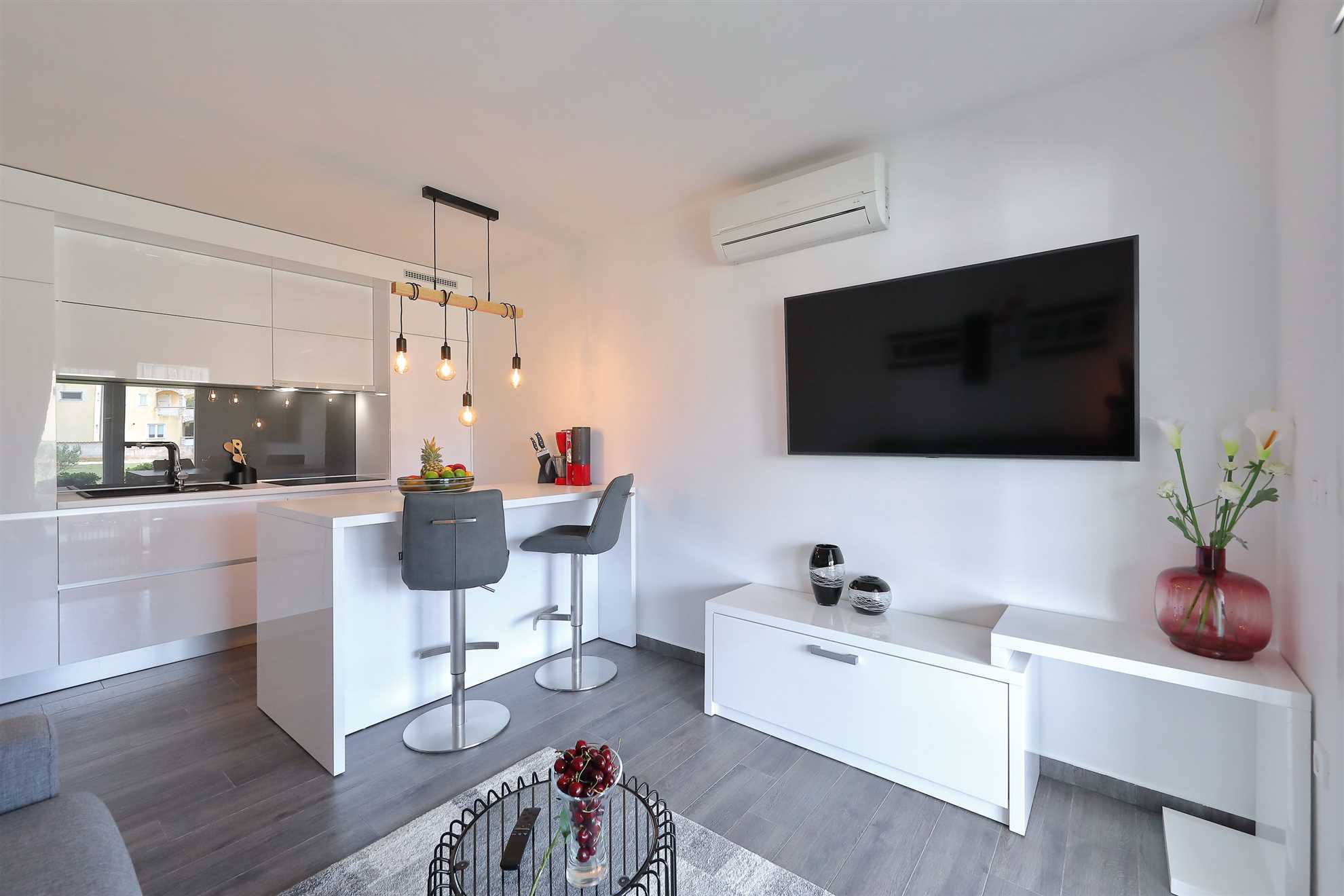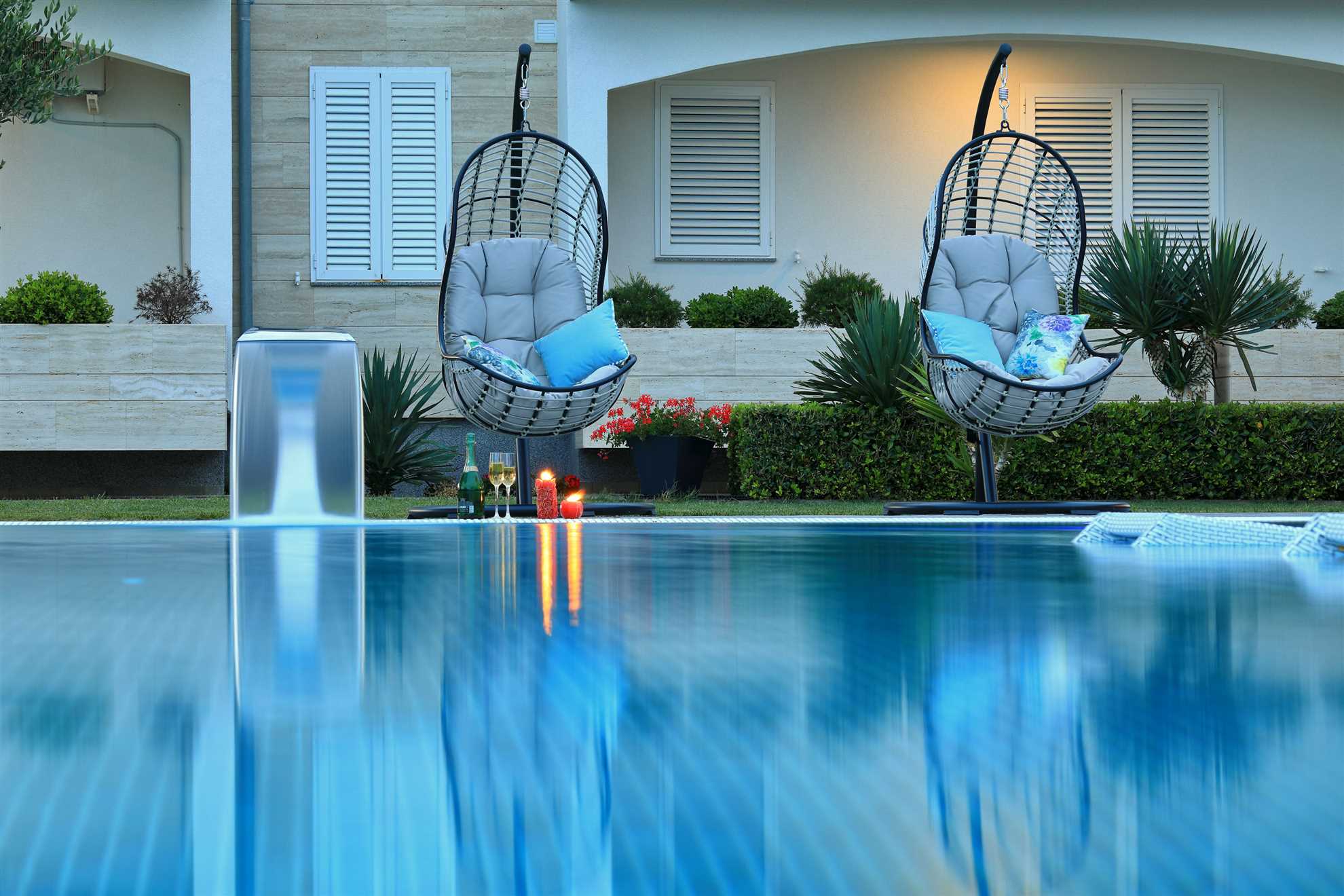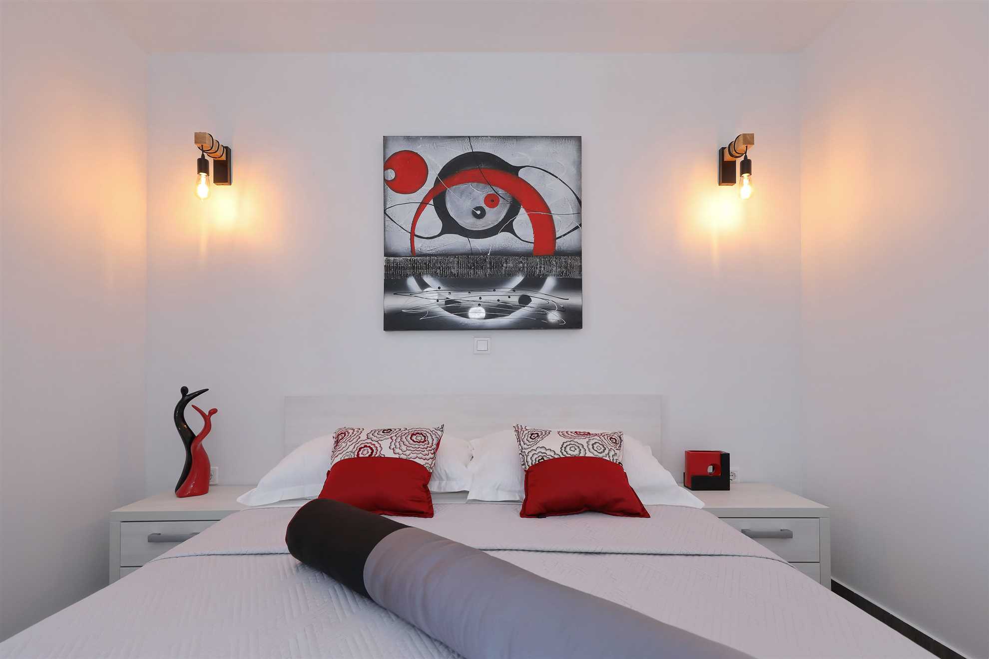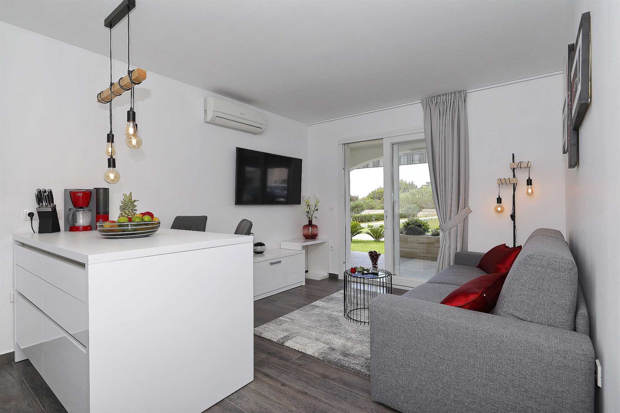 Suva Punta auf der Insel Vir in Norddalmatien, bietet Ihnen ein 40 qm Großes modernes Apartment mit großem Pool (60 qm) und einer möblierten Terrasse (15 qm) zum Entspannen.Das lichtdurchflutete und klimatisierte Apartment mit modernem Duschbad, bietet ein Doppelbett Schlafzimmer, einen offenen Wohnraum mit komfortablen Sofa welches nach Bedarf zu zwei weiteren Schlafplätzen umfunktioniert werden kann. Die moderne Küche mit Essplatz, bietet alle Annehmlichkeiten die ... Am besten geeignet für 1 Person. Bietet Platz für maximal 4 Personen. Größe: 50 m² Sie haben das gesammte Apartment für sich mit eigenem Eingang ins Apartment. Wir lassen den Gästen ihren Freiraum sind jedoch immer erreichbar. zum Strand: 0.01km zur Badestelle/Gewässer: 0.01km zum Zentrum: 0.5km zum Wanderweg: 0.2km zum Bäcker: 0.3km zum Supermarkt: 0.3km zum Restaurant: 0.3km Die Umgebung unserer Ferienunterkunft bietet zahlreiche Möglichkeiten für einen abwechslungsreichen Aufenthalt. Einkaufsmöglichkeiten sind in nur ca. 300 m Entfernung zu finden, somit können Sie bequem zu Fuß Ihre Besorgungen erledigen. Der Strand ist sogar nur ca. 5 m entfernt und lädt zu entspannten Spaziergängen oder ausgiebigen Sonnenbädern ein.Auch die Ortsmitte ist in ca. 500 m Entfernung schnell zu erreichen. Hier finden Sie weitere Geschäfte und Restaurants, die zum Bummeln und Schlemmen einladen. Wenn Sie nicht weit laufen möchten, können Sie auch unser hauseigenes Restaurant in nur ca. 300 m Entfernung besuchen.Unsere Unterkunft ist für verschiedene Zielgruppen geeignet. Familien mit Kindern, Geschäftsreisende, Motorradfahrer, Radfahrer, Reisegruppen, Reiter, Senioren und Sportbegeisterte finden bei uns die passende Unterkunft. Die direkte Strandlage bietet sich besonders für einen erholsamen Strand- und Badeurlaub an. Aber auch für Aktivitäten wie Wandern, Walking, Wassersport oder einfach nur entspanntes Spielen am Strand ist unsere Unterkunft ideal.Die Lage unserer Unterkunft ist ebenso von Vorteil. Sie befindet sich direkt am Strand-Zugang und bietet somit einen unmittelbaren Zugang zum Meer. Zudem ist es hier ruhig und trotzdem zentral gelegen. Somit können Sie die Vorzüge der Strandnähe genießen, ohne auf eine zentrale Lage zu verzichten. Bei uns erwartet Sie ein erholsamer und abwechslungsreicher Urlaub in einer attraktiven Umgebung. zum Flughafen: 40.0km ... benötigt werden. Vom Wohnraum aus gelangen Sie auf die Terrasse mit Meerblick, auf der es sich noch schöner speisen lässt.Entspannen Sie am Pool auf den Sonnenliegen, oder aber nutzen Sie das Grillhäuschen um tolle Grillabende im Beisammensein zu verbringen. Dort steht ein großer gemauerter Grill mit gemütlichen Sitzmöglichkeiten für Sie bereit.Kostenloses W-LAN und genügend Parkplätze sind vorhanden.Auf dem 2000 qm großen Grundstück verbringen Sie Ihren Urlaub in ruhiger Lage, aber dennoch Zentral.Haustiere sind nicht gestattet. Suva Punta auf der Insel Vir in Norddalmatien, bietet Ihnen ein 40 qm Großes modernes Apartment mit großem Pool (60 qm) und einer möblierten Terrasse (15 qm) zum Entspannen.Das lichtdurchflutete und klimatisierte Apartment mit modernem Duschbad, bietet ein Doppelbett Schlafzimmer, einen offenen Wohnraum mit komfortablen Sofa welches nach Bedarf zu zwei weiteren Schlafplätzen umfunktioniert werden kann. Die moderne Küche mit Essplatz, bietet alle Annehmlichkeiten die benötigt werden. Vom Wohnraum aus gelangen Sie auf die Terrasse mit Meerblick, auf der es sich noch schöner speisen lässt.Entspannen Sie am Pool auf den Sonnenliegen, oder aber nutzen Sie das Grillhäuschen um tolle Grillabende im Beisammensein zu verbringen. Dort steht ein großer gemauerter Grill mit gemütlichen Sitzmöglichkeiten für Sie bereit.Kostenloses W-LAN und genügend Parkplätze sind vorhanden.Auf dem 2000 qm großen Grundstück verbringen Sie Ihren Urlaub in ruhiger Lage, aber dennoch Zentral.Haustiere sind nicht gestattet. Folgende Sprachen werden gesprochen: kroatisch, tschechisch, englisch, deutsch, slowakisch