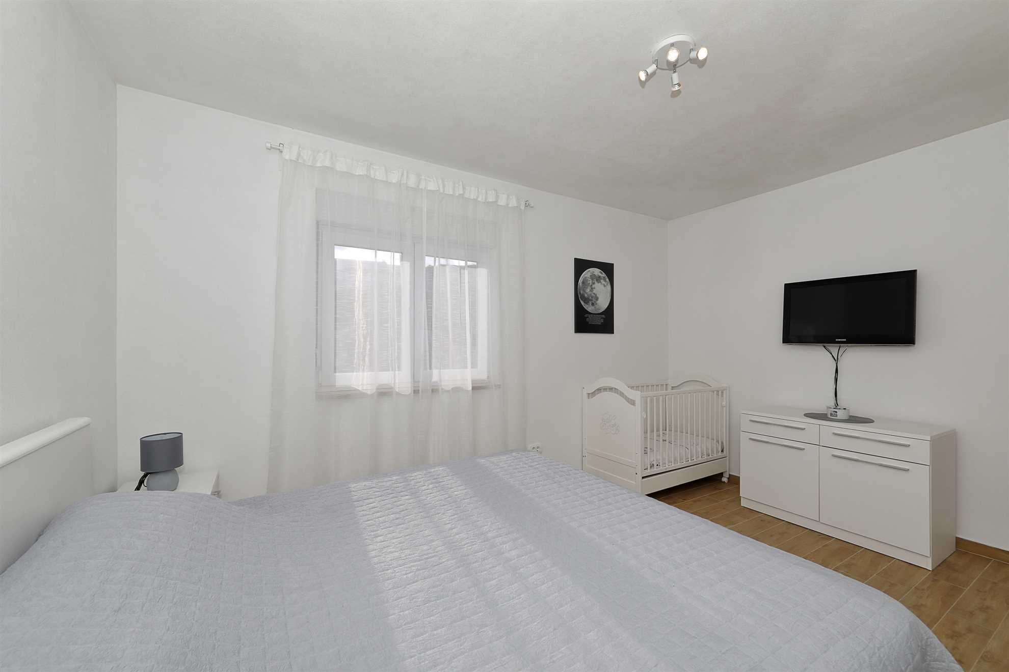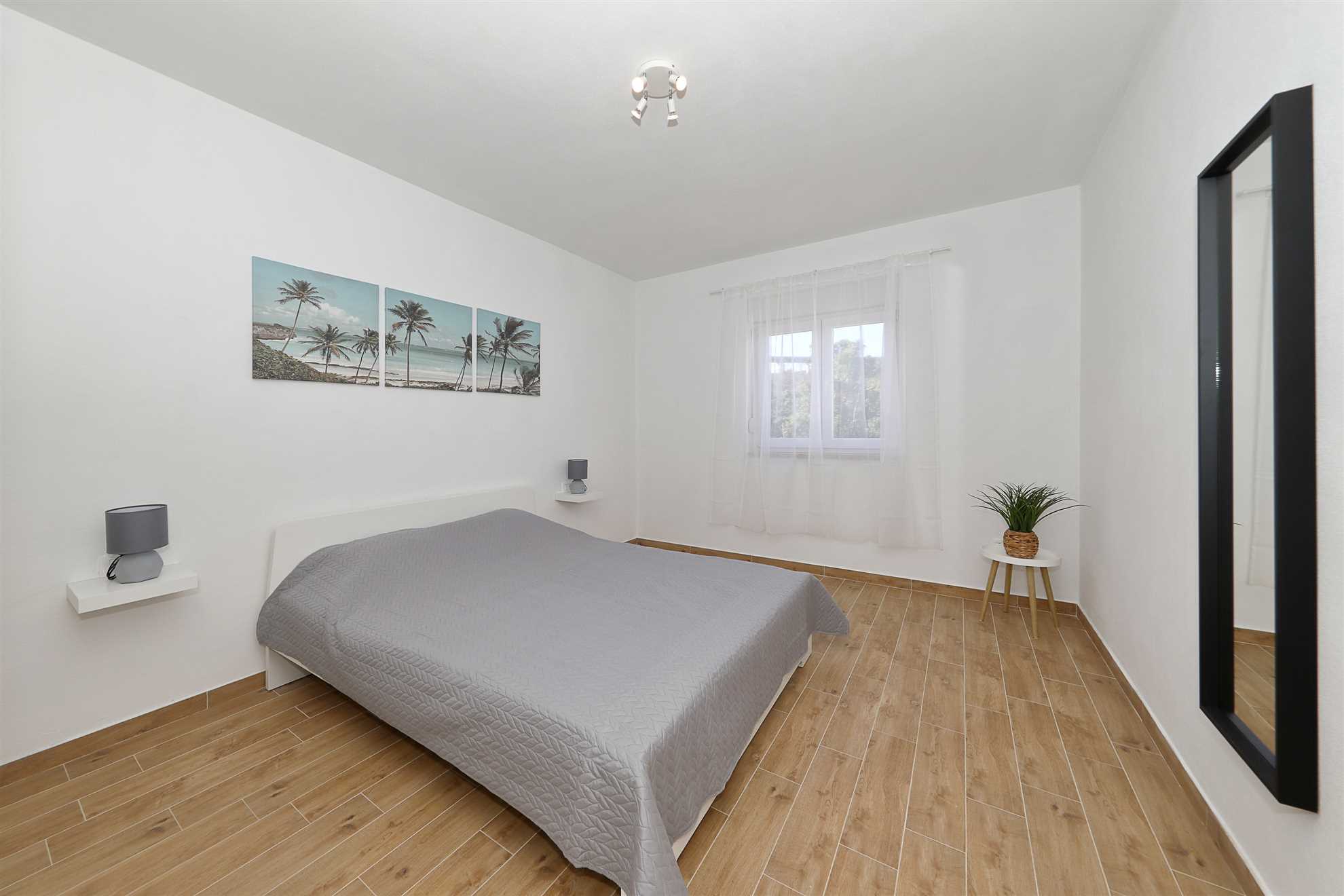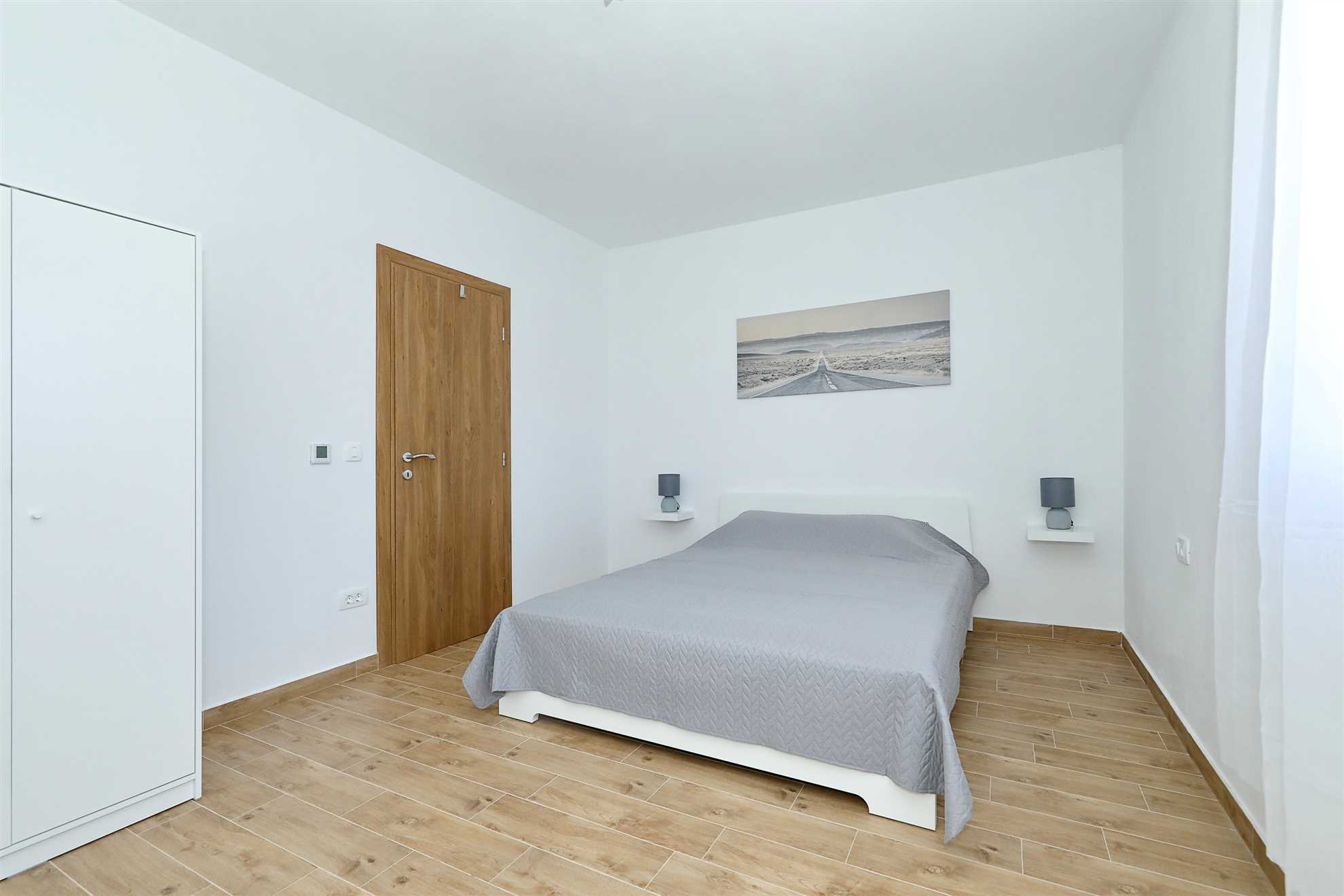 Die Ferienwohnung Temida in Rovanjska bietet auf insgesamt 148 m² Platz für bis zu 8 Personen. Sie befindet sich in der 1. Etage und verfügt über 3 Schlafzimmer und 2 Badezimmer. Zur Ausstattung gehören unter anderem eine Waschmaschine, Geschirrspüler, Mikrowelle und Klimaanlage. Auch eine Kaffeemaschine (Filter) ist vorhanden.Für Autos gibt es einen Parkplatz und Fahrräder können in einer separaten Abstellmöglichkeit untergebracht werden. Der Garten steht den Gästen zur Nutzung ... Am besten geeignet für 1 Person. Bietet Platz für maximal 8 Personen. Größe: 148 m² zum Strand: 0.6km zur Badestelle/Gewässer: 0.6km zum Wanderweg: 0.02km zum Bäcker: 0.7km zum Supermarkt: 0.7km zum Radweg: 0.02km zum Restaurant: 0.6km Die Umgebung unserer Ferienunterkunft bietet Ihnen eine ruhige Lage, ideal für einen entspannten Urlaub. Die Einkaufsmöglichkeiten sind ca. 700 m entfernt, so dass Sie alle wichtigen Besorgungen schnell erledigen können. Auch der Strand ist nur ca. 250 m entfernt und lädt zu erholsamen Spaziergängen oder sonnigen Tagen am Meer ein.Für Familien mit Kindern ist unsere Unterkunft besonders geeignet, da es in der Umgebung viele Aktivitäten gibt, die speziell auf die Bedürfnisse von Kindern abgestimmt sind. Auch Angler und Jäger kommen hier auf ihre Kosten, da es zahlreiche Möglichkeiten für diese Freizeitbeschäftigungen gibt.Wenn Sie einen Landurlaub bevorzugen, werden Sie von der Lage unserer Unterkunft begeistert sein. Die Umgebung ist geprägt von idyllischen Landschaften und bietet Ihnen die Möglichkeit, die Natur bei ausgedehnten Wanderungen oder Radtouren zu erkunden. Auch für Motorradfahrer ist unsere Unterkunft perfekt geeignet, da es in der Nähe viele schöne Strecken gibt, die erkundet werden können.Naturbegeisterte werden den nahegelegenen Nationalpark zu schätzen wissen, der nur wenige Kilometer von unserer Unterkunft entfernt ist. Hier können Sie die einzigartige Flora und Fauna hautnah erleben. Auch für Reisegruppen ist unsere Ferienunterkunft eine gute Wahl, da es in der Umgebung viele verschiedene Freizeitaktivitäten gibt, die für jeden Geschmack etwas bieten.Für Senioren ist die ruhige Lage unserer Unterkunft ideal, um einen erholsamen Urlaub zu verbringen. Sie können sich in der Natur erholen oder an einem der nahegelegenen Strände entspannen. Auch für Strand- und Badeurlauber ist unsere Unterkunft perfekt geeignet, da der Strand nur ca. 250 m entfernt ist und somit schnell zu erreichen ist.Für Wander- und Walkingbegeisterte bietet die Umgebung viele Möglichkeiten, um aktiv zu sein und die schöne Landschaft zu genießen. Egal welche Aktivitäten Sie bevorzugen, in der ruhigen und strandnahen Lage unserer Ferienunterkunft werden Sie sich sicherlich wohlfühlen. zum Flughafen: 20.0km ... zur Verfügung und es besteht die Möglichkeit zum Grillen. Von der Unterkunft aus genießt man einen schönen Meerblick und auch die Berge sind zu sehen.Die Ferienwohnung ist besonders geeignet für Radfahrer und verfügt über einen Balkon sowie einen Blick auf die Berge. Rauchen ist in der Unterkunft nicht gestattet. Ein Panoramablick lässt sich von hier aus ebenfalls genießen. Die offene Wohnküche ist ideal für gemeinsame Mahlzeiten und die Unterkunft ist auch für Familien geeignet.Der Check-in erfolgt eigenständig und es steht ein Smart-TV zur Verfügung. Einkaufsmöglichkeiten befinden sich in ca. 700 m Entfernung, der Strand ist ca. 250 m entfernt und ein Restaurant ist in ca. 600 m zu erreichen. Die Ferienwohnung Temida ist somit perfekt für einen erholsamen Urlaub in Rovanjska geeignet. Folgende Sprachen werden gesprochen: kroatisch, tschechisch, englisch, deutsch, slowakisch