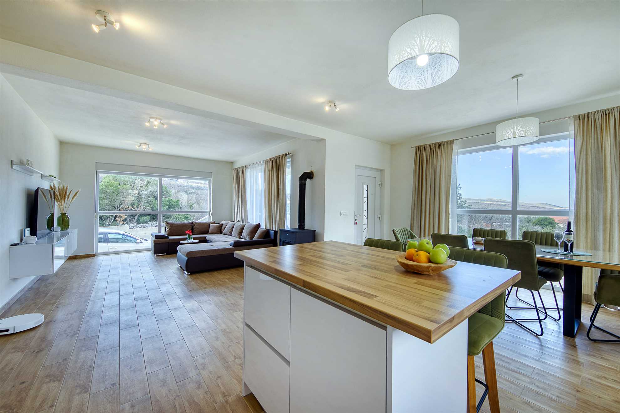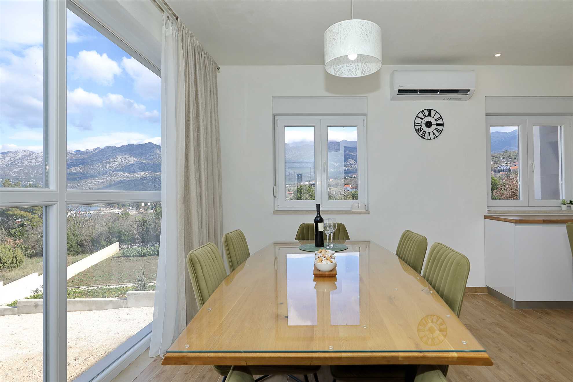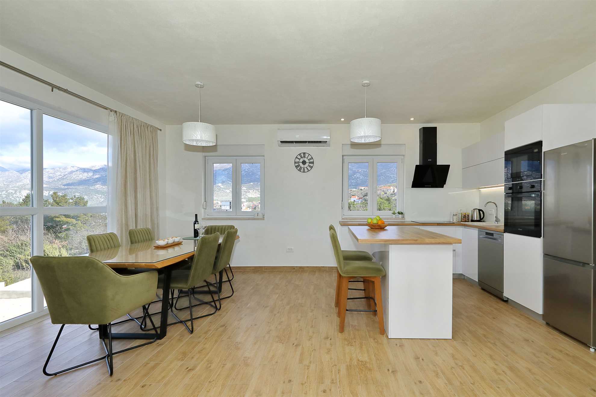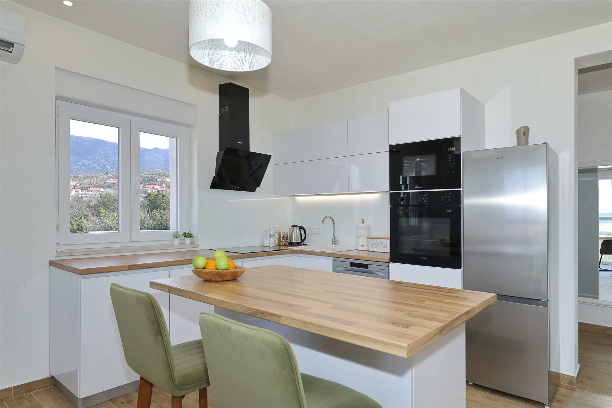 Die Ferienwohnung Temida in Rovanjska bietet auf insgesamt 148 m² Platz für bis zu 8 Personen. Sie befindet sich in der 1. Etage und verfügt über 3 Schlafzimmer und 2 Badezimmer. Zur Ausstattung gehören unter anderem eine Waschmaschine, Geschirrspüler, Mikrowelle und Klimaanlage. Auch eine Kaffeemaschine (Filter) ist vorhanden.Für Autos gibt es einen Parkplatz und Fahrräder können in einer separaten Abstellmöglichkeit untergebracht werden. Der Garten steht den Gästen zur Nutzung ... Am besten geeignet für 1 Person. Bietet Platz für maximal 8 Personen. Größe: 148 m² zum Strand: 0.6km zur Badestelle/Gewässer: 0.6km zum Wanderweg: 0.02km zum Bäcker: 0.7km zum Supermarkt: 0.7km zum Radweg: 0.02km zum Restaurant: 0.6km Die Umgebung unserer Ferienunterkunft bietet Ihnen eine ruhige Lage, ideal für einen entspannten Urlaub. Die Einkaufsmöglichkeiten sind ca. 700 m entfernt, so dass Sie alle wichtigen Besorgungen schnell erledigen können. Auch der Strand ist nur ca. 250 m entfernt und lädt zu erholsamen Spaziergängen oder sonnigen Tagen am Meer ein.Für Familien mit Kindern ist unsere Unterkunft besonders geeignet, da es in der Umgebung viele Aktivitäten gibt, die speziell auf die Bedürfnisse von Kindern abgestimmt sind. Auch Angler und Jäger kommen hier auf ihre Kosten, da es zahlreiche Möglichkeiten für diese Freizeitbeschäftigungen gibt.Wenn Sie einen Landurlaub bevorzugen, werden Sie von der Lage unserer Unterkunft begeistert sein. Die Umgebung ist geprägt von idyllischen Landschaften und bietet Ihnen die Möglichkeit, die Natur bei ausgedehnten Wanderungen oder Radtouren zu erkunden. Auch für Motorradfahrer ist unsere Unterkunft perfekt geeignet, da es in der Nähe viele schöne Strecken gibt, die erkundet werden können.Naturbegeisterte werden den nahegelegenen Nationalpark zu schätzen wissen, der nur wenige Kilometer von unserer Unterkunft entfernt ist. Hier können Sie die einzigartige Flora und Fauna hautnah erleben. Auch für Reisegruppen ist unsere Ferienunterkunft eine gute Wahl, da es in der Umgebung viele verschiedene Freizeitaktivitäten gibt, die für jeden Geschmack etwas bieten.Für Senioren ist die ruhige Lage unserer Unterkunft ideal, um einen erholsamen Urlaub zu verbringen. Sie können sich in der Natur erholen oder an einem der nahegelegenen Strände entspannen. Auch für Strand- und Badeurlauber ist unsere Unterkunft perfekt geeignet, da der Strand nur ca. 250 m entfernt ist und somit schnell zu erreichen ist.Für Wander- und Walkingbegeisterte bietet die Umgebung viele Möglichkeiten, um aktiv zu sein und die schöne Landschaft zu genießen. Egal welche Aktivitäten Sie bevorzugen, in der ruhigen und strandnahen Lage unserer Ferienunterkunft werden Sie sich sicherlich wohlfühlen. zum Flughafen: 20.0km ... zur Verfügung und es besteht die Möglichkeit zum Grillen. Von der Unterkunft aus genießt man einen schönen Meerblick und auch die Berge sind zu sehen.Die Ferienwohnung ist besonders geeignet für Radfahrer und verfügt über einen Balkon sowie einen Blick auf die Berge. Rauchen ist in der Unterkunft nicht gestattet. Ein Panoramablick lässt sich von hier aus ebenfalls genießen. Die offene Wohnküche ist ideal für gemeinsame Mahlzeiten und die Unterkunft ist auch für Familien geeignet.Der Check-in erfolgt eigenständig und es steht ein Smart-TV zur Verfügung. Einkaufsmöglichkeiten befinden sich in ca. 700 m Entfernung, der Strand ist ca. 250 m entfernt und ein Restaurant ist in ca. 600 m zu erreichen. Die Ferienwohnung Temida ist somit perfekt für einen erholsamen Urlaub in Rovanjska geeignet. Folgende Sprachen werden gesprochen: kroatisch, tschechisch, englisch, deutsch, slowakisch