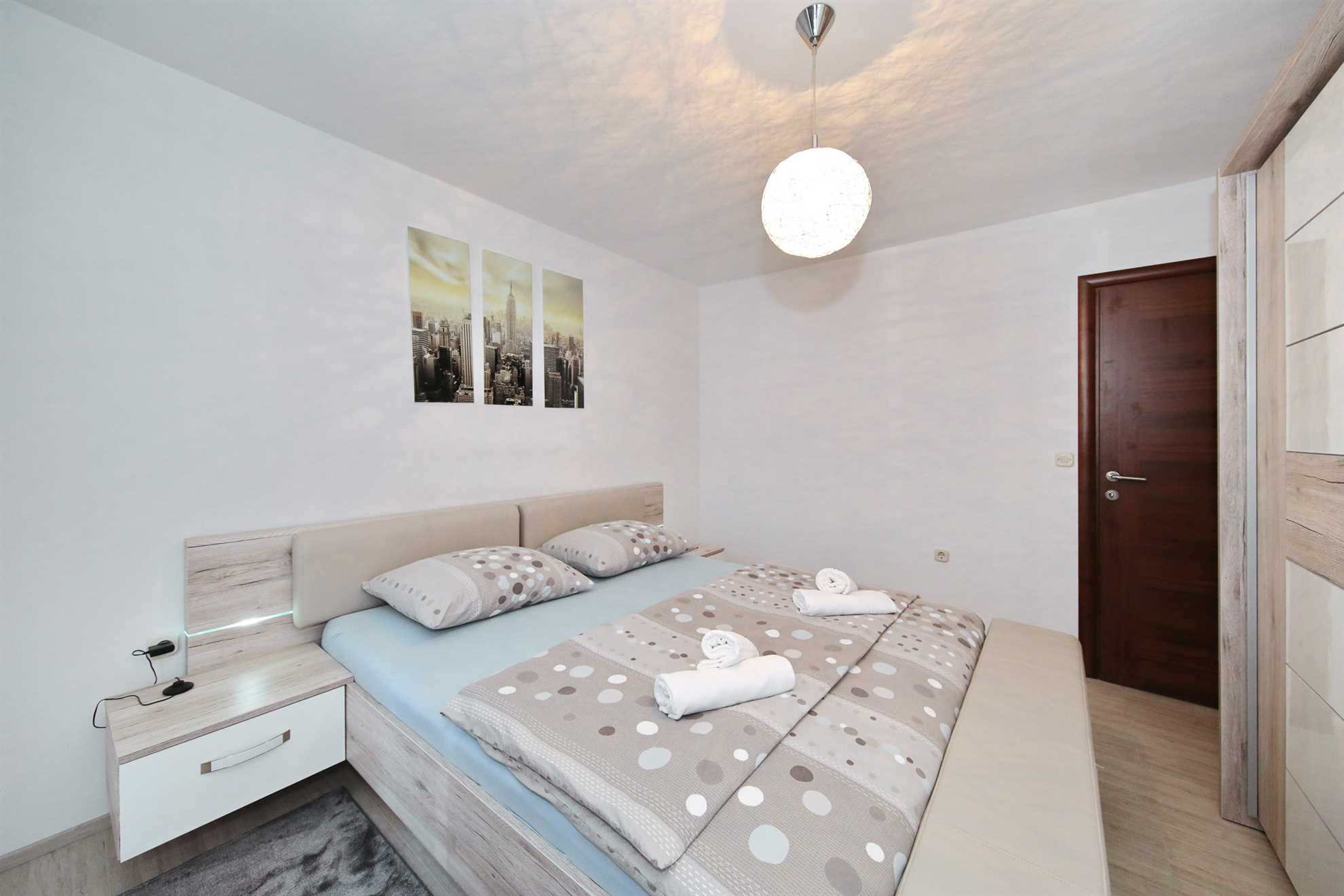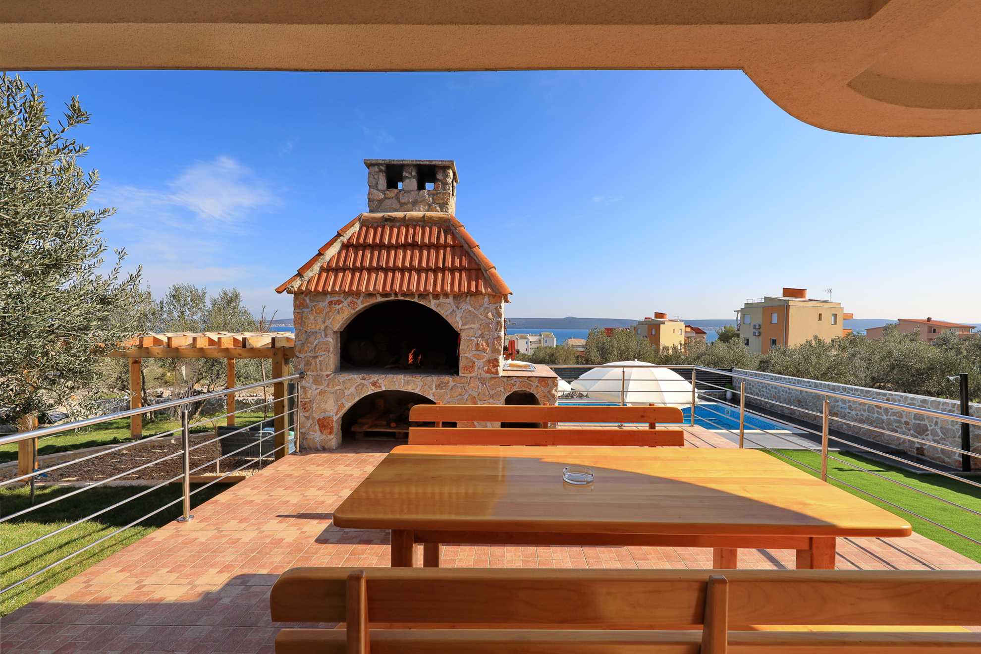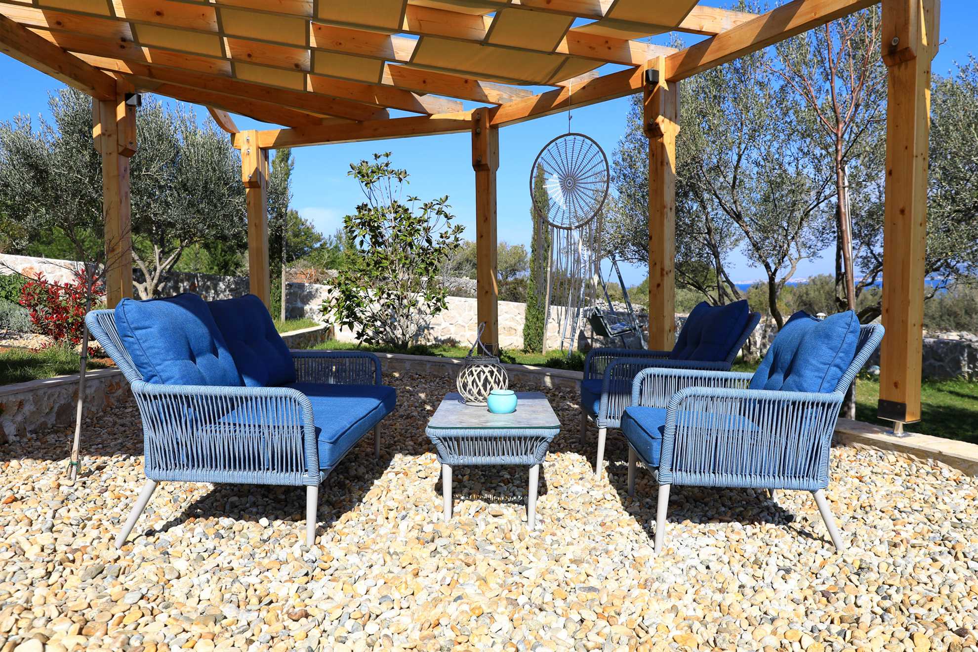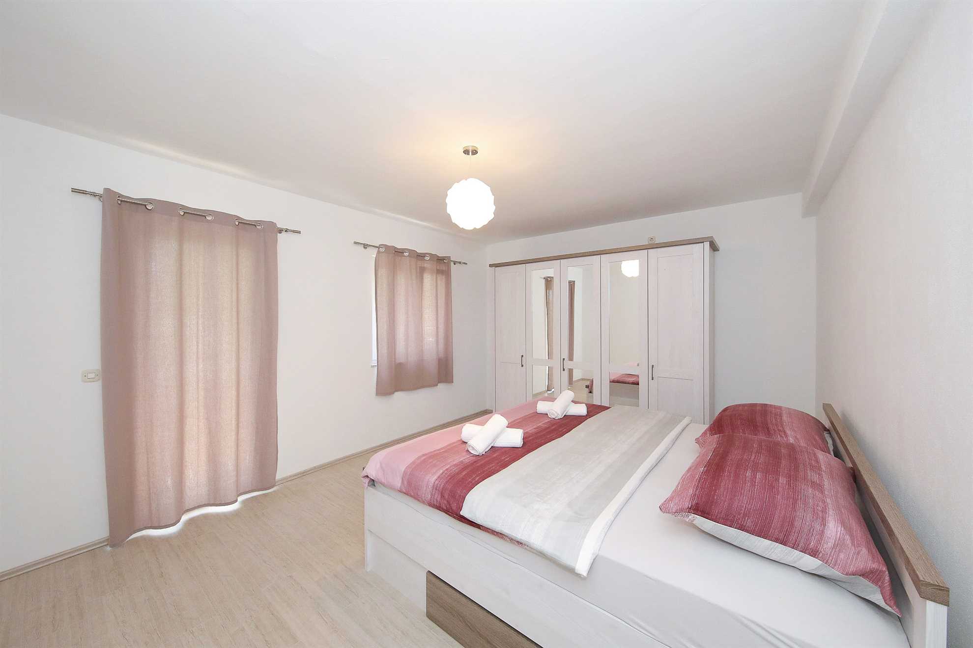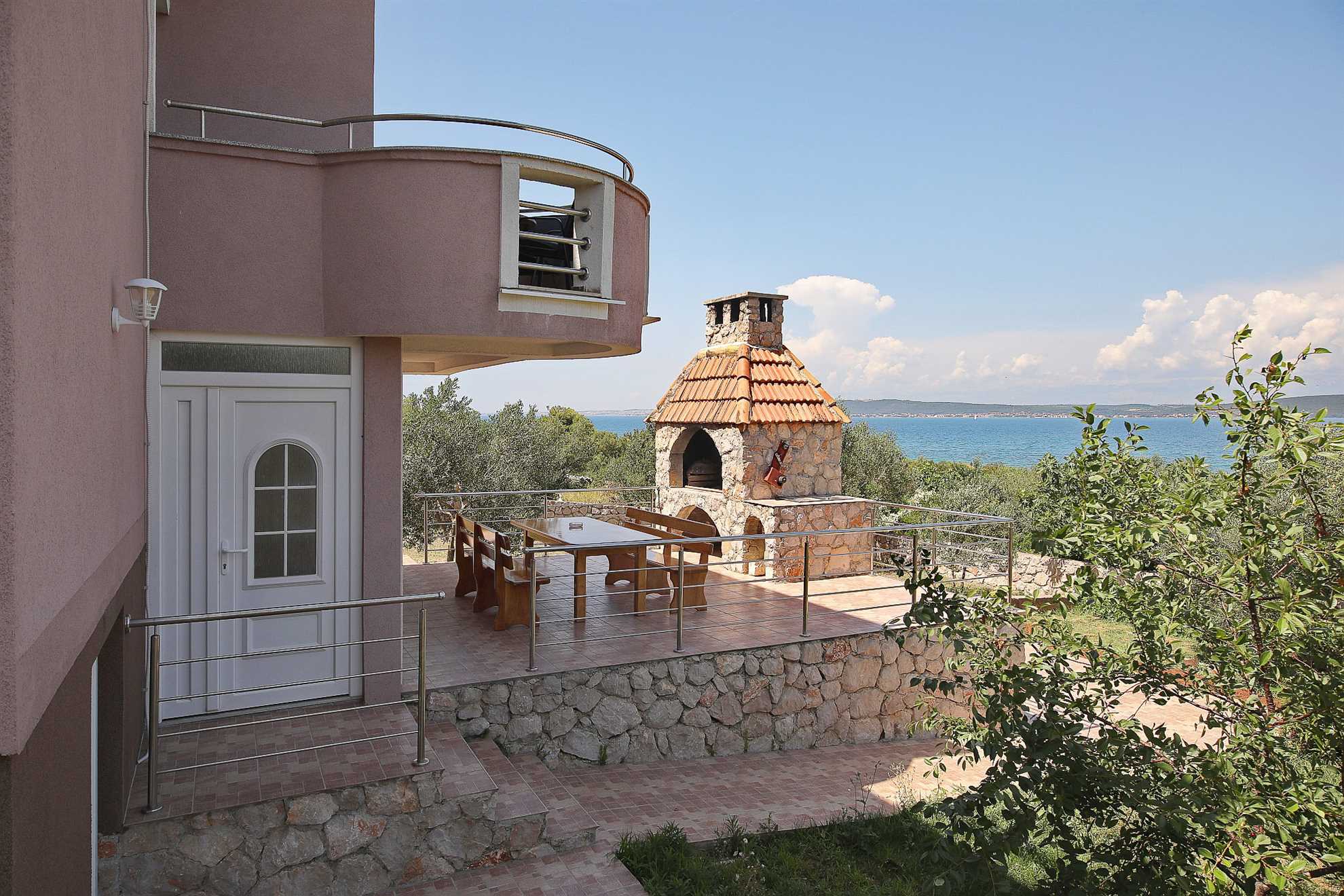 Apartment Luma is a spacious family apartment in Dobropoljana with a heated private pool, beautiful sea views and a quiet setting — ideal for guests who want to enjoy relaxing days together on Pašman. The property consists of two connected apartments rented exclusively as one large unit, offering plenty of space and privacy for groups of up to ten guests.Inside, you’ll find five bedrooms and three bathrooms — perfect for large families or several couples travelling together. The two living areas are bright and comfortable with direct access outdoors, and the well-equipped kitchens make shared meals easy: full-size fridge-freezer, oven, induction hob, dishwasher, coffee machine and ample tableware. Air conditioning and fast Wi-Fi ensure comfort throughout, while mosquito screens and blackout options support restful sleep. A baby cot and high chair are available.The private outdoor area includes everything needed for long summer days: heated pool with six sun loungers, spacious covered lounge area, stone barbecue, table tennis, trampoline and a well-kept garden. An outdoor shower provides refreshment after swimming, and dogs are welcome — up to two pets may stay. The nearest swimming spot is around 300 metres away, while the main beach is about 800 metres from the house.Dobropoljana is a peaceful village with authentic Dalmatian charm. A restaurant is about 850 metres away, a small supermarket around 900 metres, and with the island ferry, Zadar is an easy day trip. Pašman offers gentle bays, walking routes and a calm, family-friendly atmosphere.