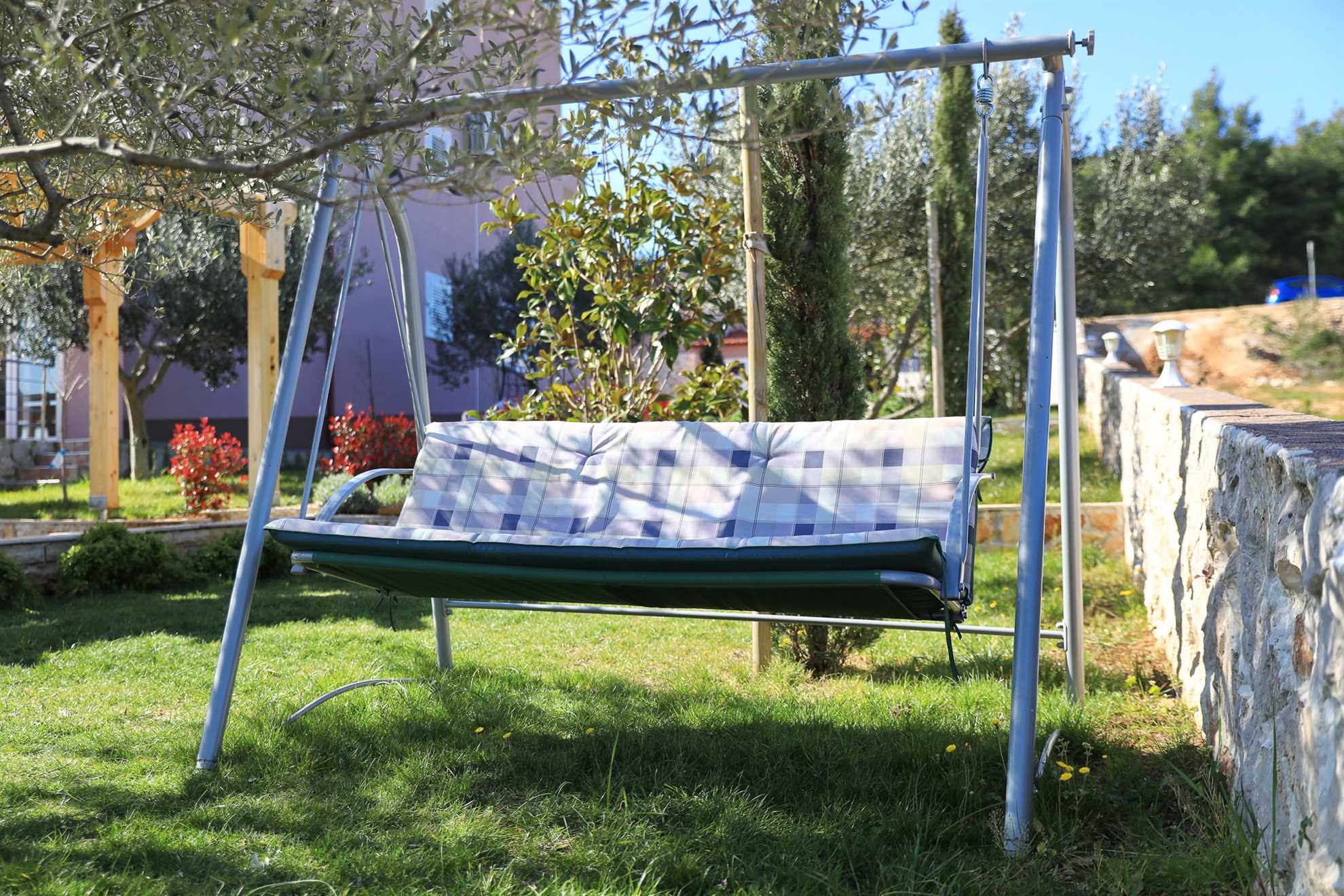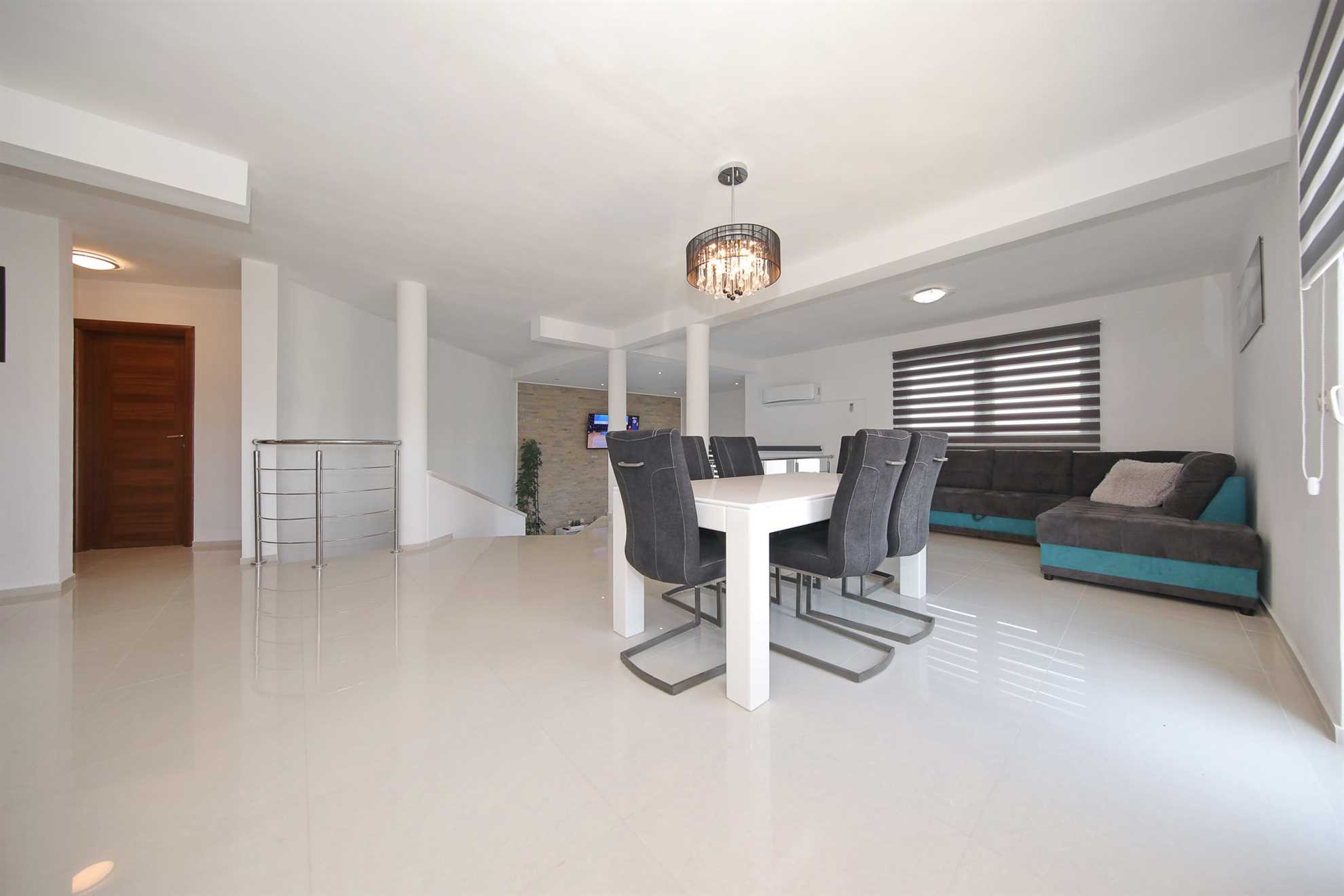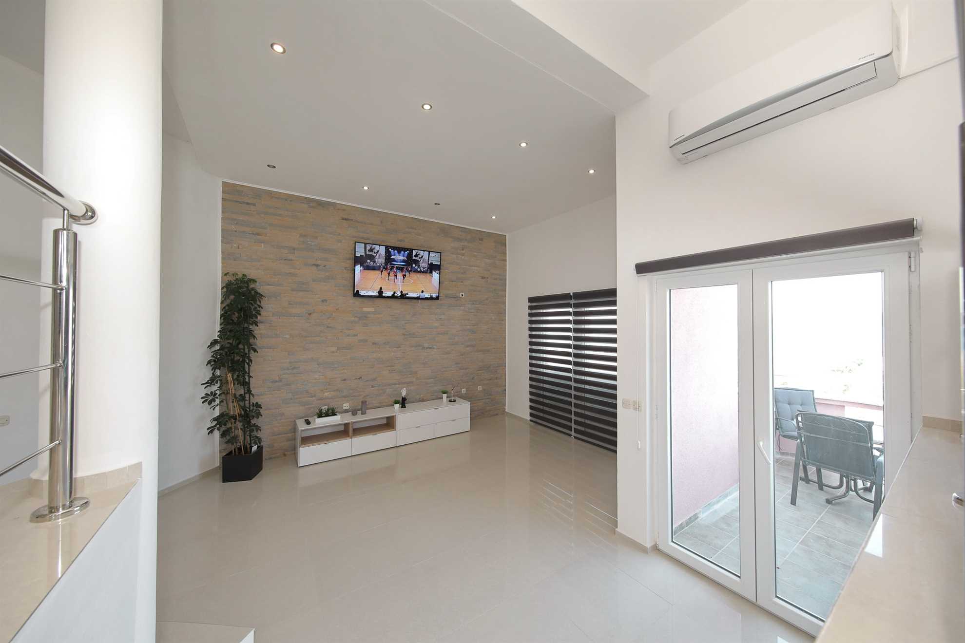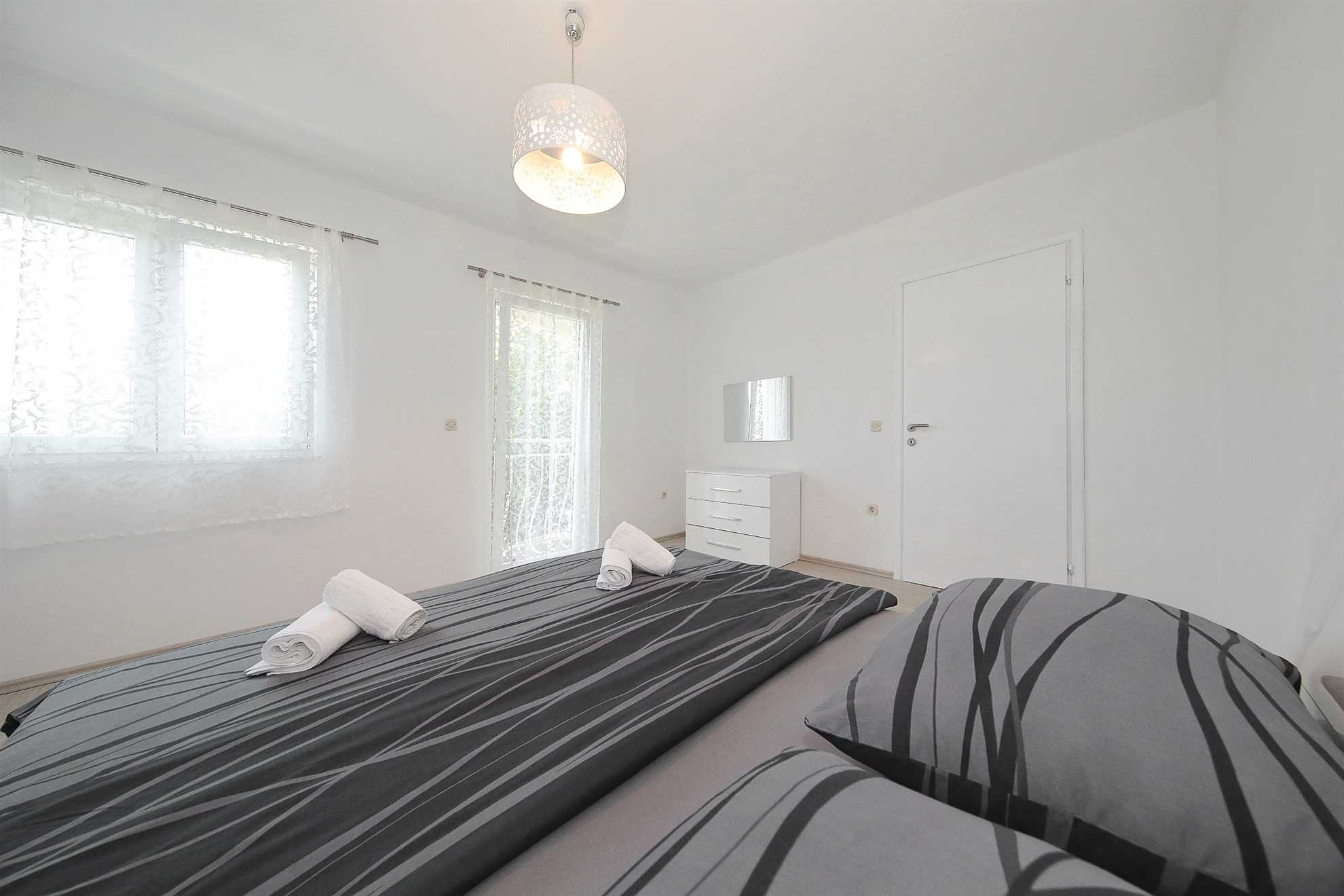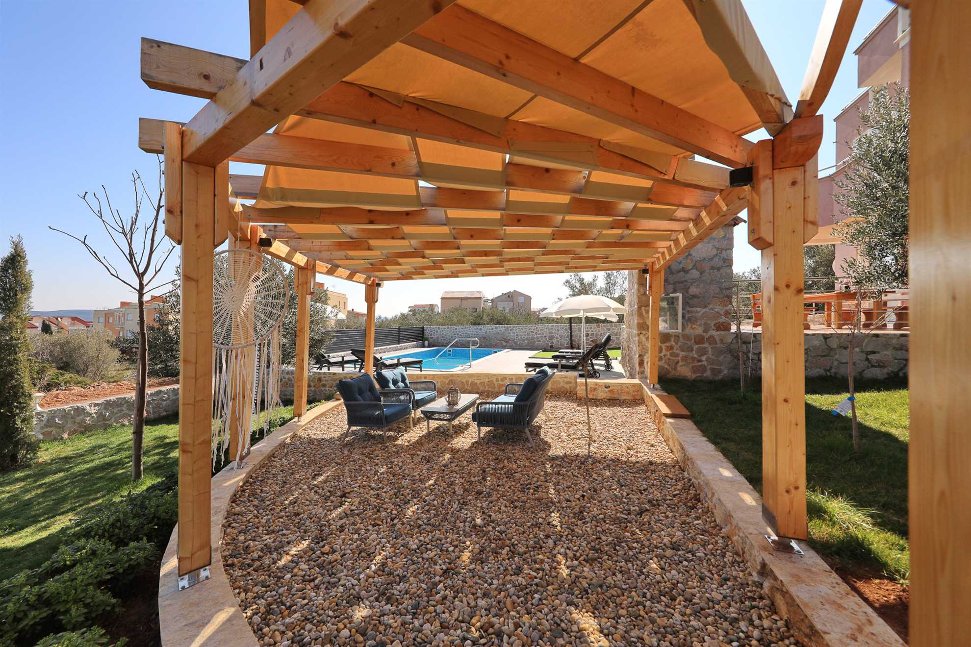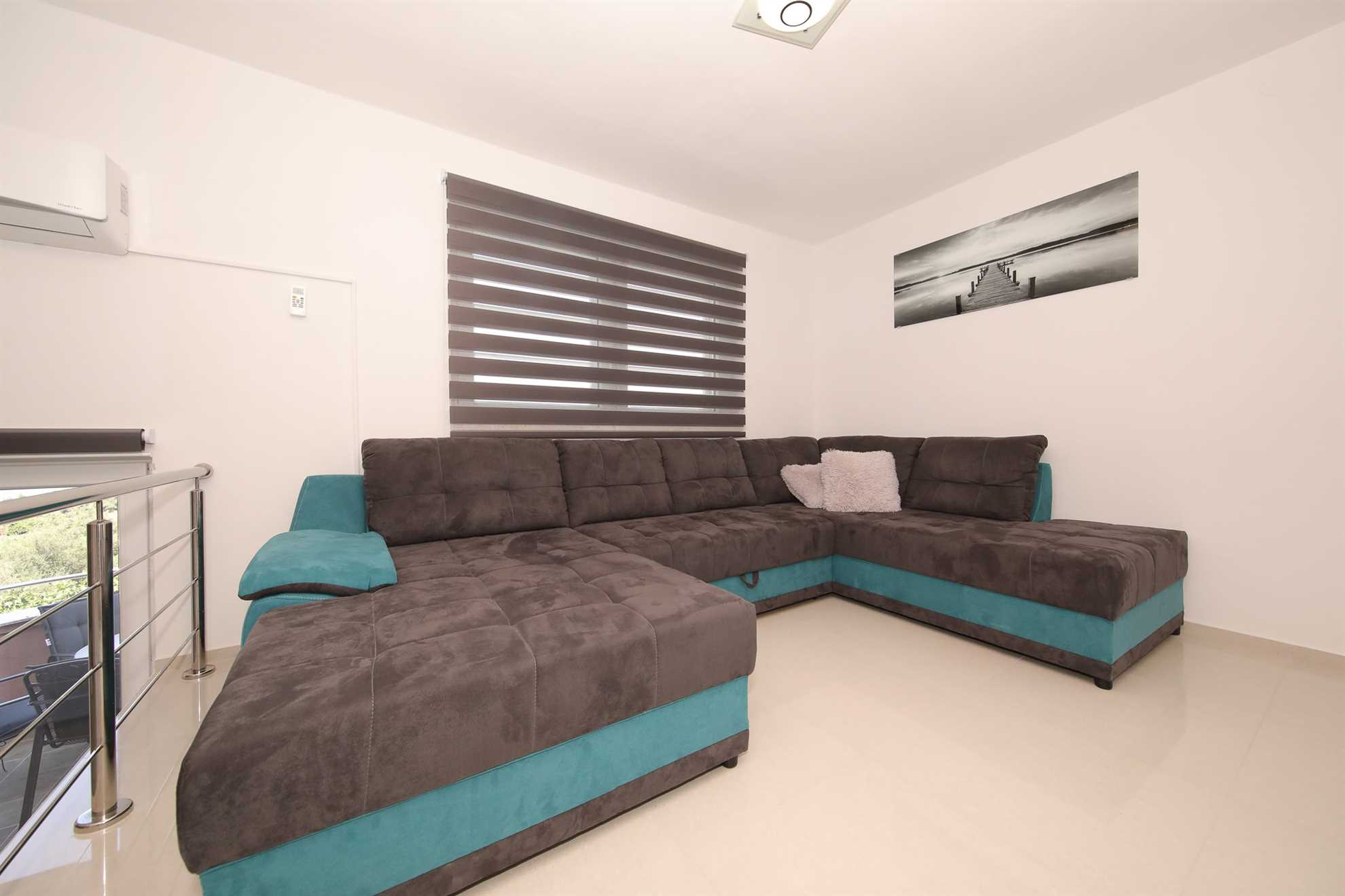Apartment Luma is a spacious family apartment in Dobropoljana with a heated private pool, beautiful sea views and a quiet setting — ideal for guests who want to enjoy relaxing days together on Pašman. The property consists of two connected apartments rented exclusively as one large unit, offering plenty of space and privacy for groups of up to ten guests.Inside, you’ll find five bedrooms and three bathrooms — perfect for large families or several couples travelling together. The two living areas are bright and comfortable with direct access outdoors, and the well-equipped kitchens make shared meals easy: full-size fridge-freezer, oven, induction hob, dishwasher, coffee machine and ample tableware. Air conditioning and fast Wi-Fi ensure comfort throughout, while mosquito screens and blackout options support restful sleep. A baby cot and high chair are available.The private outdoor area includes everything needed for long summer days: heated pool with six sun loungers, spacious covered lounge area, stone barbecue, table tennis, trampoline and a well-kept garden. An outdoor shower provides refreshment after swimming, and dogs are welcome — up to two pets may stay. The nearest swimming spot is around 300 metres away, while the main beach is about 800 metres from the house.Dobropoljana is a peaceful village with authentic Dalmatian charm. A restaurant is about 850 metres away, a small supermarket around 900 metres, and with the island ferry, Zadar is an easy day trip. Pašman offers gentle bays, walking routes and a calm, family-friendly atmosphere.
