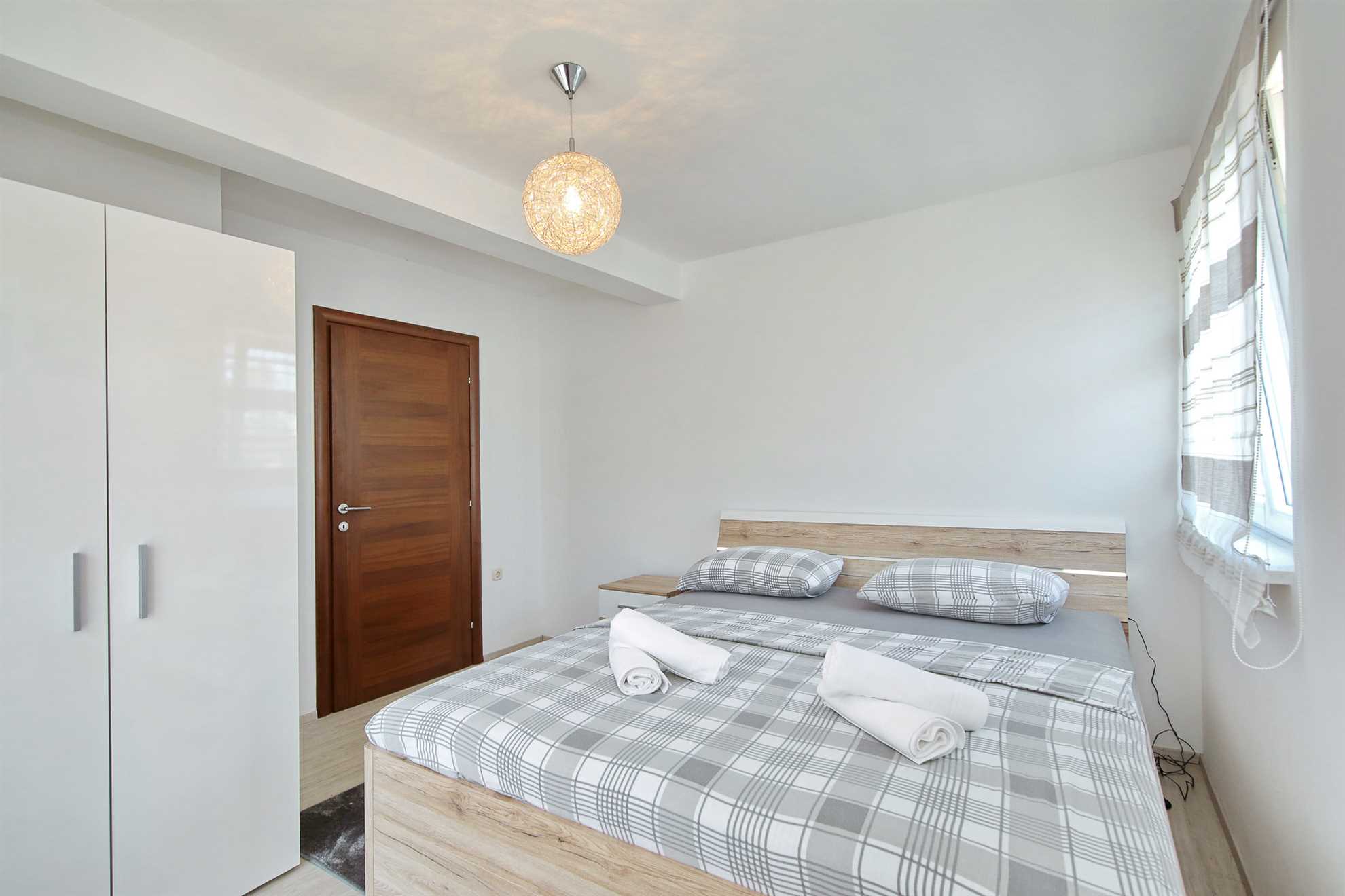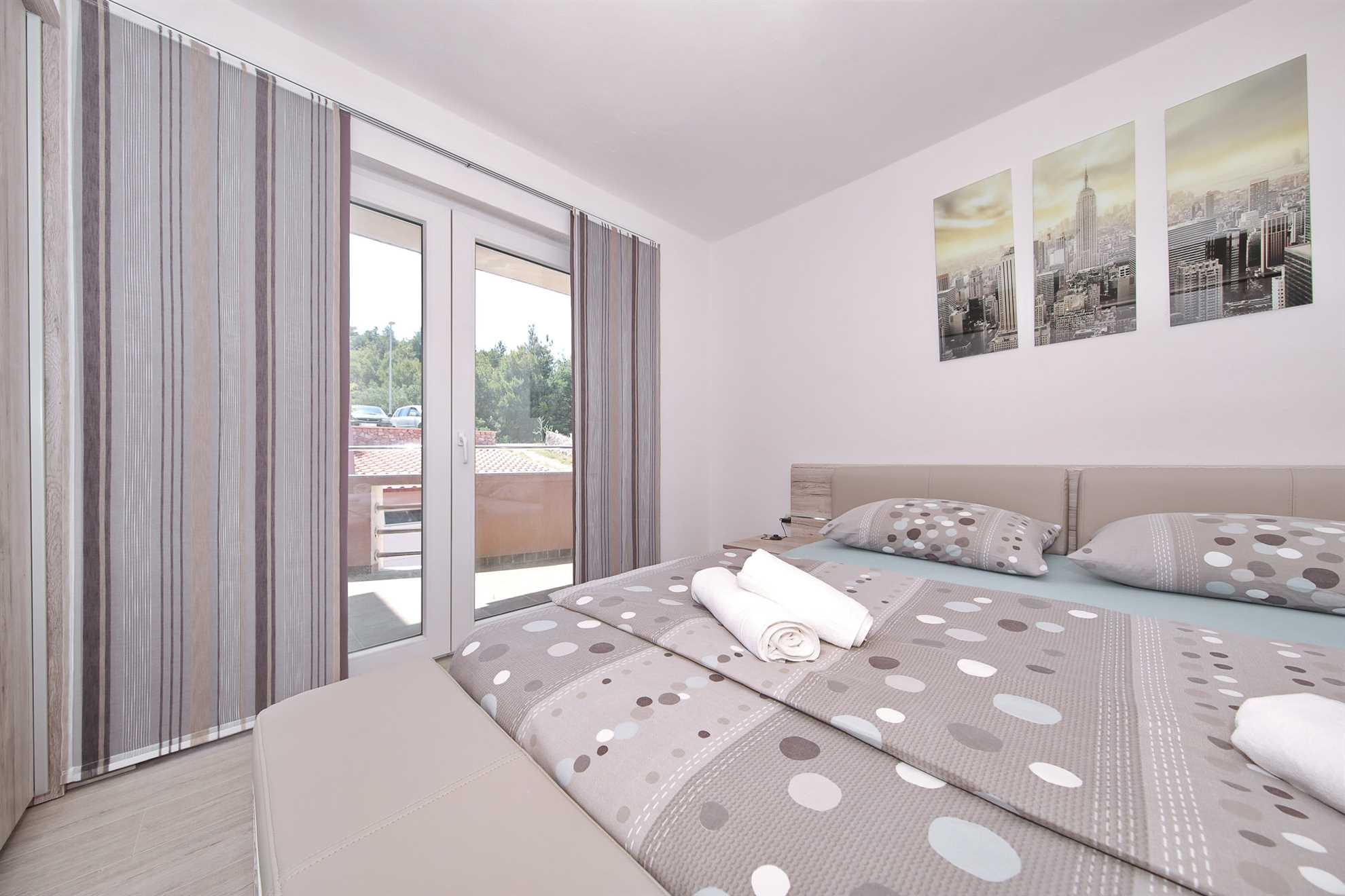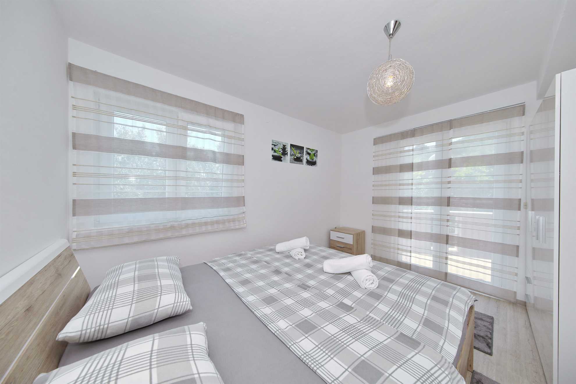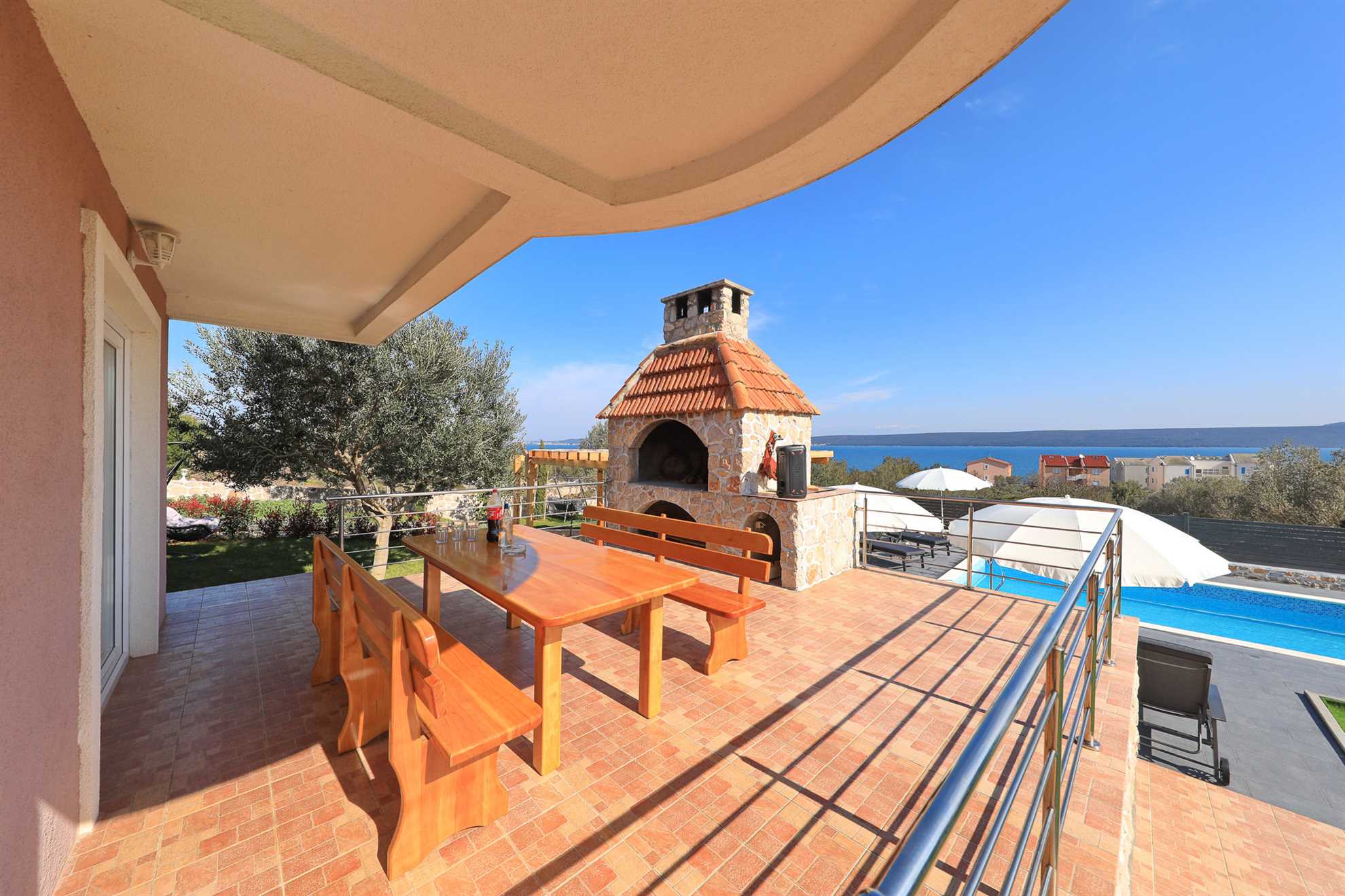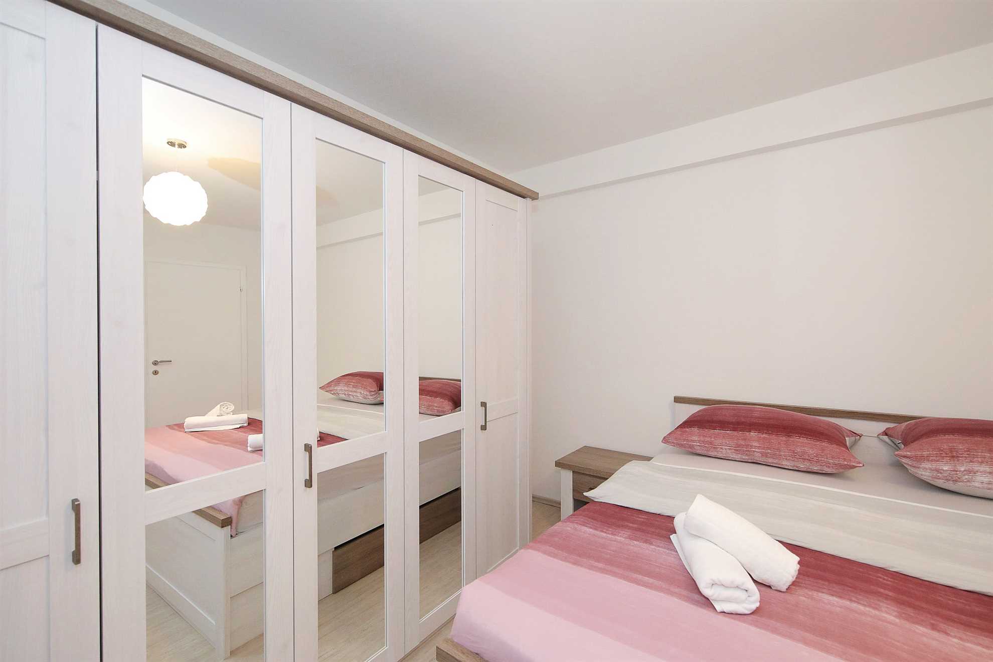 Apartment Luma is a spacious family apartment in Dobropoljana with a heated private pool, beautiful sea views and a quiet setting — ideal for guests who want to enjoy relaxing days together on Pašman. The property consists of two connected apartments rented exclusively as one large unit, offering plenty of space and privacy for groups of up to ten guests.Inside, you’ll find five bedrooms and three bathrooms — perfect for large families or several couples travelling together. The two living areas are bright and comfortable with direct access outdoors, and the well-equipped kitchens make shared meals easy: full-size fridge-freezer, oven, induction hob, dishwasher, coffee machine and ample tableware. Air conditioning and fast Wi-Fi ensure comfort throughout, while mosquito screens and blackout options support restful sleep. A baby cot and high chair are available.The private outdoor area includes everything needed for long summer days: heated pool with six sun loungers, spacious covered lounge area, stone barbecue, table tennis, trampoline and a well-kept garden. An outdoor shower provides refreshment after swimming, and dogs are welcome — up to two pets may stay. The nearest swimming spot is around 300 metres away, while the main beach is about 800 metres from the house.Dobropoljana is a peaceful village with authentic Dalmatian charm. A restaurant is about 850 metres away, a small supermarket around 900 metres, and with the island ferry, Zadar is an easy day trip. Pašman offers gentle bays, walking routes and a calm, family-friendly atmosphere.