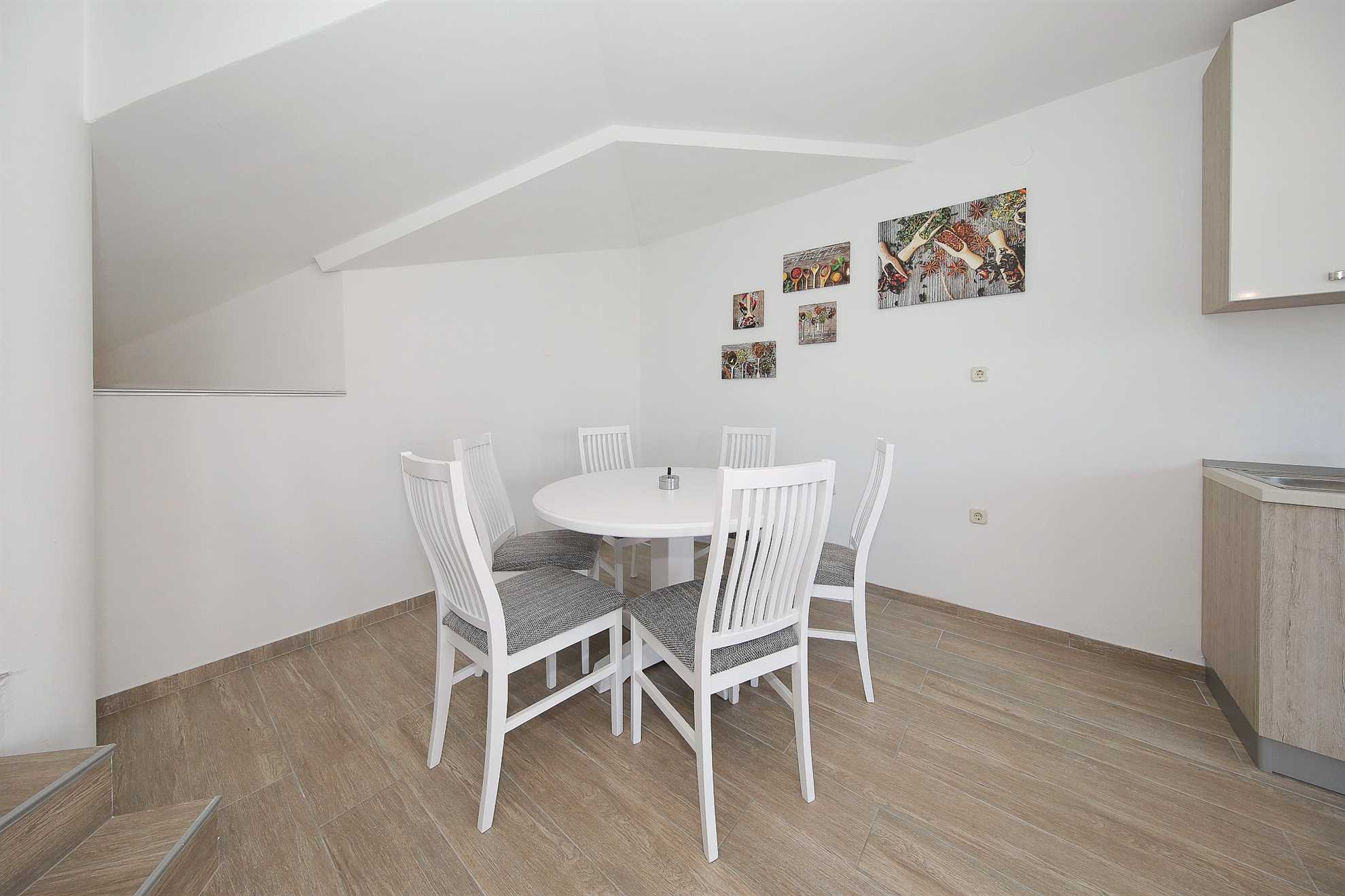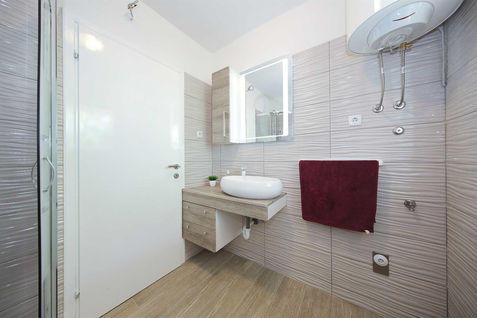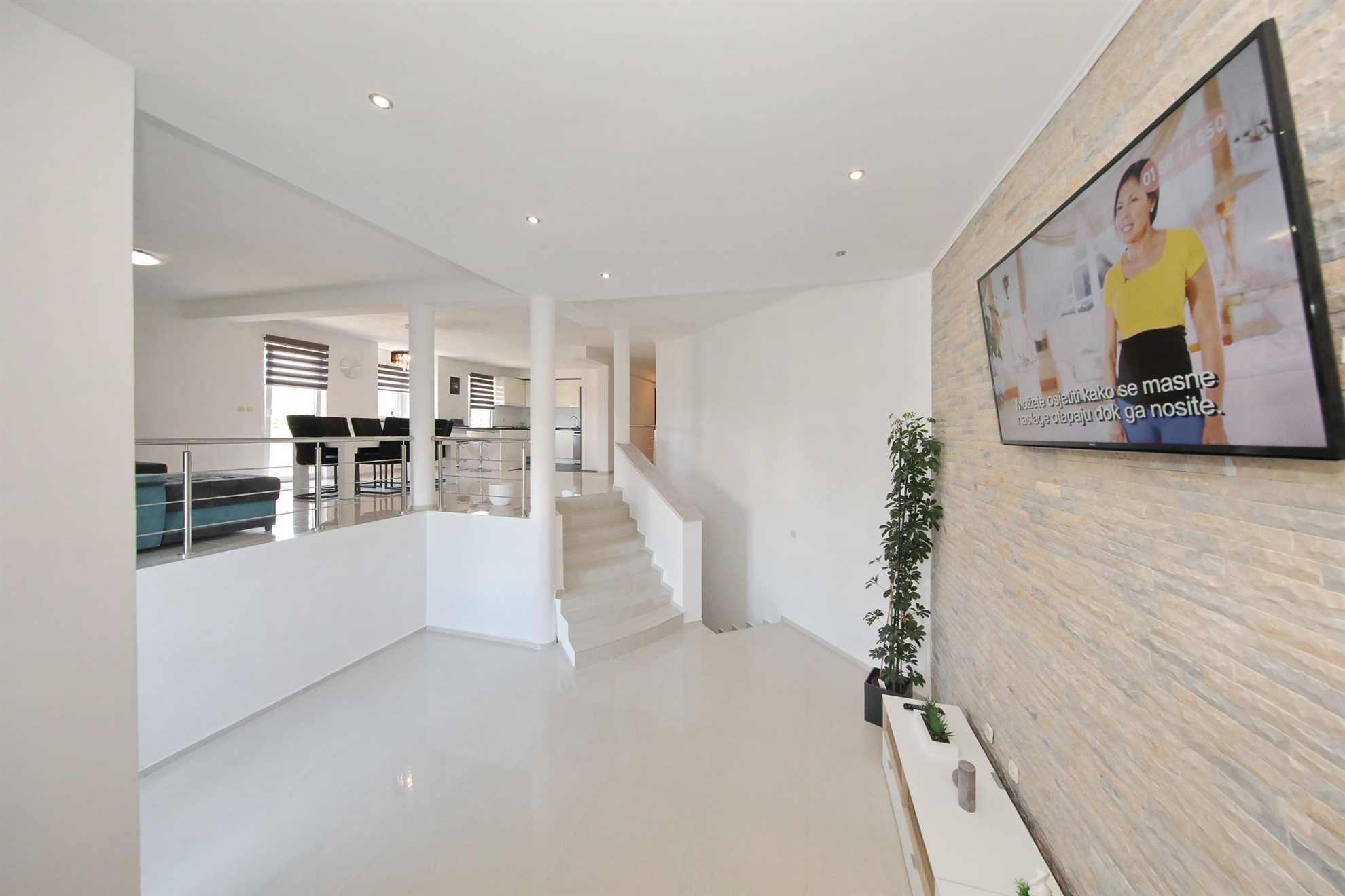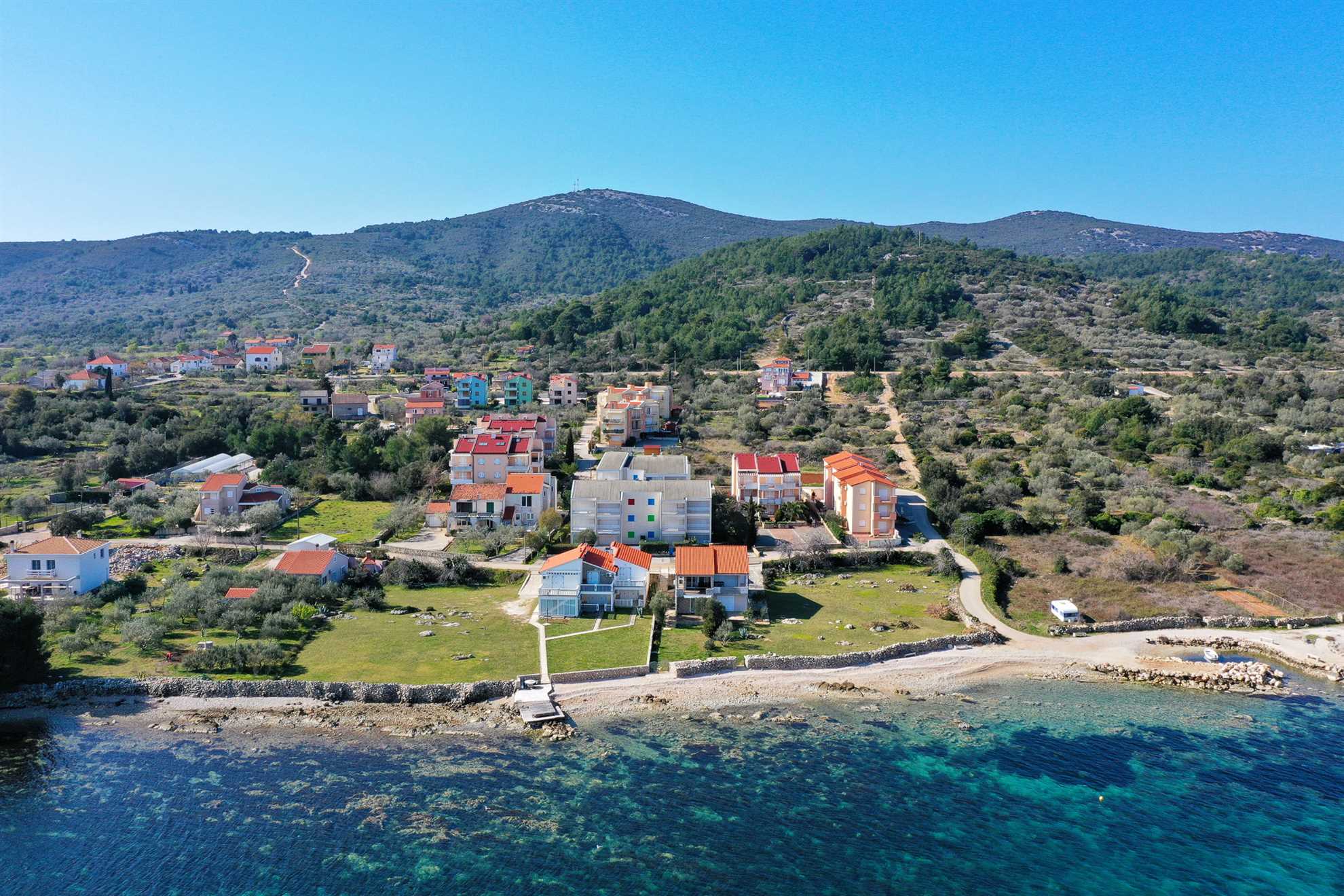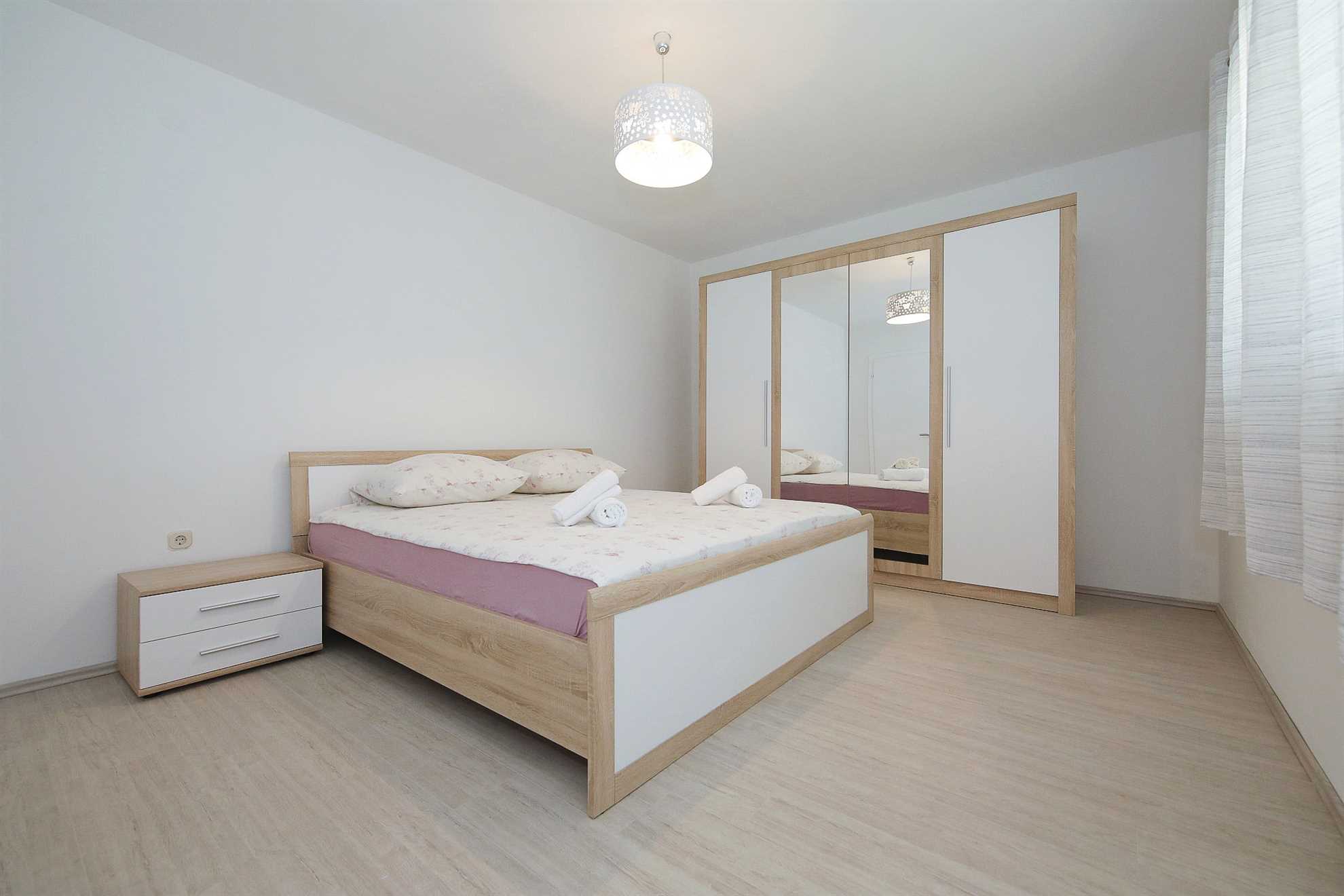 Apartment Luma is a spacious family apartment in Dobropoljana with a heated private pool, beautiful sea views and a quiet setting — ideal for guests who want to enjoy relaxing days together on Pašman. The property consists of two connected apartments rented exclusively as one large unit, offering plenty of space and privacy for groups of up to ten guests.Inside, you’ll find five bedrooms and three bathrooms — perfect for large families or several couples travelling together. The two living areas are bright and comfortable with direct access outdoors, and the well-equipped kitchens make shared meals easy: full-size fridge-freezer, oven, induction hob, dishwasher, coffee machine and ample tableware. Air conditioning and fast Wi-Fi ensure comfort throughout, while mosquito screens and blackout options support restful sleep. A baby cot and high chair are available.The private outdoor area includes everything needed for long summer days: heated pool with six sun loungers, spacious covered lounge area, stone barbecue, table tennis, trampoline and a well-kept garden. An outdoor shower provides refreshment after swimming, and dogs are welcome — up to two pets may stay. The nearest swimming spot is around 300 metres away, while the main beach is about 800 metres from the house.Dobropoljana is a peaceful village with authentic Dalmatian charm. A restaurant is about 850 metres away, a small supermarket around 900 metres, and with the island ferry, Zadar is an easy day trip. Pašman offers gentle bays, walking routes and a calm, family-friendly atmosphere.