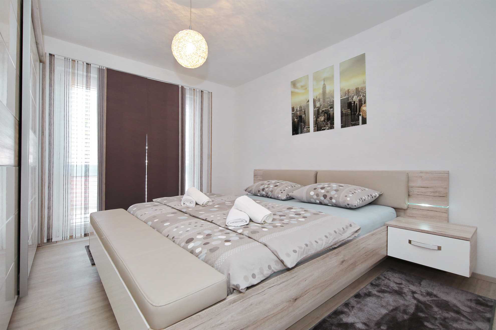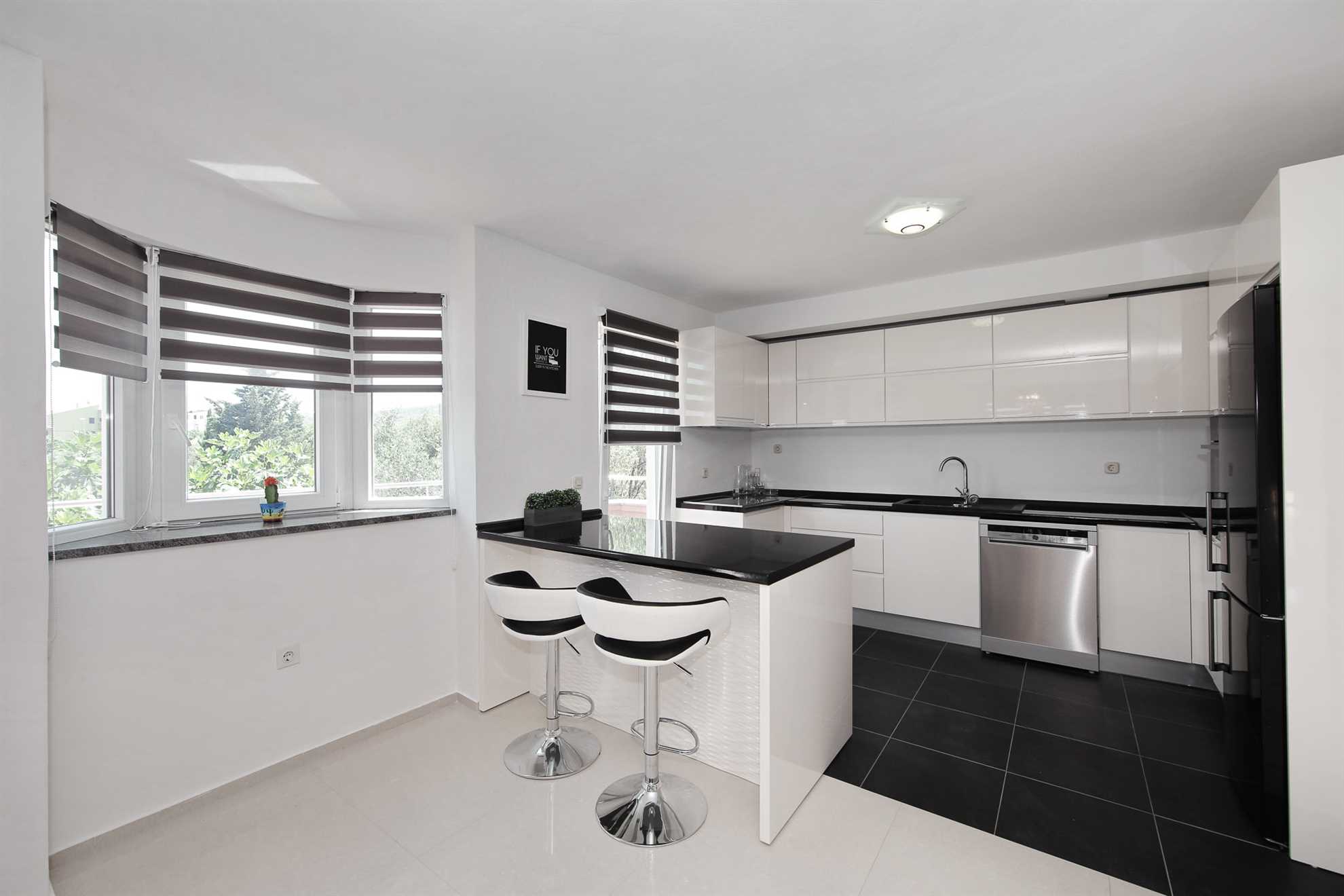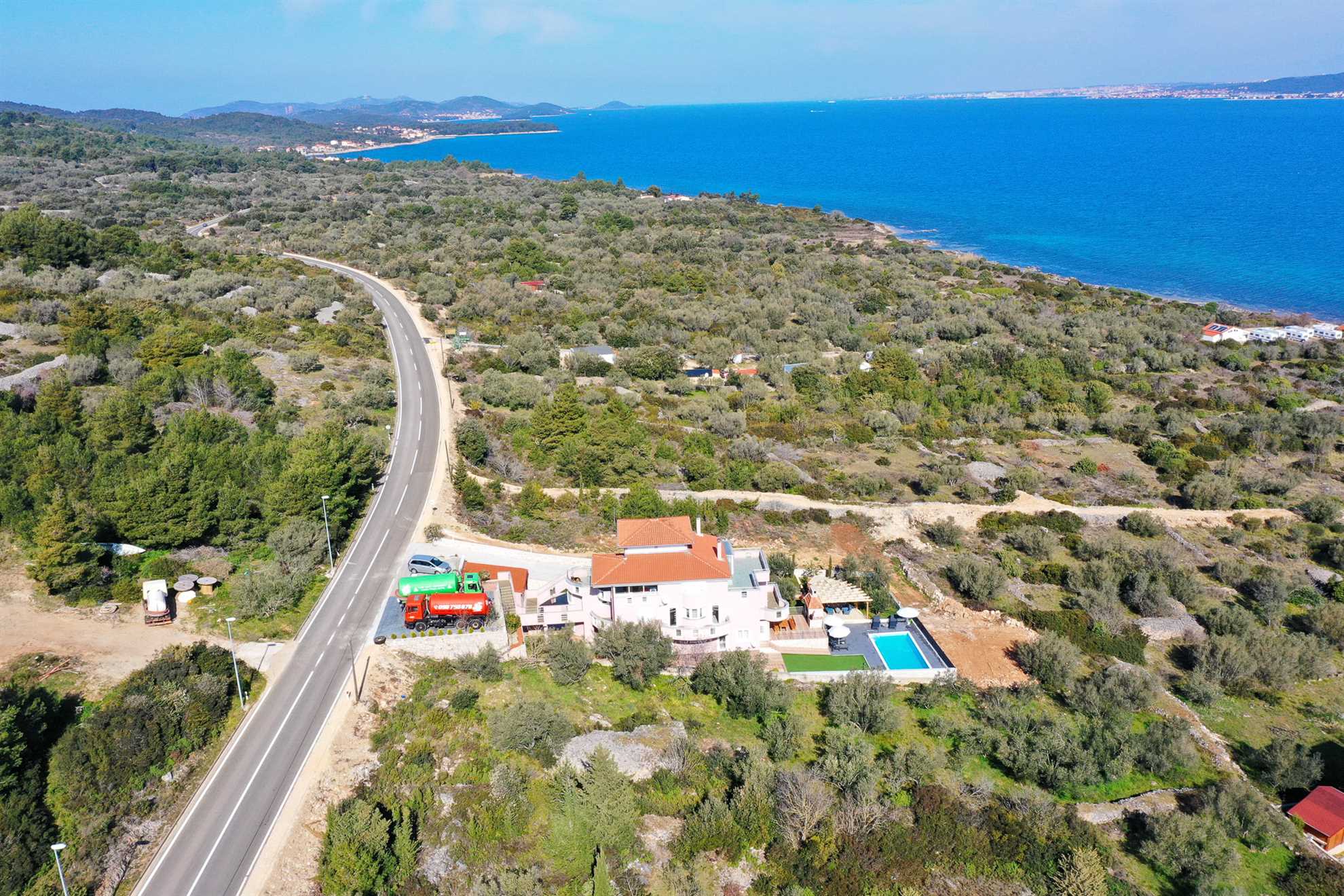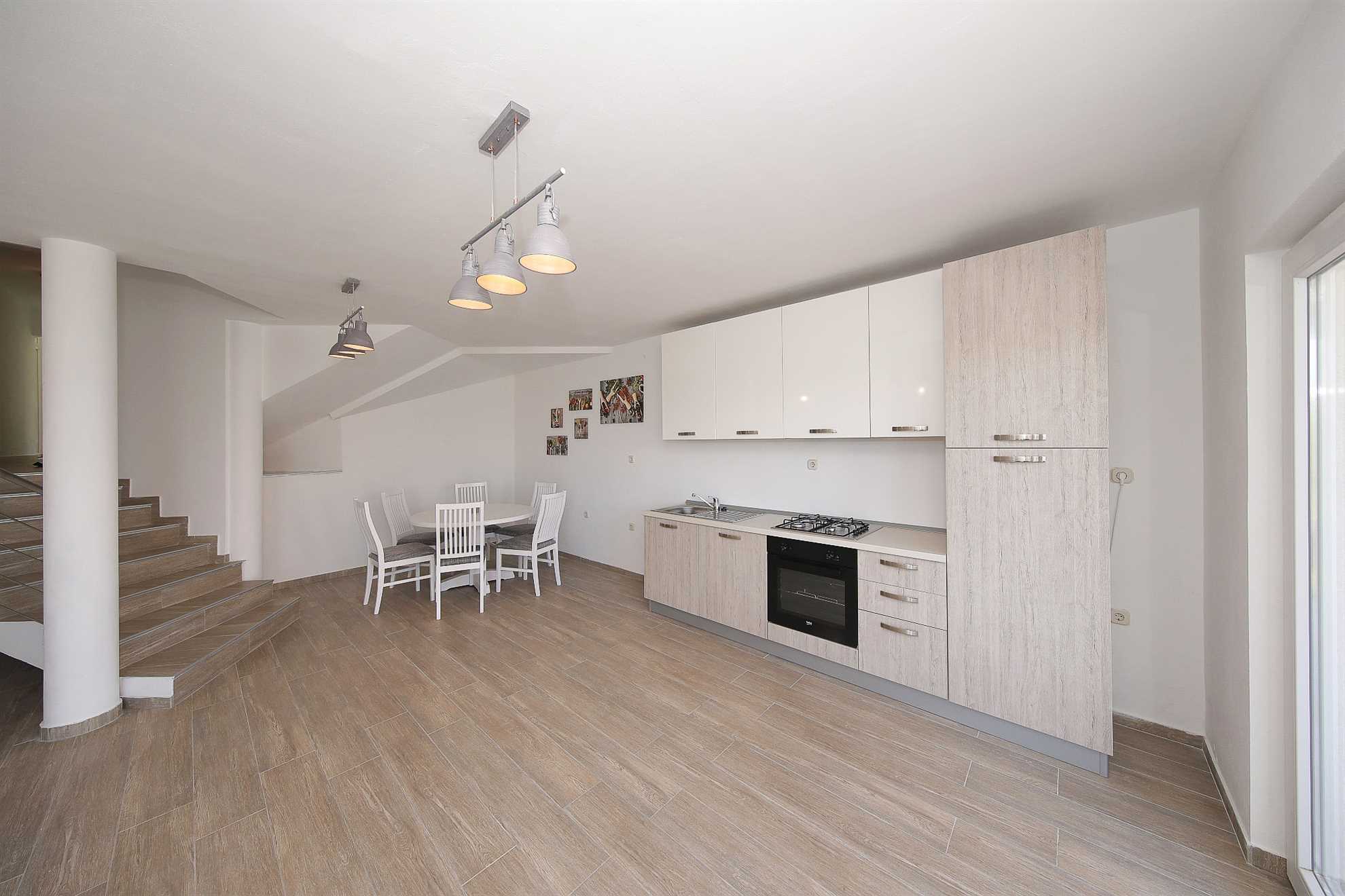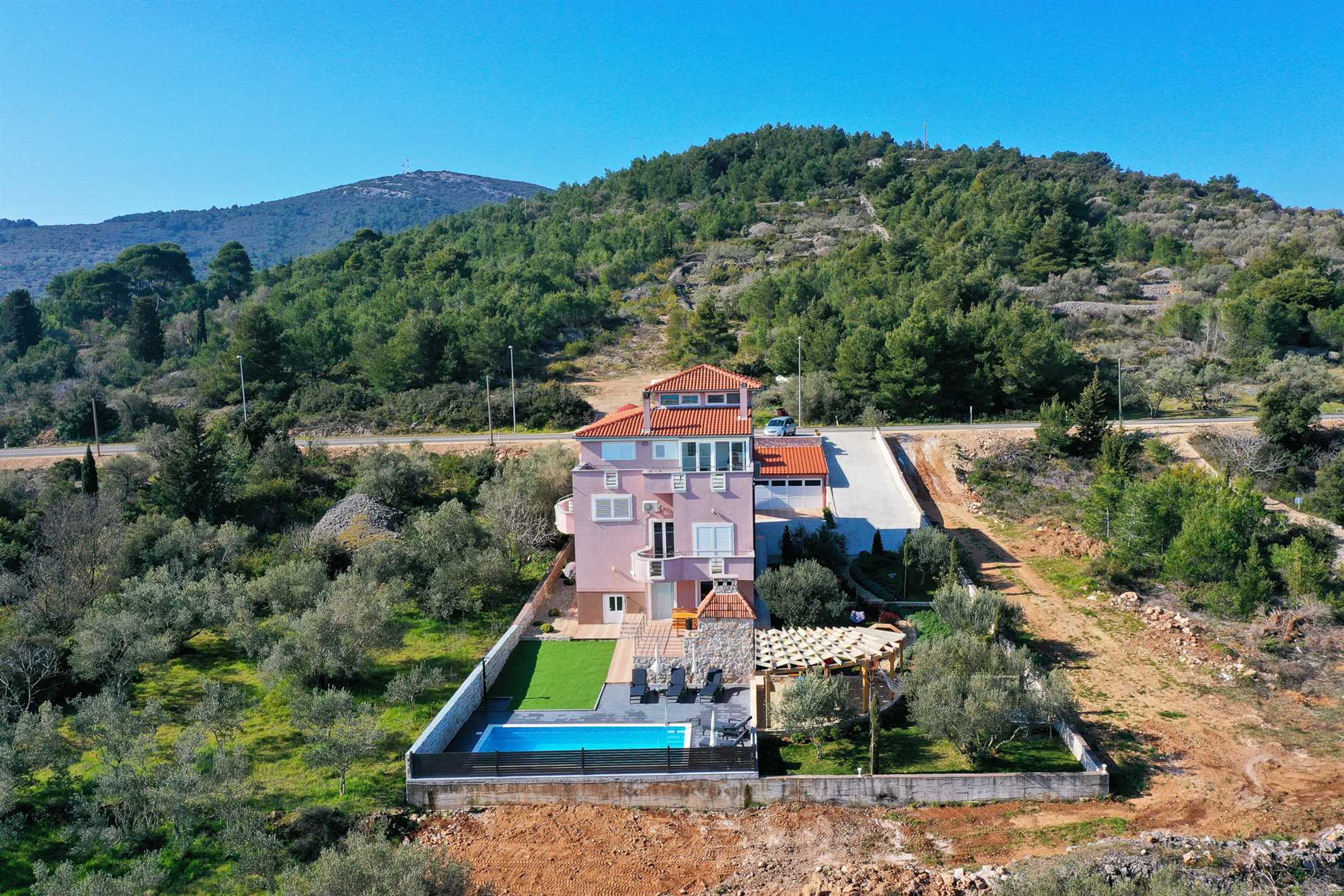 Apartment Luma is a spacious family apartment in Dobropoljana with a heated private pool, beautiful sea views and a quiet setting — ideal for guests who want to enjoy relaxing days together on Pašman. The property consists of two connected apartments rented exclusively as one large unit, offering plenty of space and privacy for groups of up to ten guests.Inside, you’ll find five bedrooms and three bathrooms — perfect for large families or several couples travelling together. The two living areas are bright and comfortable with direct access outdoors, and the well-equipped kitchens make shared meals easy: full-size fridge-freezer, oven, induction hob, dishwasher, coffee machine and ample tableware. Air conditioning and fast Wi-Fi ensure comfort throughout, while mosquito screens and blackout options support restful sleep. A baby cot and high chair are available.The private outdoor area includes everything needed for long summer days: heated pool with six sun loungers, spacious covered lounge area, stone barbecue, table tennis, trampoline and a well-kept garden. An outdoor shower provides refreshment after swimming, and dogs are welcome — up to two pets may stay. The nearest swimming spot is around 300 metres away, while the main beach is about 800 metres from the house.Dobropoljana is a peaceful village with authentic Dalmatian charm. A restaurant is about 850 metres away, a small supermarket around 900 metres, and with the island ferry, Zadar is an easy day trip. Pašman offers gentle bays, walking routes and a calm, family-friendly atmosphere.
