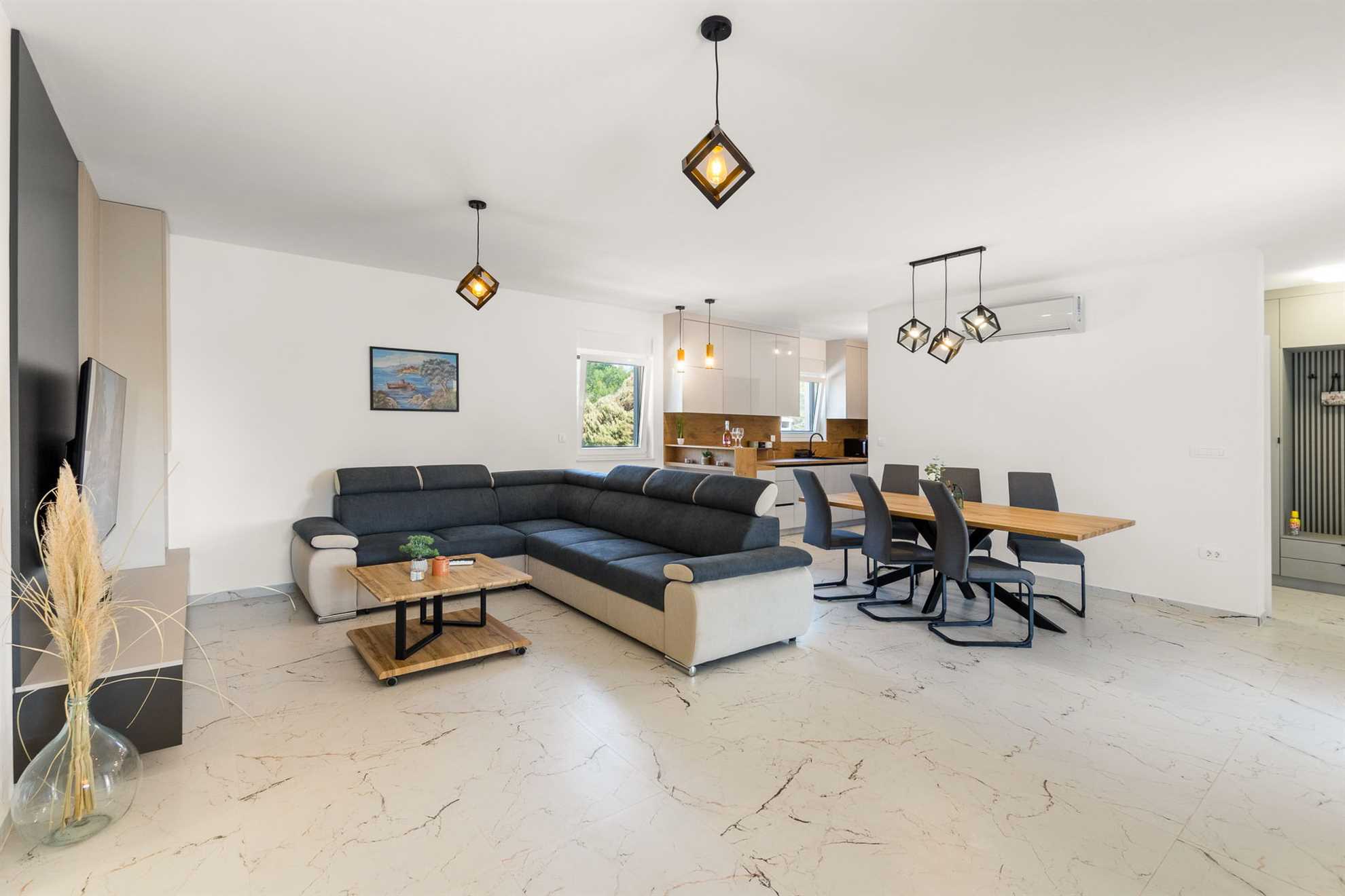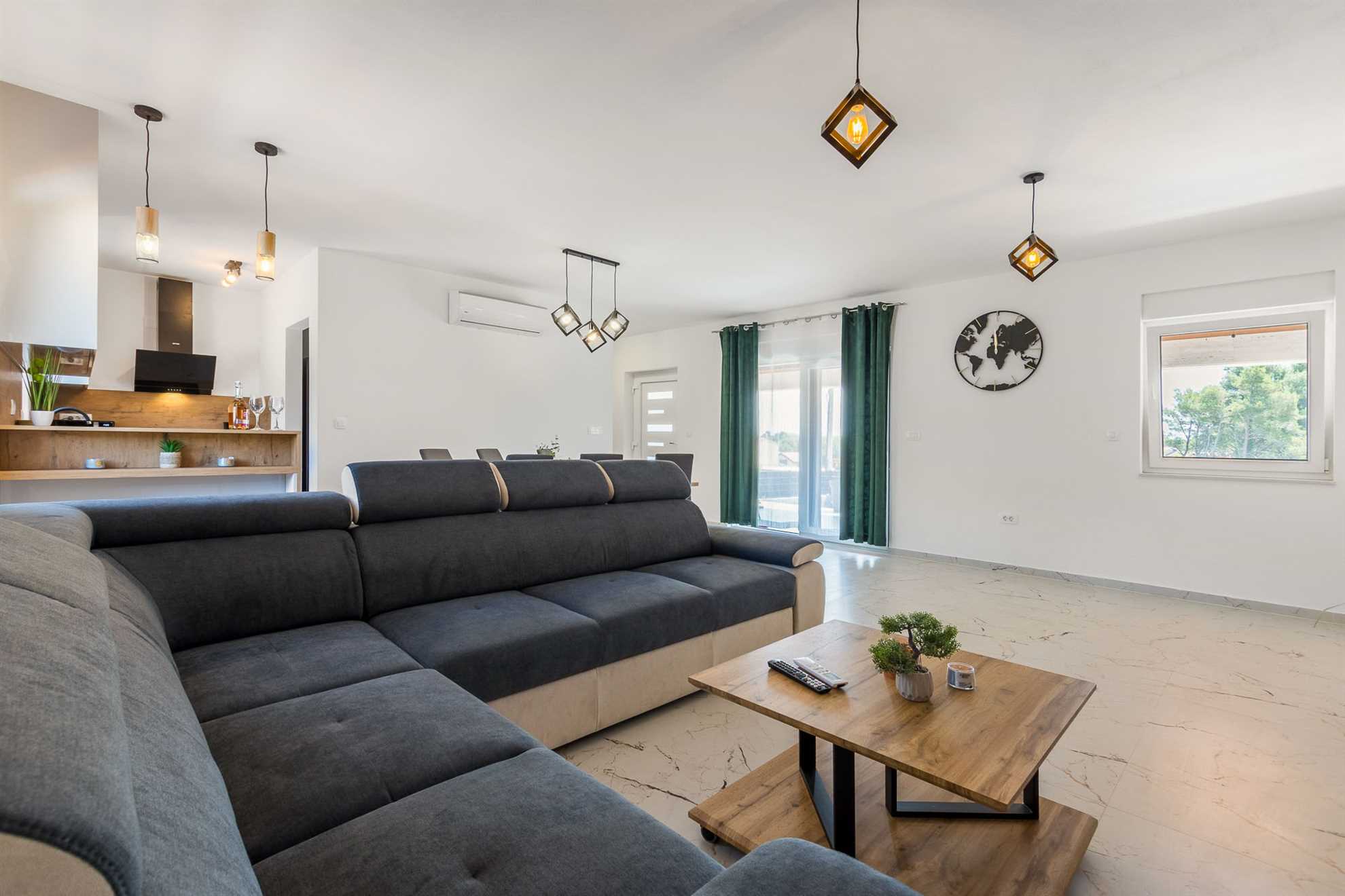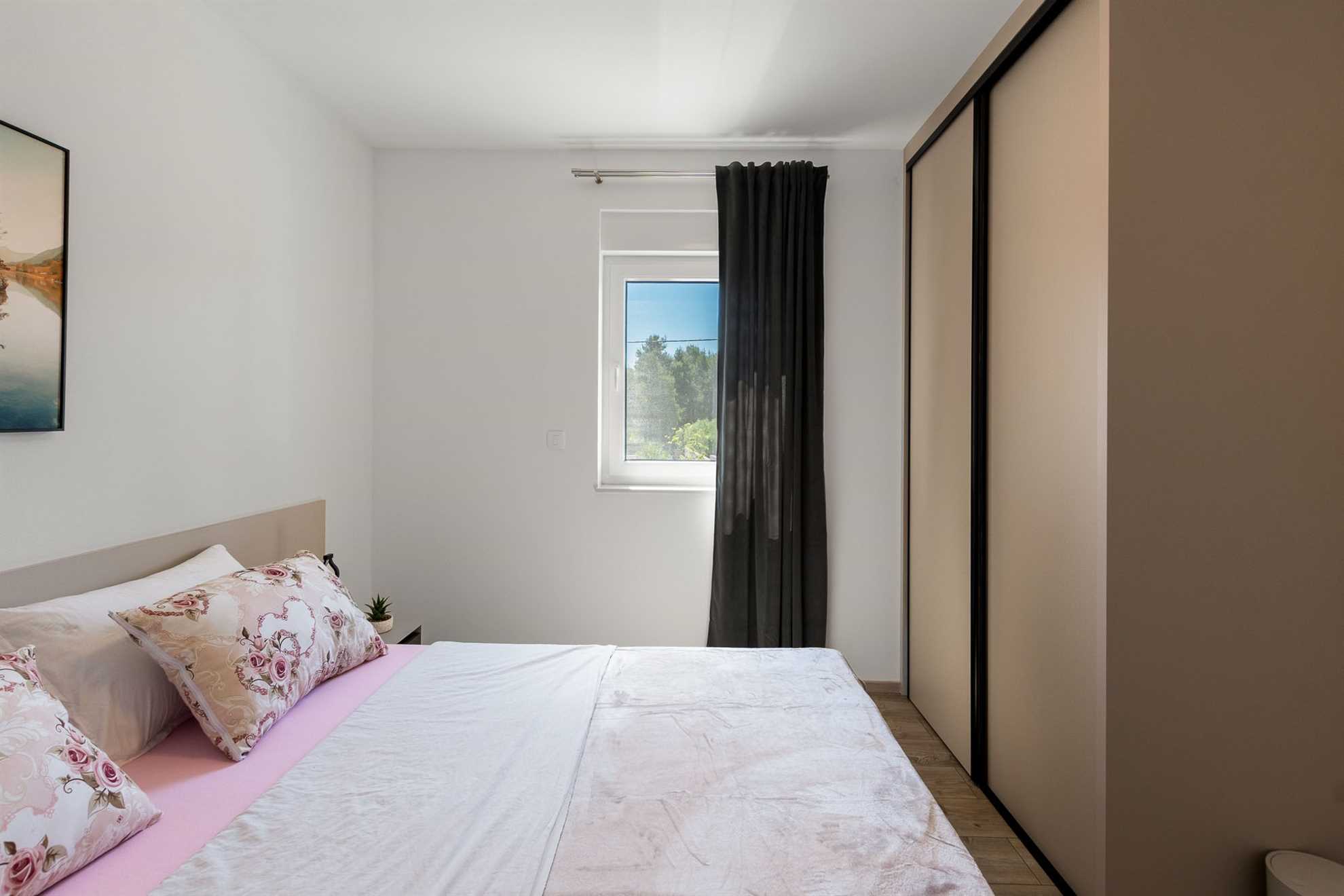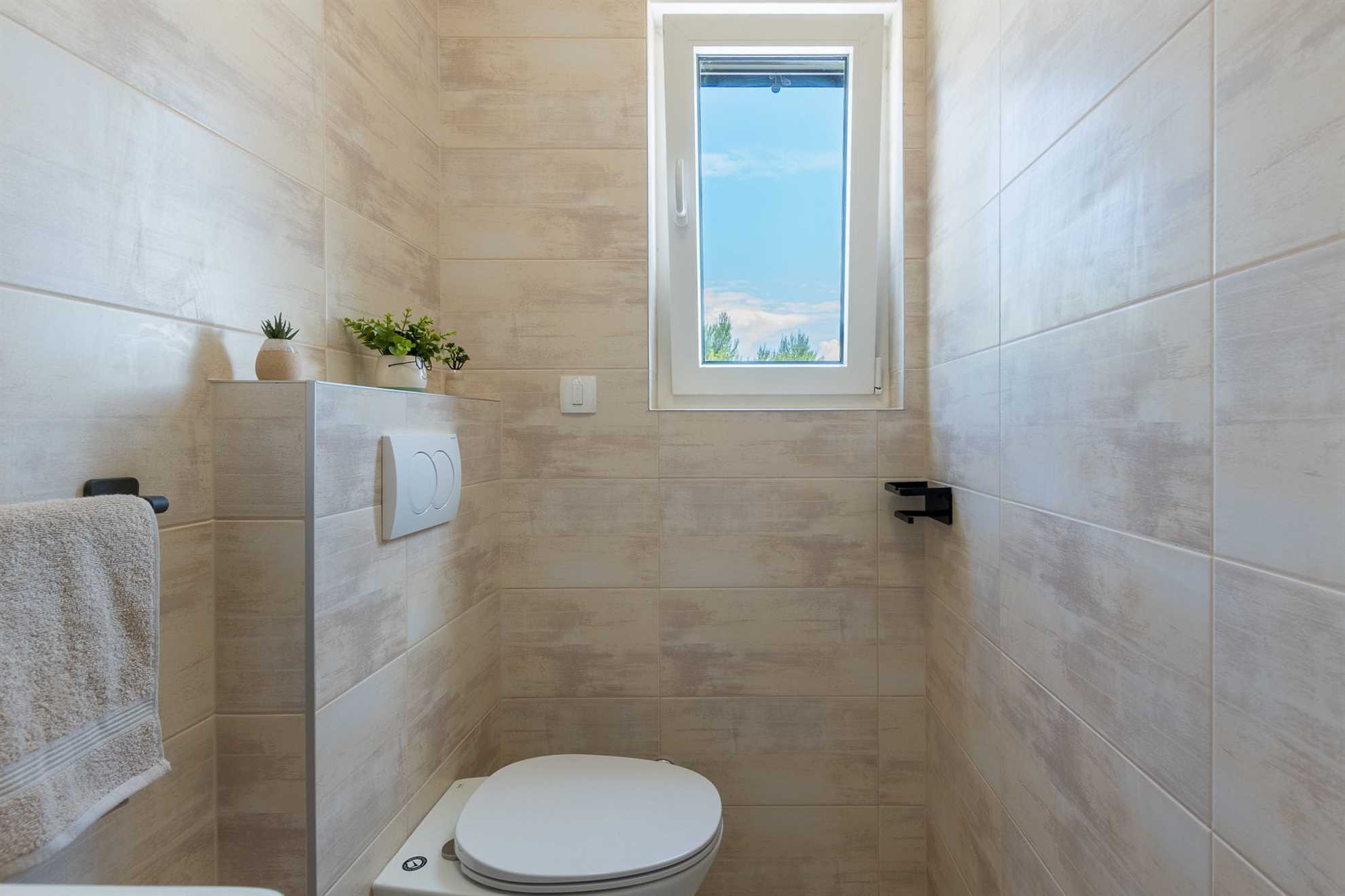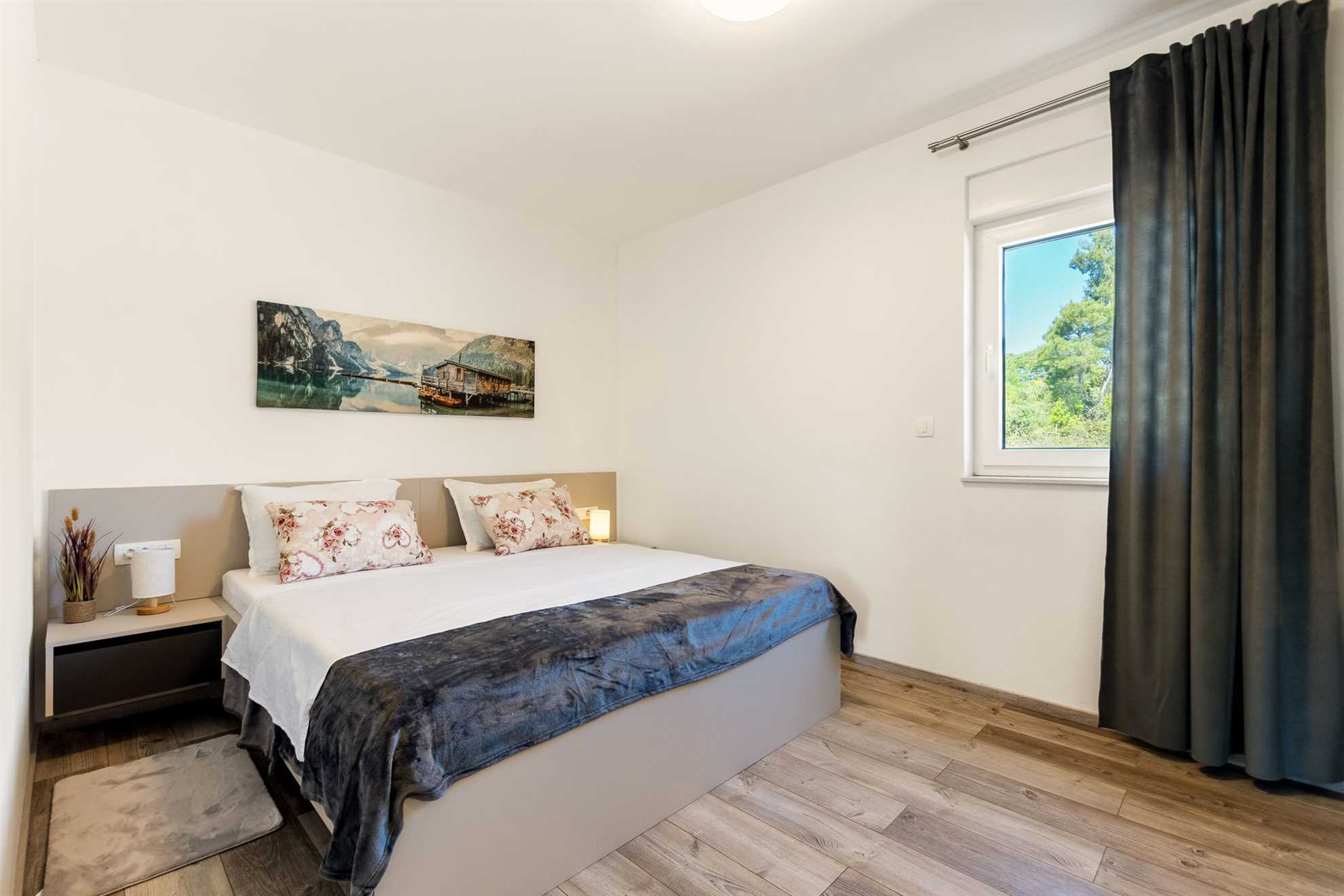 Welcome to Holiday Home Radovic, your perfect getaway on the beautiful island of Vir in Northern Dalmatia, Croatia. Just 1 km from the nearest beach, this family-friendly villa offers everything you need for a relaxing vacation under the Croatian sun. Enjoy lazy days by your private 36 m² outdoor pool with sun loungers, umbrellas, and an outdoor shower – the ideal place to unwind. The house features three comfortable bedrooms – two with queen-size beds (160×200 cm) and one with a king-size bed (180×200 cm) – as well as a modern bathroom with a walk-in shower and an additional separate toilet. The open-plan living area includes a spacious sofa, dining space, and a fully equipped kitchen for home-cooked meals. A smart TV, satellite TV, and free Wi-Fi are also available. Step outside to the large covered terrace, furnished with cozy garden furniture – perfect for dining al fresco or relaxing in the shade. The entire property is walled and enclosed, offering privacy and peace of mind for families with children. A barbecue, private garage, and additional free parking on the property are also included. Holiday Home Radovic is located in a quiet neighborhood with a low-traffic local road in front of the house. A restaurant is just 400 m away, and the town center of Vir is 3 km away. The home is ideal for up to 6 guests and includes a baby cot and high chair. Pets are welcome upon request. Discover the charm of island life and enjoy unforgettable moments at your private holiday home with pool on Vir!