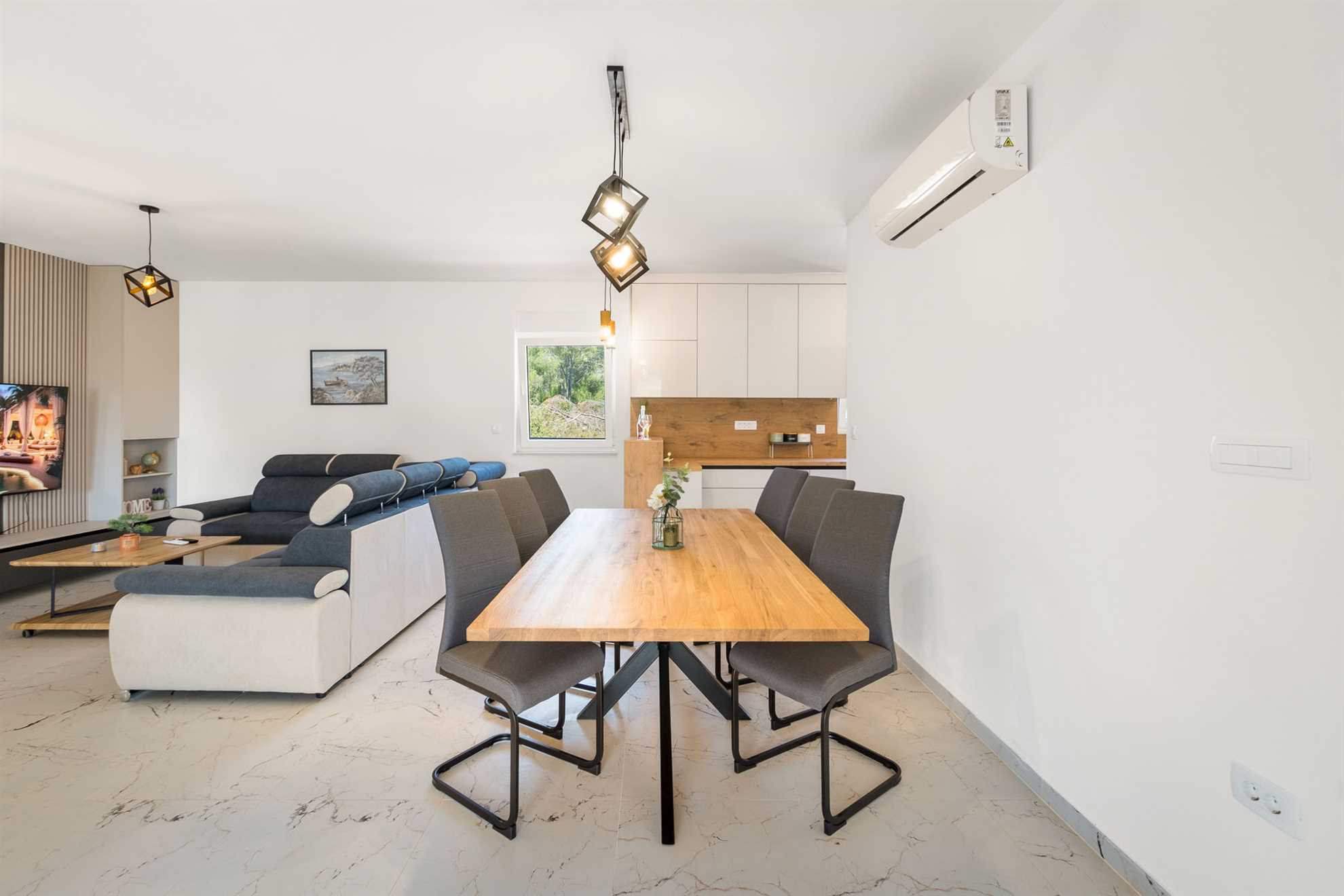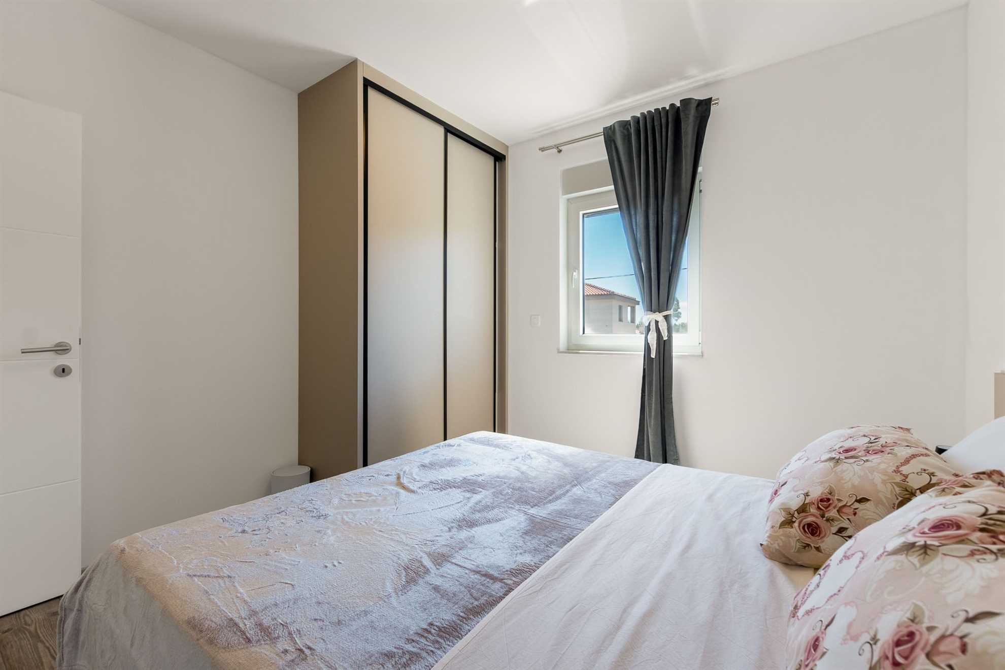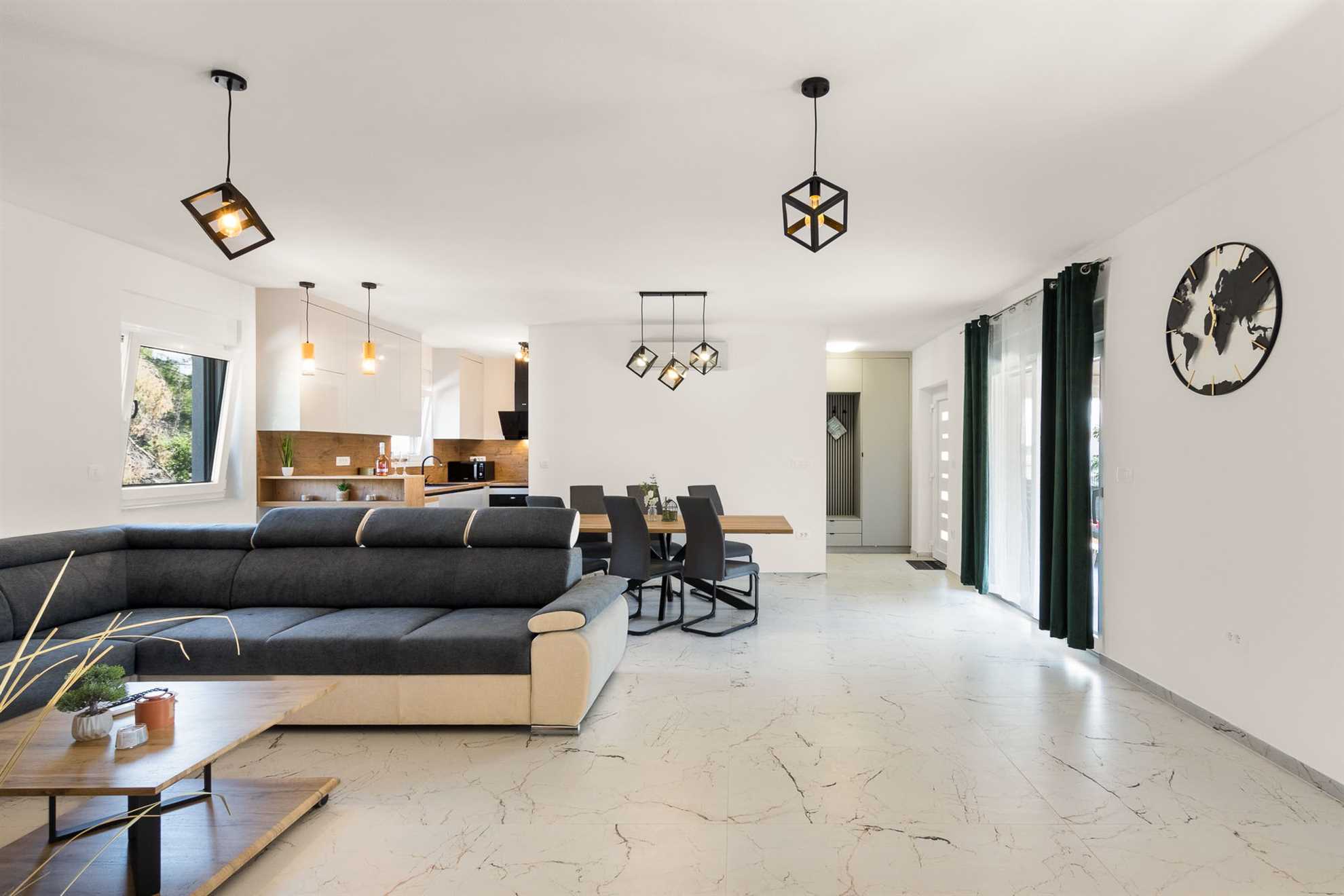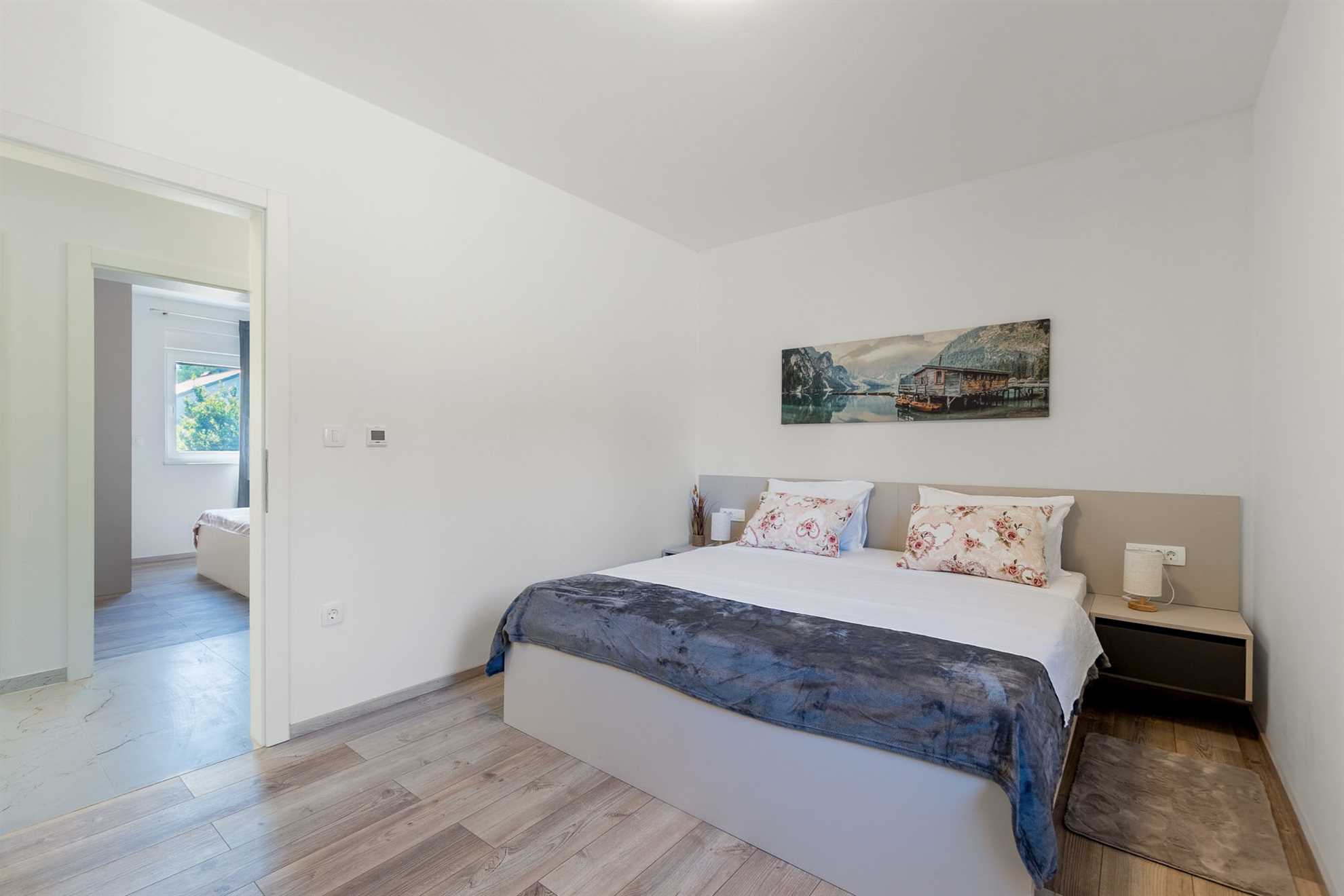 Welcome to Holiday Home Radovic, your perfect getaway on the beautiful island of Vir in Northern Dalmatia, Croatia. Just 1 km from the nearest beach, this family-friendly villa offers everything you need for a relaxing vacation under the Croatian sun. Enjoy lazy days by your private 36 m² outdoor pool with sun loungers, umbrellas, and an outdoor shower – the ideal place to unwind. The house features three comfortable bedrooms – two with queen-size beds (160×200 cm) and one with a king-size bed (180×200 cm) – as well as a modern bathroom with a walk-in shower and an additional separate toilet. The open-plan living area includes a spacious sofa, dining space, and a fully equipped kitchen for home-cooked meals. A smart TV, satellite TV, and free Wi-Fi are also available. Step outside to the large covered terrace, furnished with cozy garden furniture – perfect for dining al fresco or relaxing in the shade. The entire property is walled and enclosed, offering privacy and peace of mind for families with children. A barbecue, private garage, and additional free parking on the property are also included. Holiday Home Radovic is located in a quiet neighborhood with a low-traffic local road in front of the house. A restaurant is just 400 m away, and the town center of Vir is 3 km away. The home is ideal for up to 6 guests and includes a baby cot and high chair. Pets are welcome upon request. Discover the charm of island life and enjoy unforgettable moments at your private holiday home with pool on Vir!