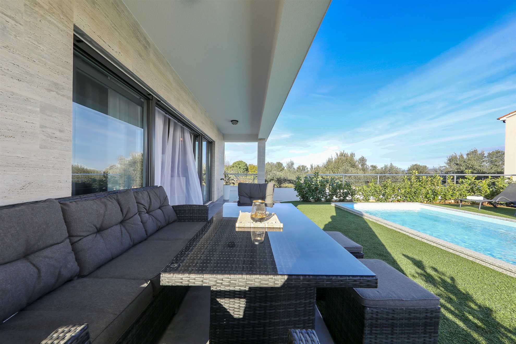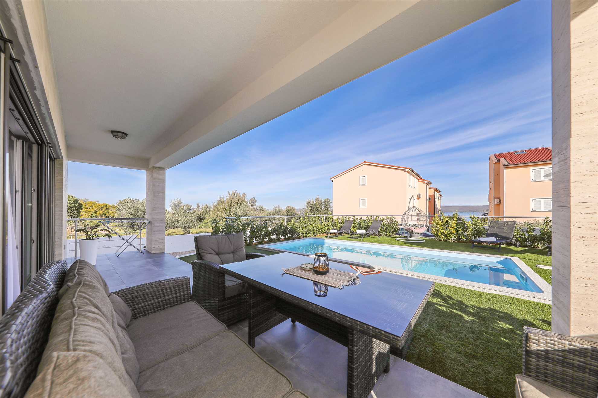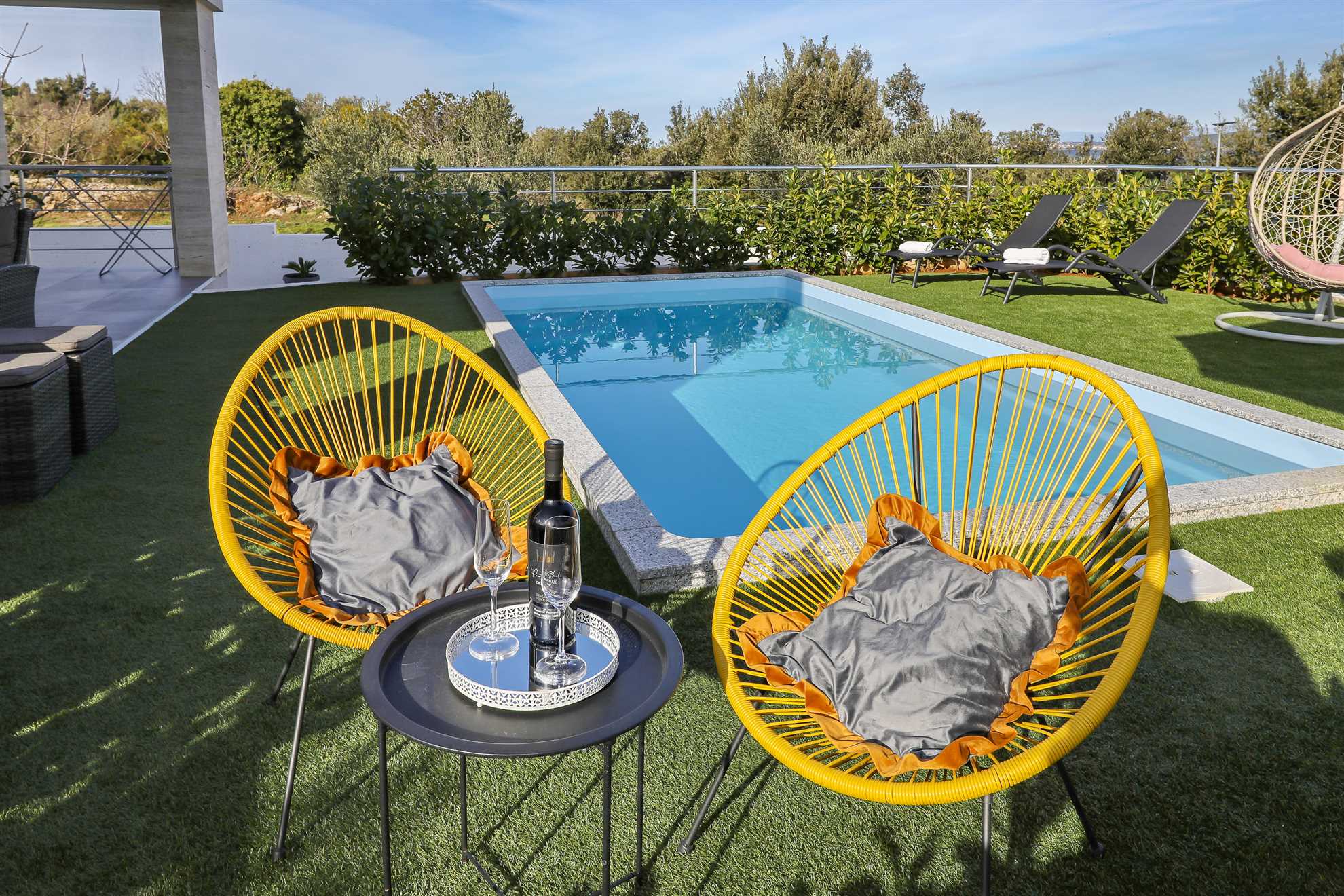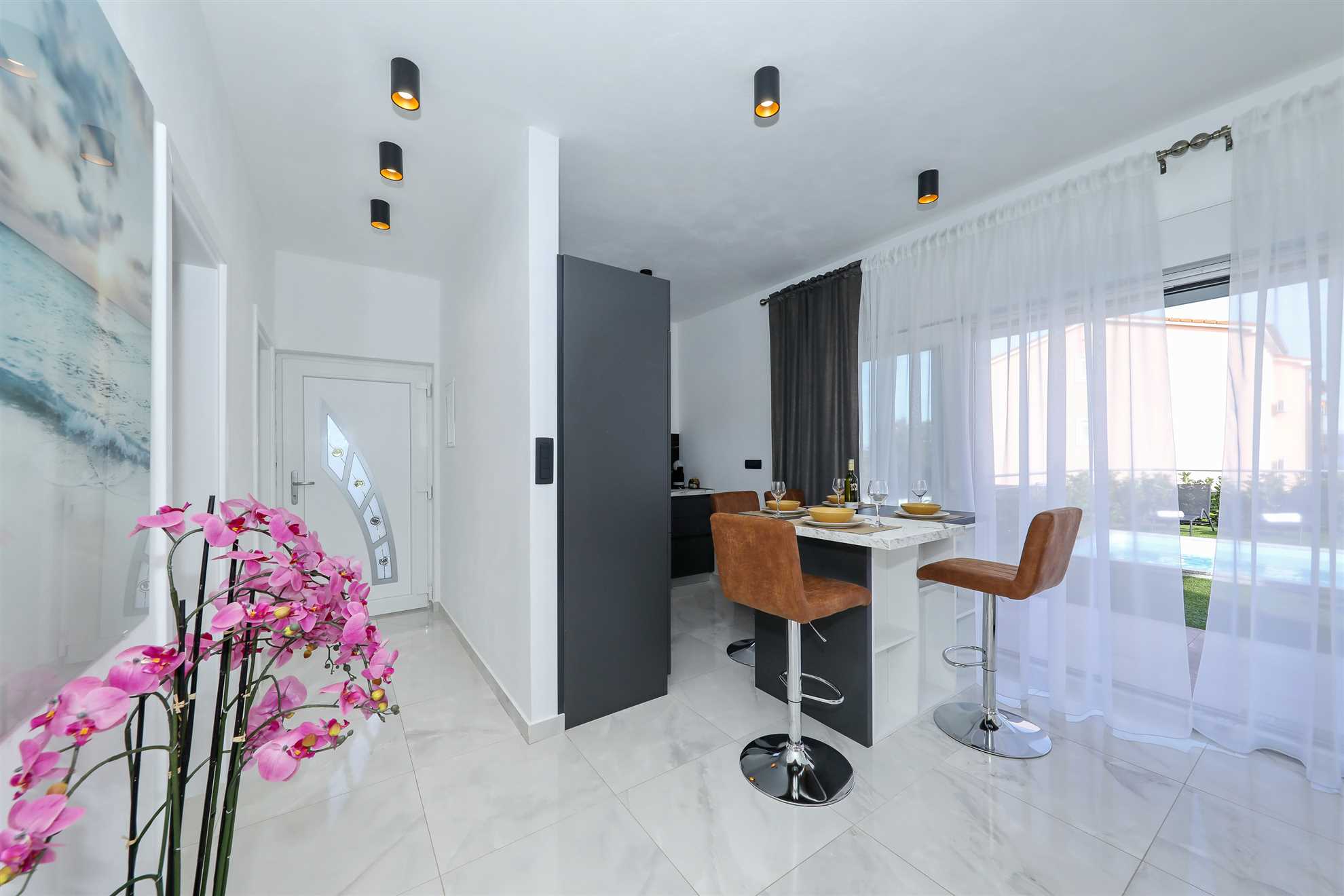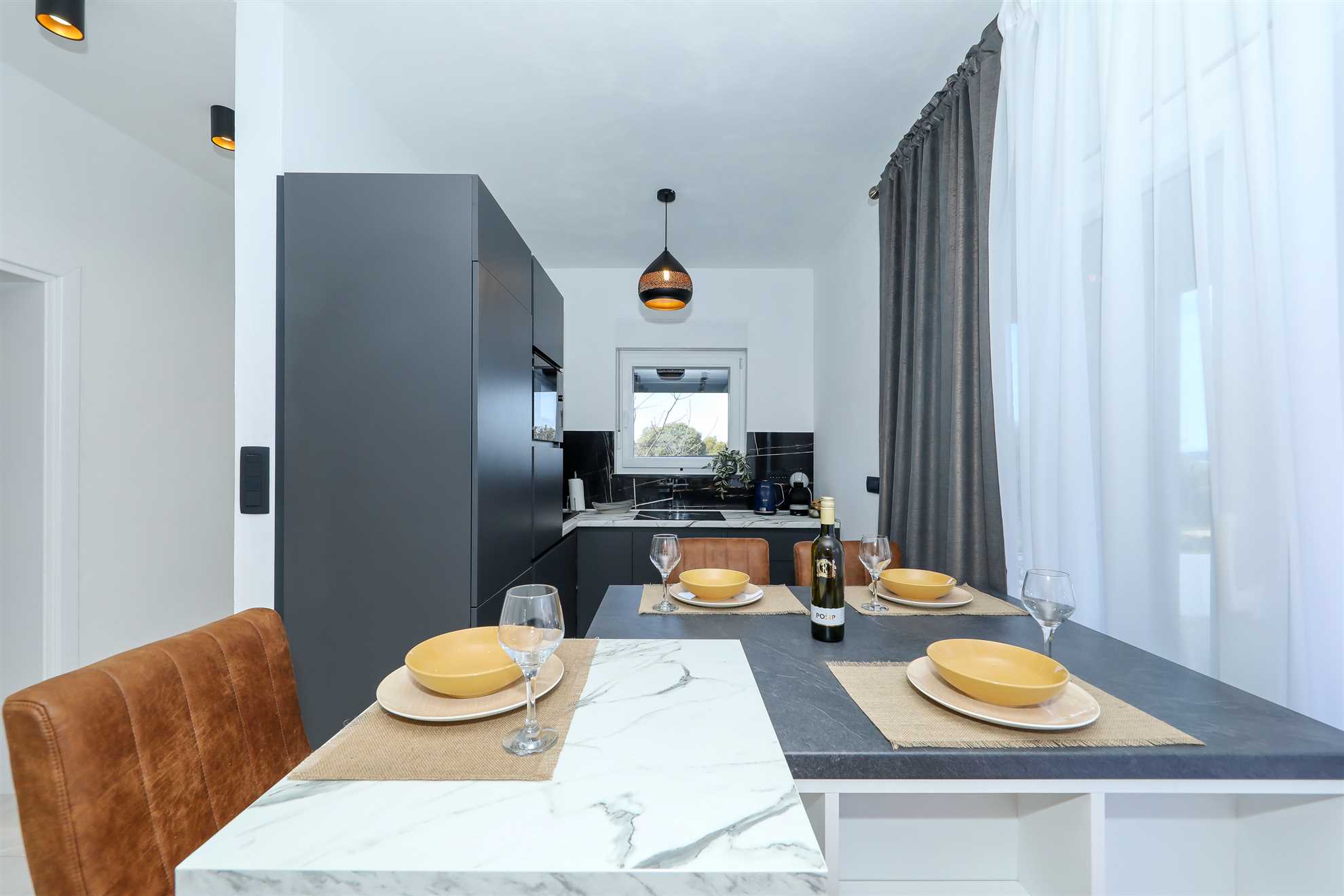 Casa vacanze Orchid Stay – Dobropoljana 79 m² | Fino a 5 ospiti | Posizione tranquilla vicino alla spiaggia La casa vacanze Orchid Stay si trova nella pittoresca cittadina di Dobropoljana e offre 79 m² di spazio abitabile per un massimo di 5 persone. La casa dispone di 2 accoglienti camere da letto e 2 bagni moderni. Caratteristiche e servizi: Internet/Wi-Fi Lavatrice Lavastoviglie Microonde Aria condizionata Macchina da caffè a filtro e macchina da caffè a capsule/cialde Parcheggio privato Stazione di ricarica per auto elettriche Deposito biciclette Giardino e barbecue Balcone con vista panoramica sul mare Piscina stagionale all'aperto TV intelligente Cucina e soggiorno open space La struttura è situata in una posizione tranquilla, a soli 50 metri dalla spiaggia. Il centro di Dobropoljana dista circa 800 metri ed è facilmente raggiungibile a piedi. I dintorni sono perfetti per una vacanza in famiglia con bambini, grazie alla vicinanza alla spiaggia. Gli amanti della natura apprezzeranno anche il vicino parco nazionale. Per gli ospiti più attivi, la zona offre numerose opportunità per escursioni in bicicletta e passeggiate a piedi o a piedi. Gli anziani potranno godere di un soggiorno tranquillo in un ambiente tranquillo. La spiaggia è ideale per nuotare e rilassarsi in riva al mare, mentre la piscina della struttura offre ulteriore refrigerio e relax. Informazioni aggiuntive: Distanza dall'aeroporto: circa 15 km Alloggi adatti alle famiglie Particolarmente adatto alle biciclette Lingue parlate: croato, ceco, inglese, tedesco, slovacco Godetevi la vostra vacanza in questo ambiente idilliaco e ricaricate le vostre energie, lasciandovi incantare dalla bellezza della costa croata.